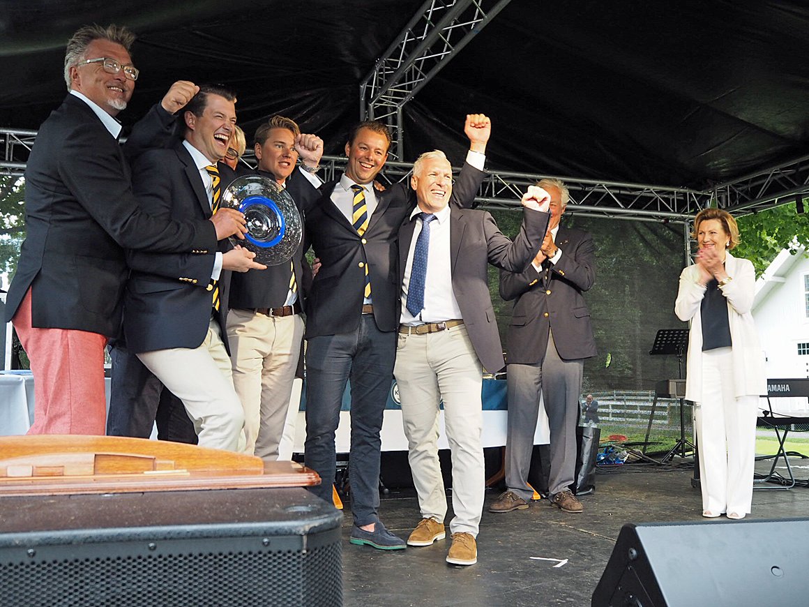 Dronning Sonja delte ut premiane til dei beste seglarane. Lars Ingebergs «Wanda» styrte inn til 3. plass totalt under VM på heimebane – og vart nummer to i klassen Sira for klassiske 8-meterbåtar bygde før 1968.
