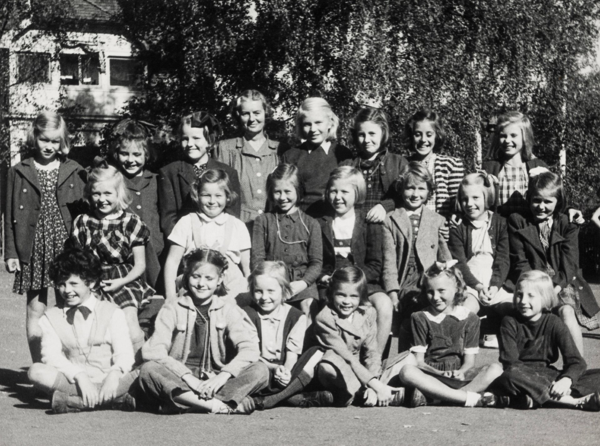 Dronningen begynte på Slemdal skole i tredje klasse høsten 1947. Hun gikk der i fire år og var ferdig sommeren 1951.
