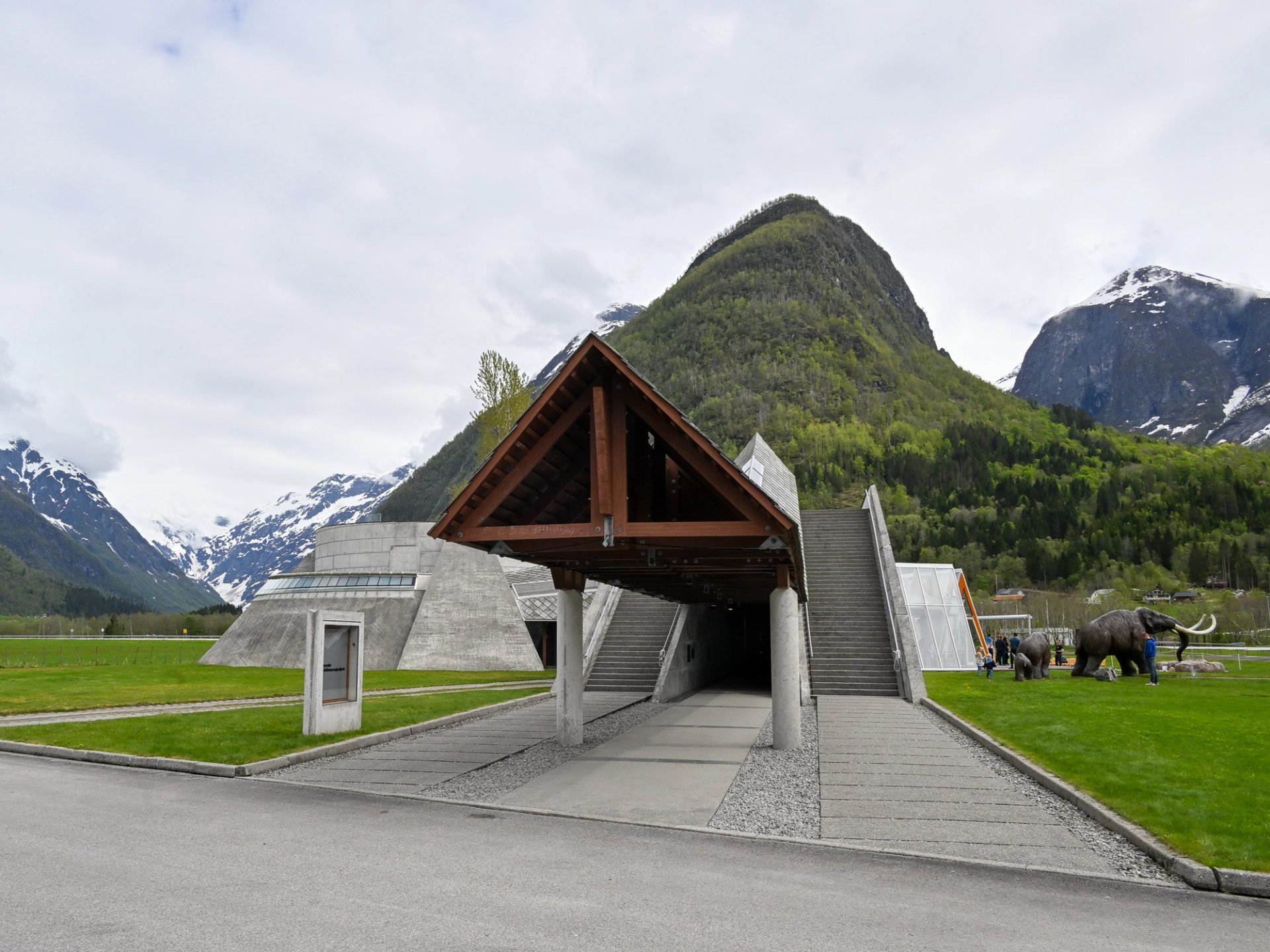 Norsk Bremuseum spreier kunnskap om isbrear og klima – og det ligg vakkert til inst i Fjærlandsfjorden, med Jostedalsbreen i bakgrunnen.