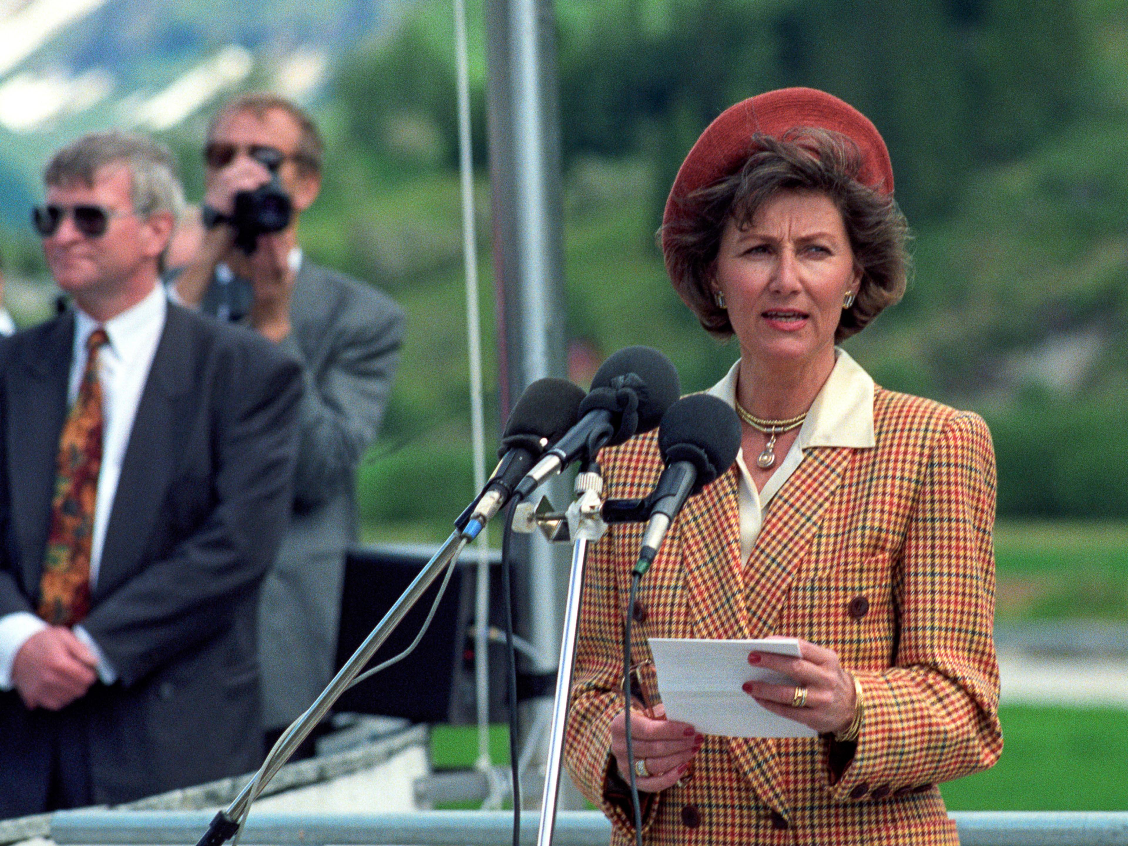 Fem år gamle Knut Mundal overrekte Dronninga blomster da ho kom til jubileumsmarkeringa ved Norsk Bremuseum – eit museum Dronninga offisielt opna 31. mai 1991. Året før la Dronninga – som kronprinsesse – ned grunnsteinen til museet.