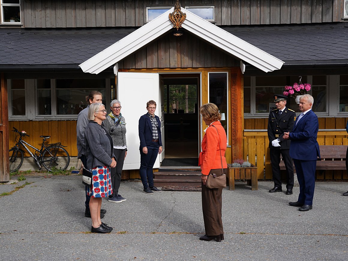 Besøket starta med ei orientering om skolen og handverkssenteret. Fleire kulturbaserte verksemder held til her – både skole, organisasjonar og små bedrifter. Dronninga fekk høyre om verksemda før ei omvising der ho møtte både lærarar og elevar.