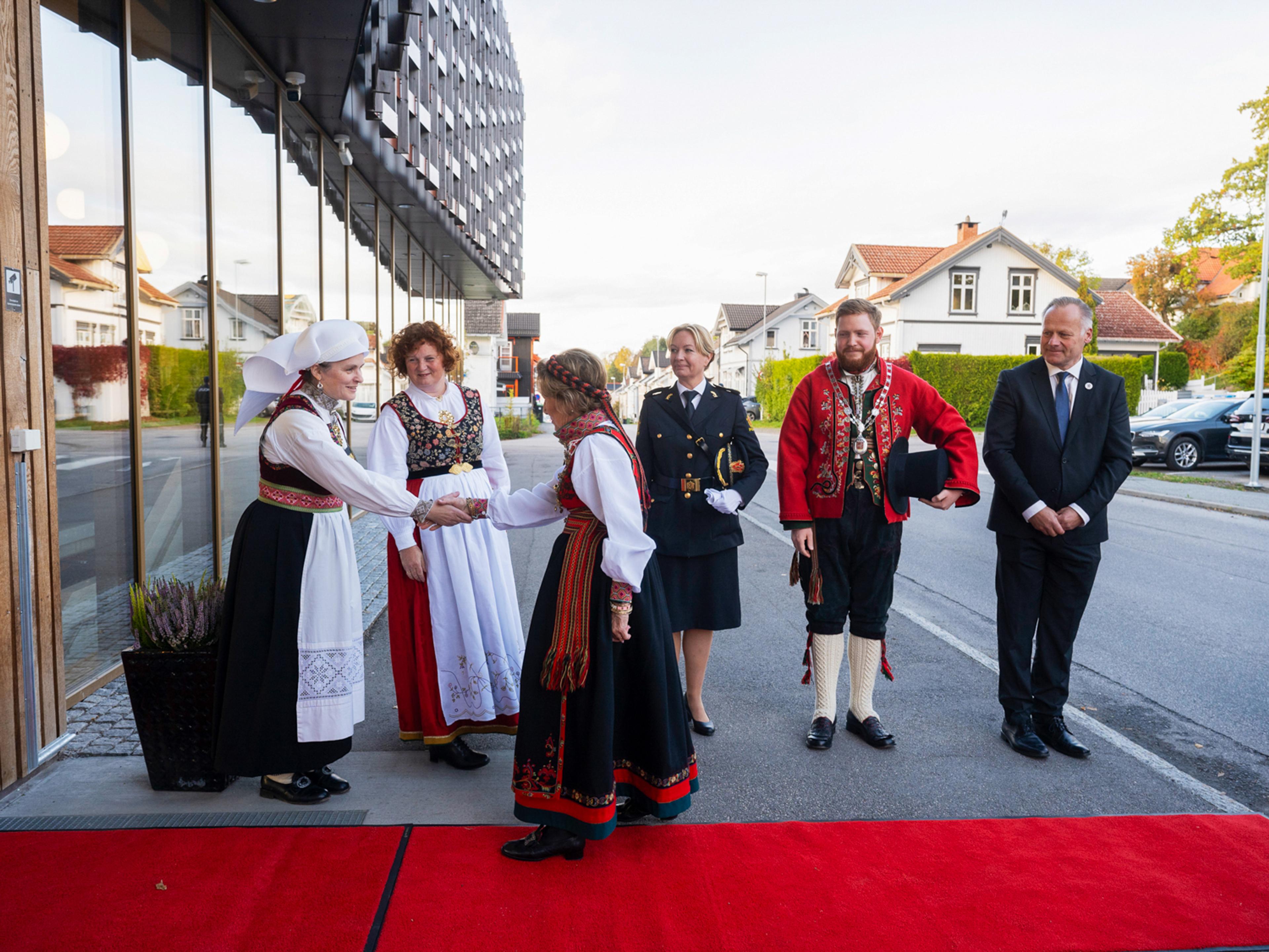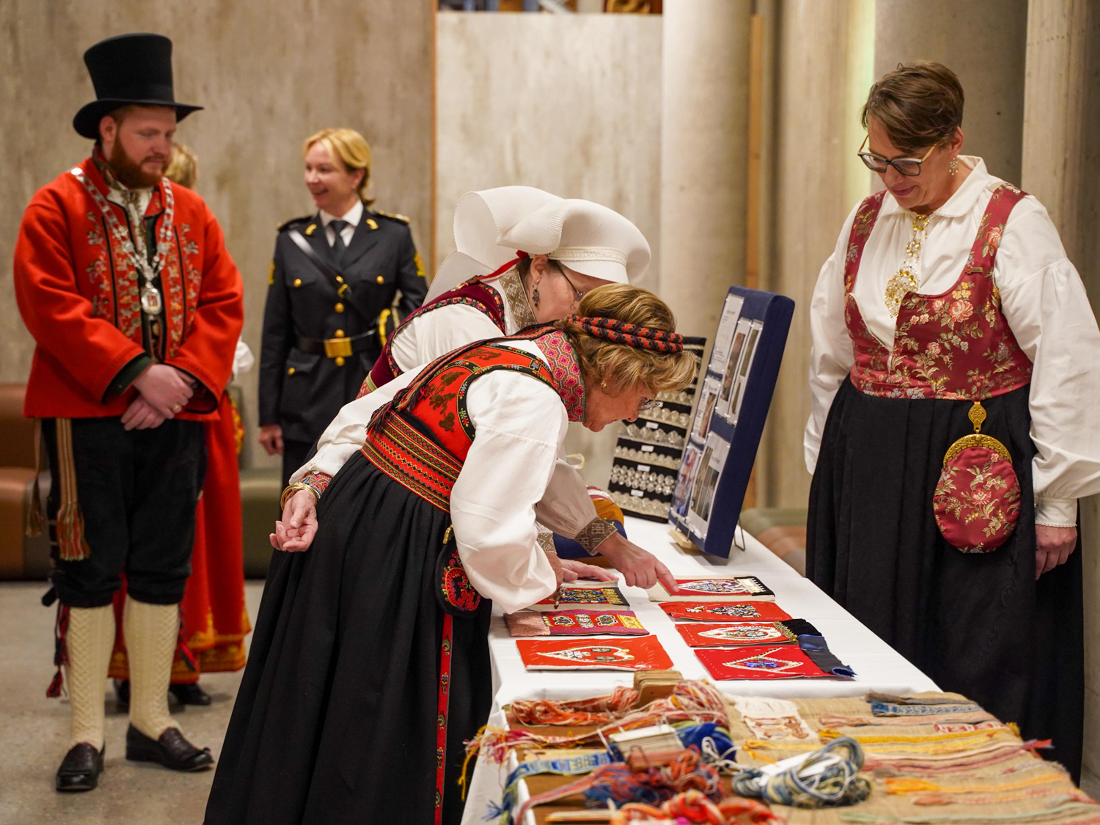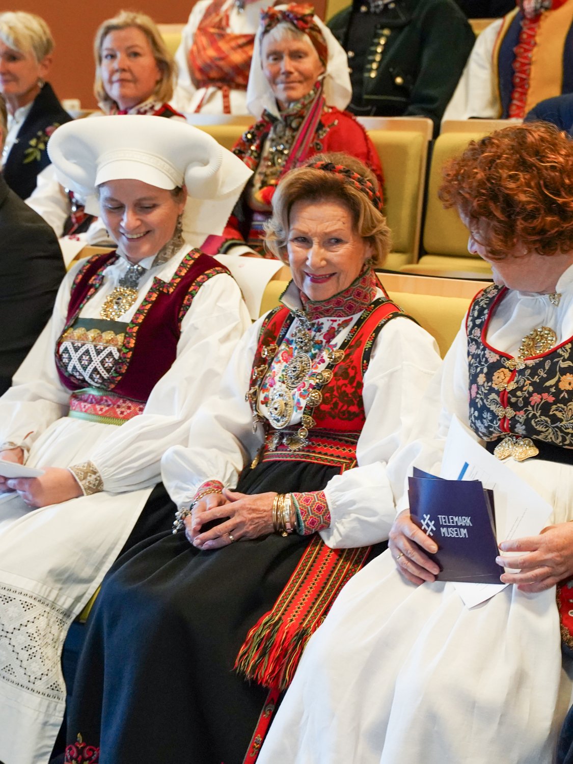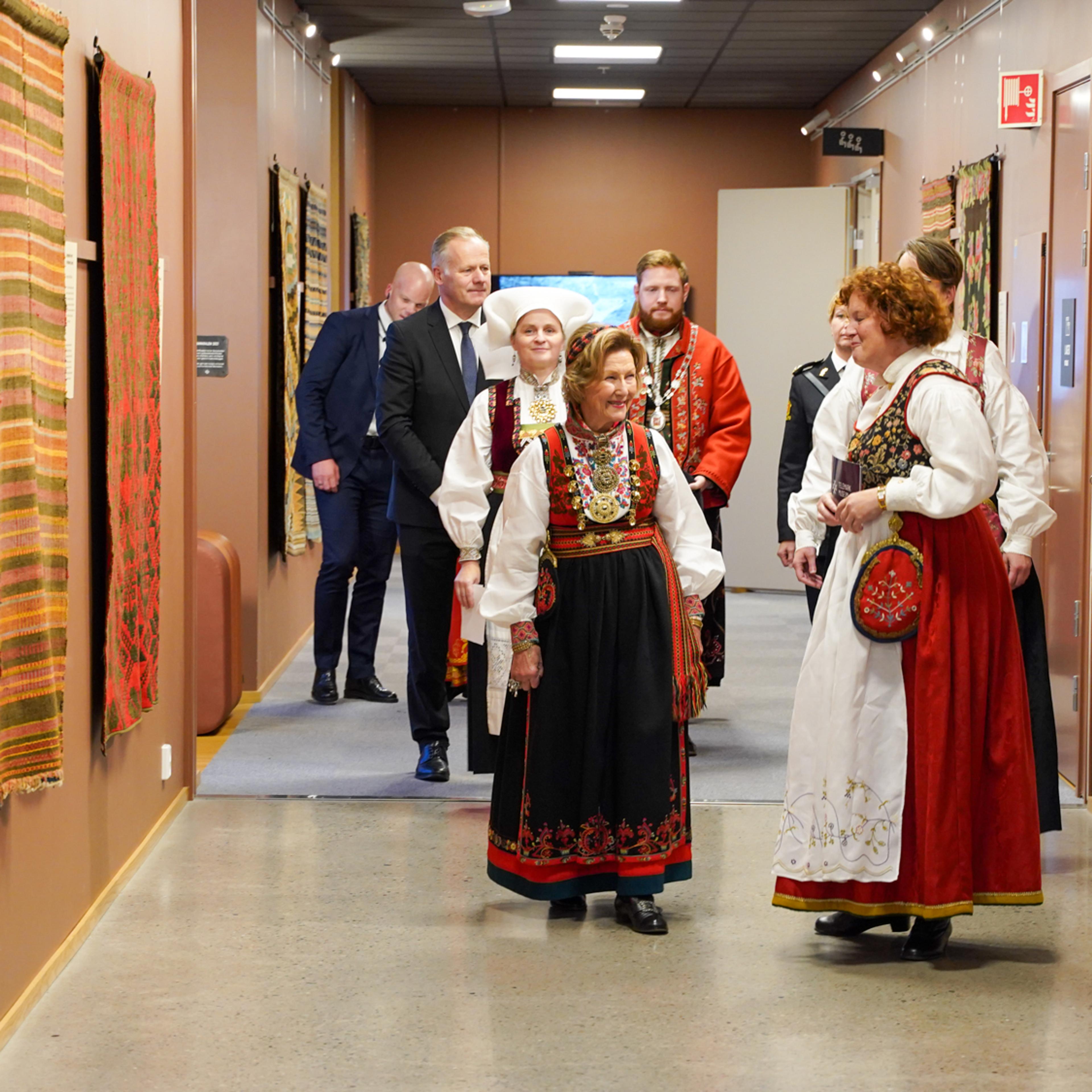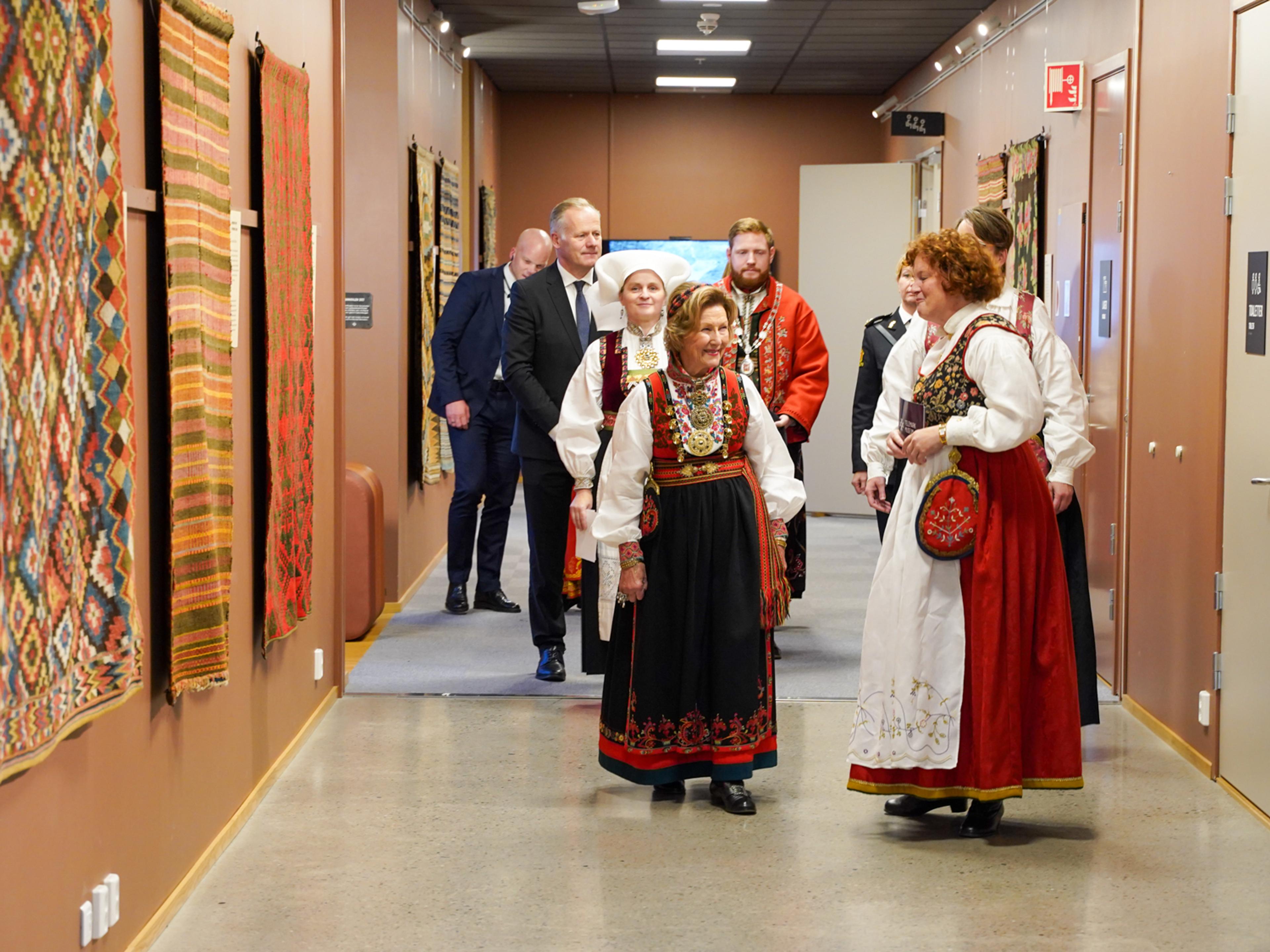 Dronninga er Norges Husflidslag sin høge beskyttar og var til stades på opninga av symposiet på museumsbygget VEV i Brekkeparken fredag, og på det faglege programmet i Ibsenhuset laurdag.