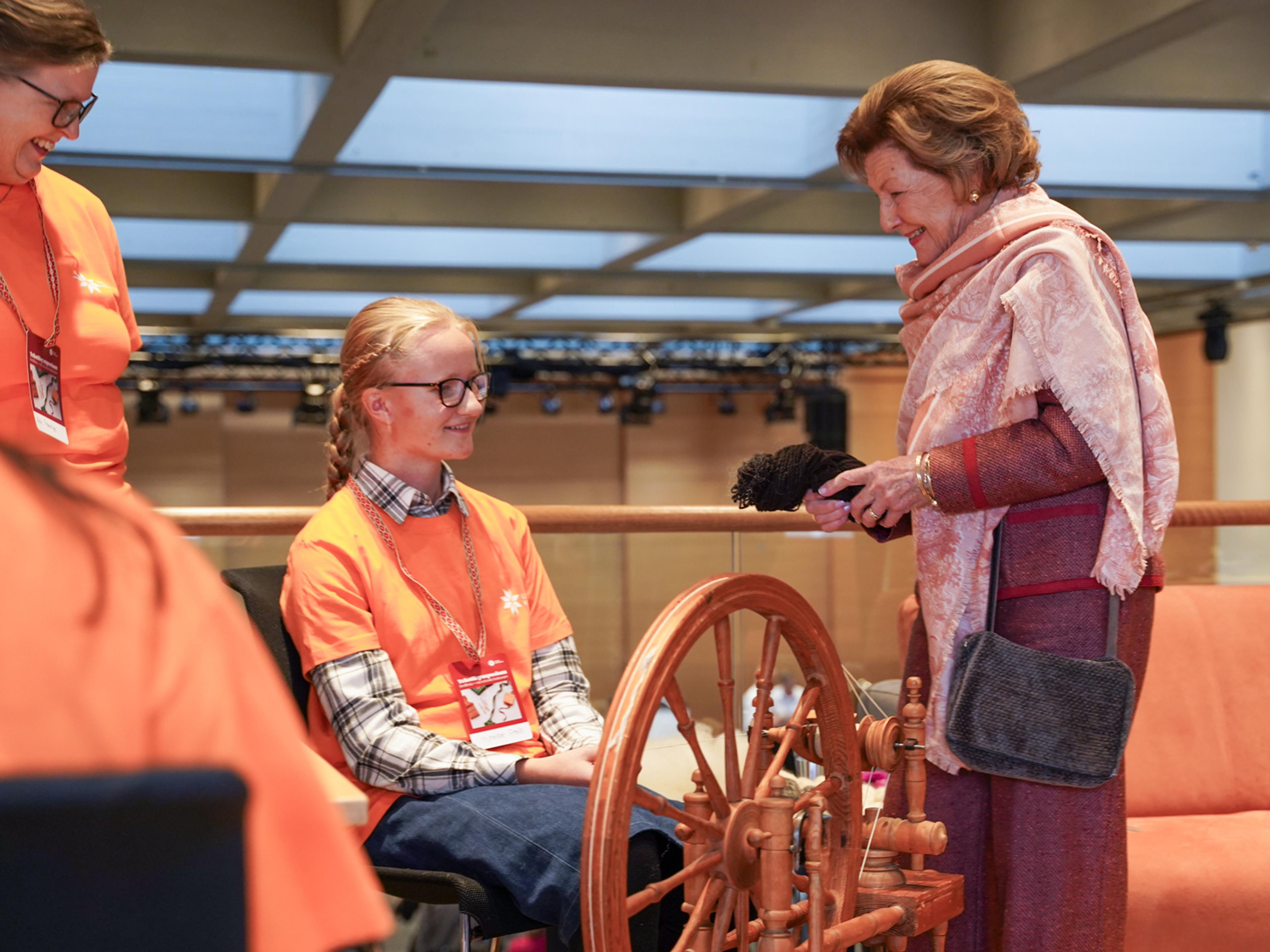 Hennar Majestet Dronning Sonja møtte unge og vaksne som brenn for tradisjonshandverk på Norges Husflidslag sitt Tekstilsymposium i helga.