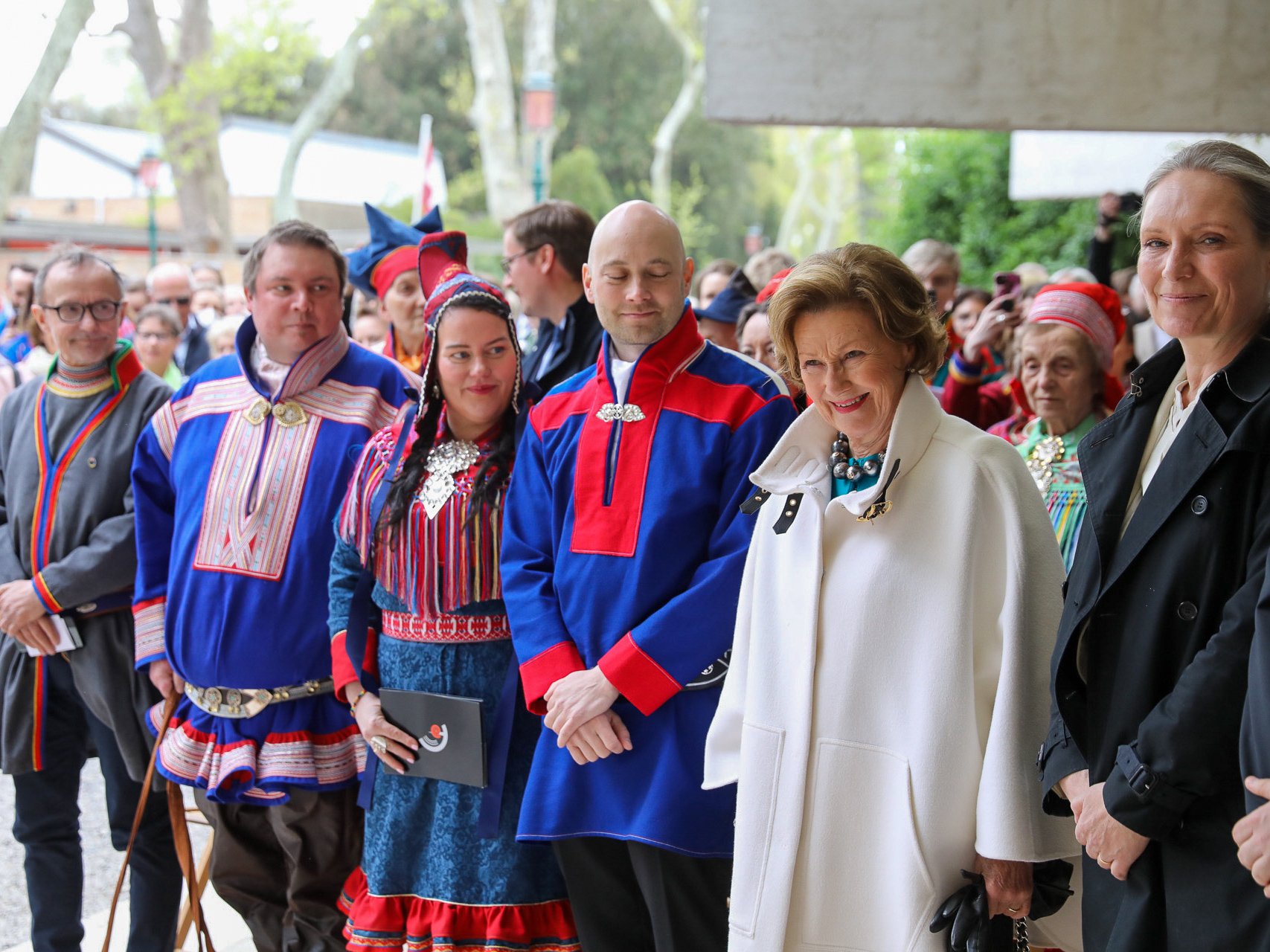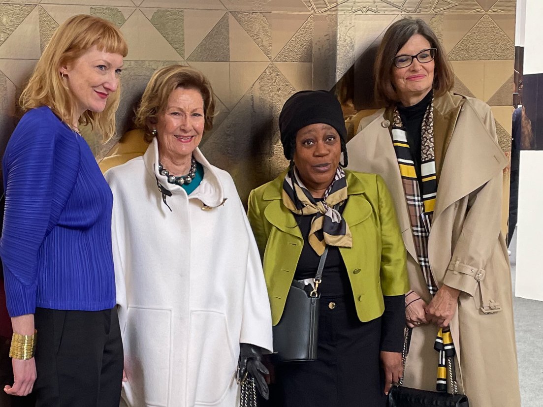 Etter en omvisning i paviljongen, der kunstnerne og kuratorene presenterte sin verk, åpnet Dronning Sonja utstillingen.