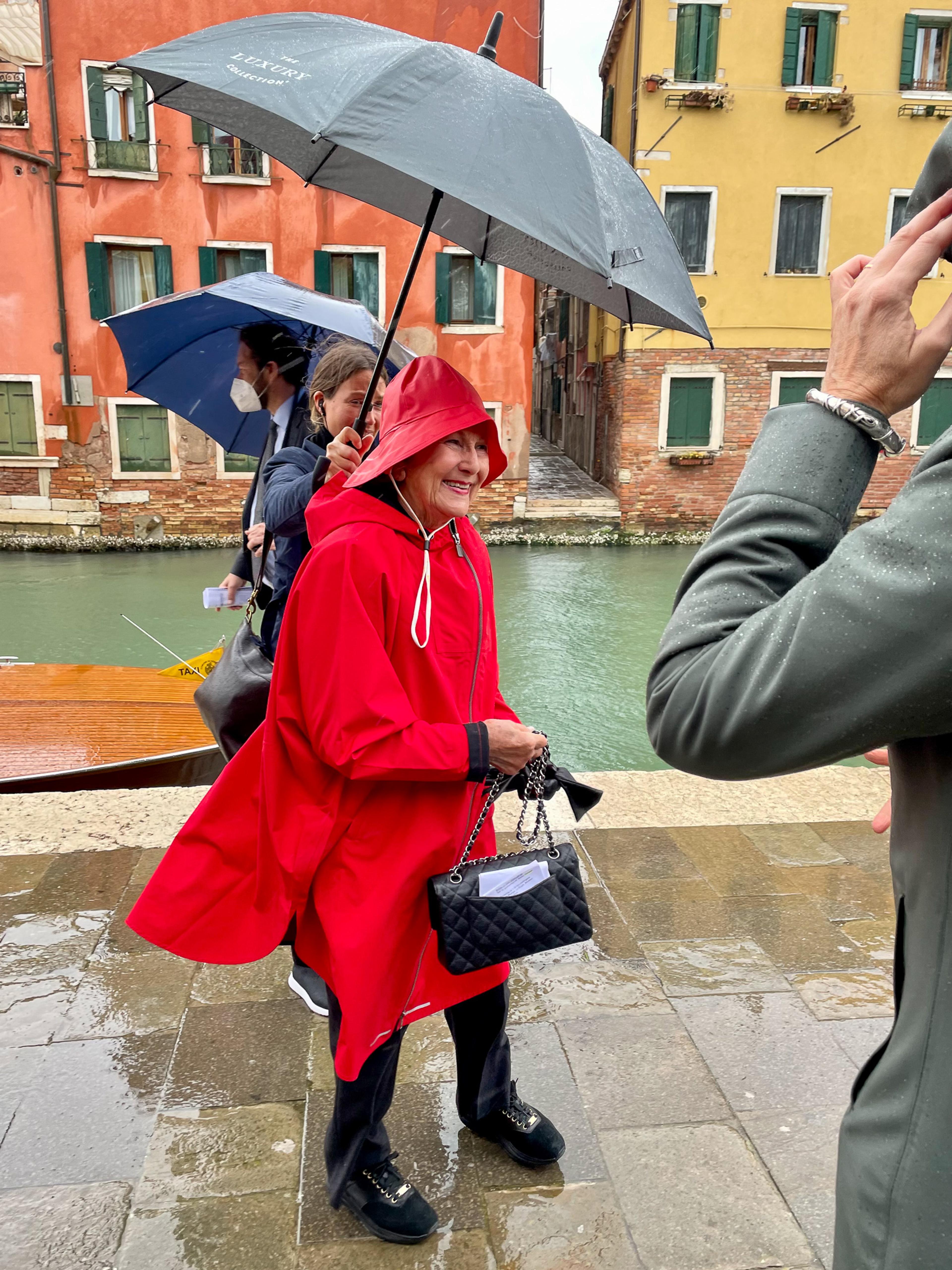 Dronningen besøkte også den danske, canadiske og britiske kunstpaviljongen, og i kveld deltar hun på en mottakelse som sametingspresidentene i Norge, Sverige og Finland, og det norske Office for Contemporary Art (OCA) inviterer til.