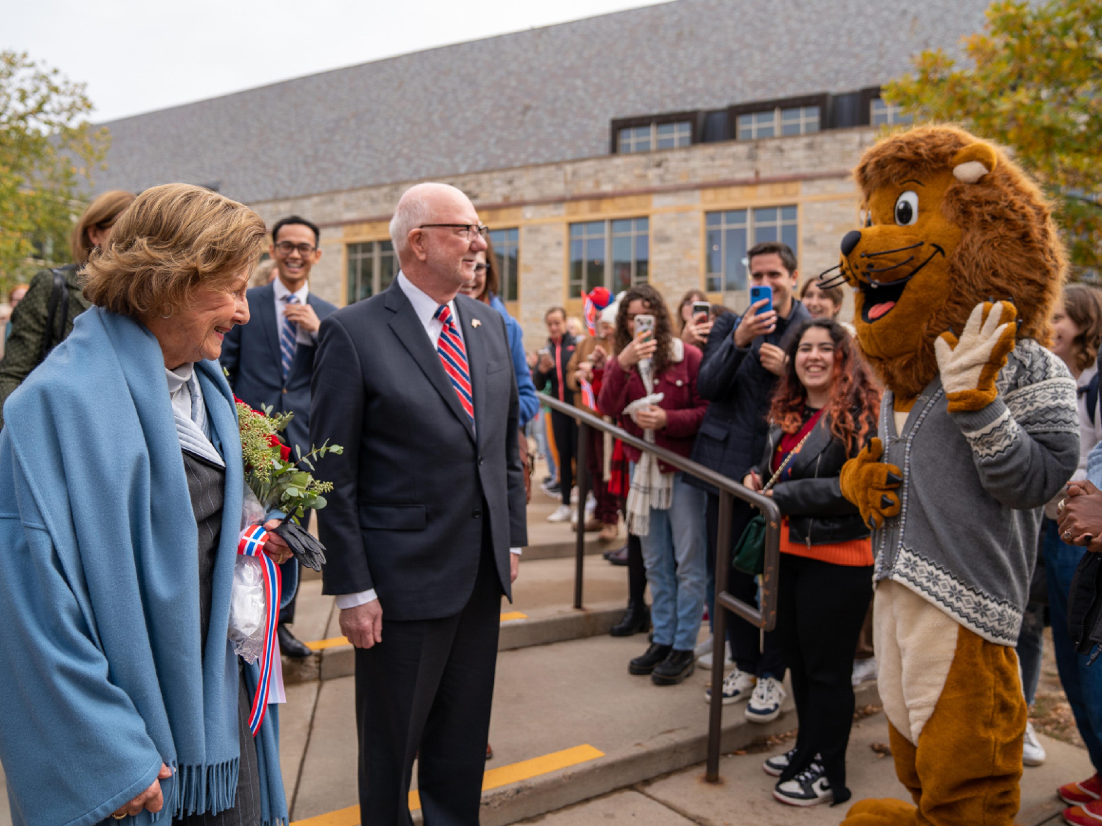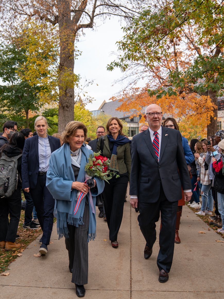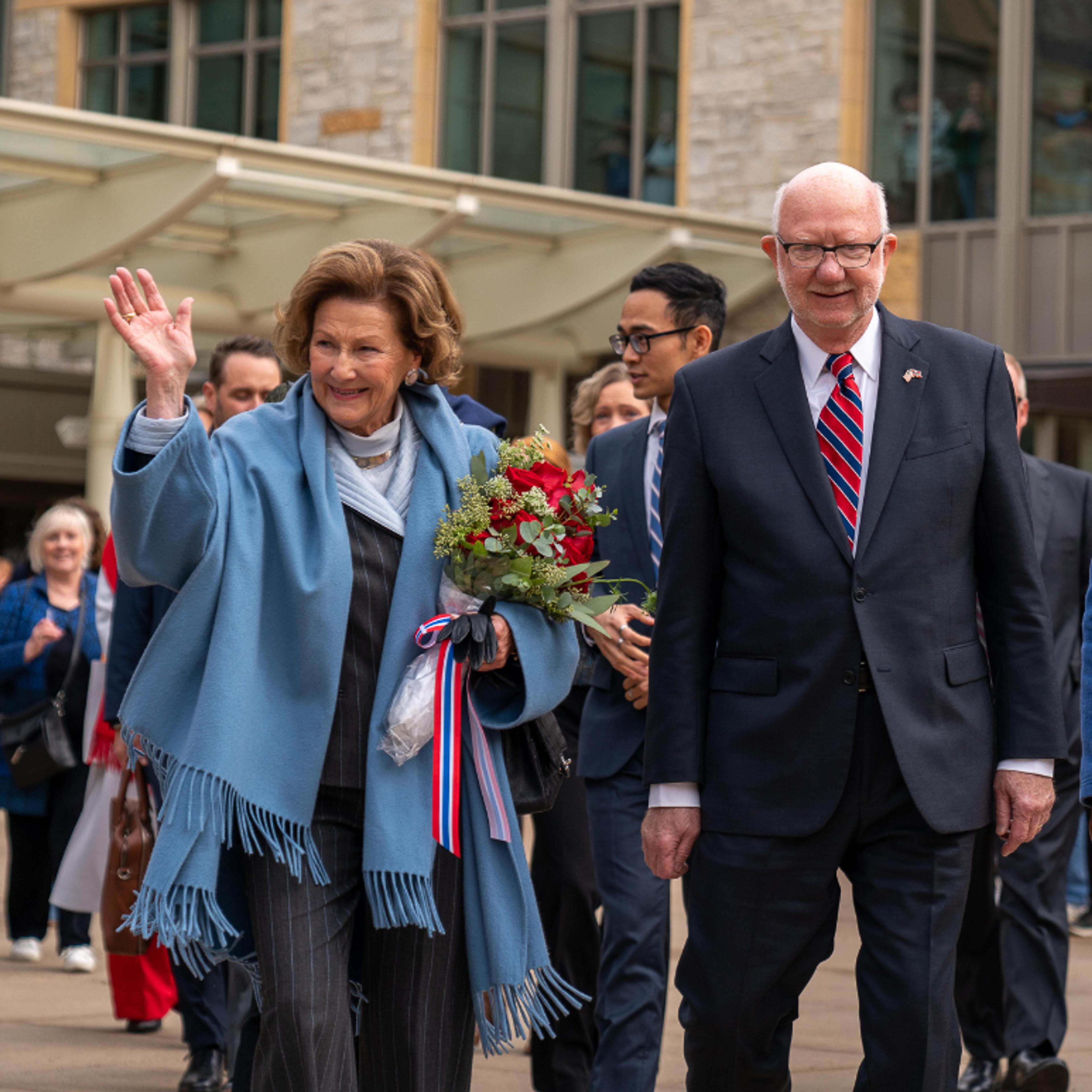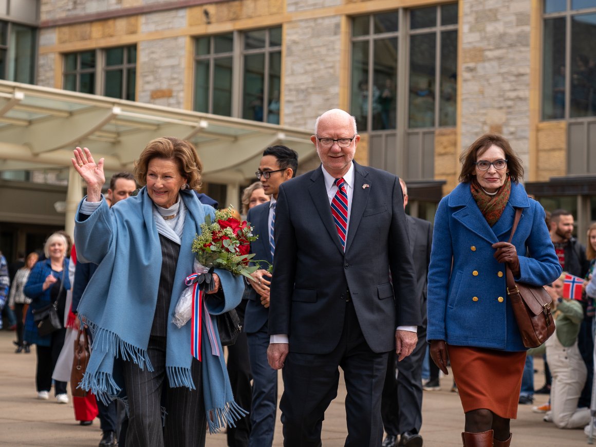Dronning Sonja besøkte St. Olaf College fredag for å markere åpningen av det nye arkivet for historiske samlinger. Arkivet er spesielt konstruert for å ta vare på historisk materiale på forsvarlig og vil stå helt ferdig i løpet av høsten.