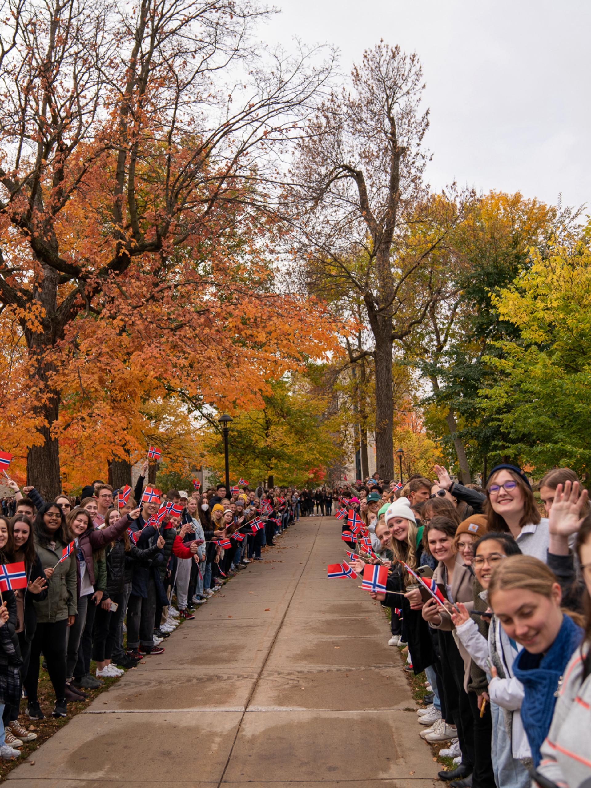 Dette er fjerde gang Dronning Sonja besøker St. Olaf College. To besøk ble avlagt i følge med Hans Majestet Kongen i 2011 og 2008. Første gangen var som Kronprinsesse i 1978.