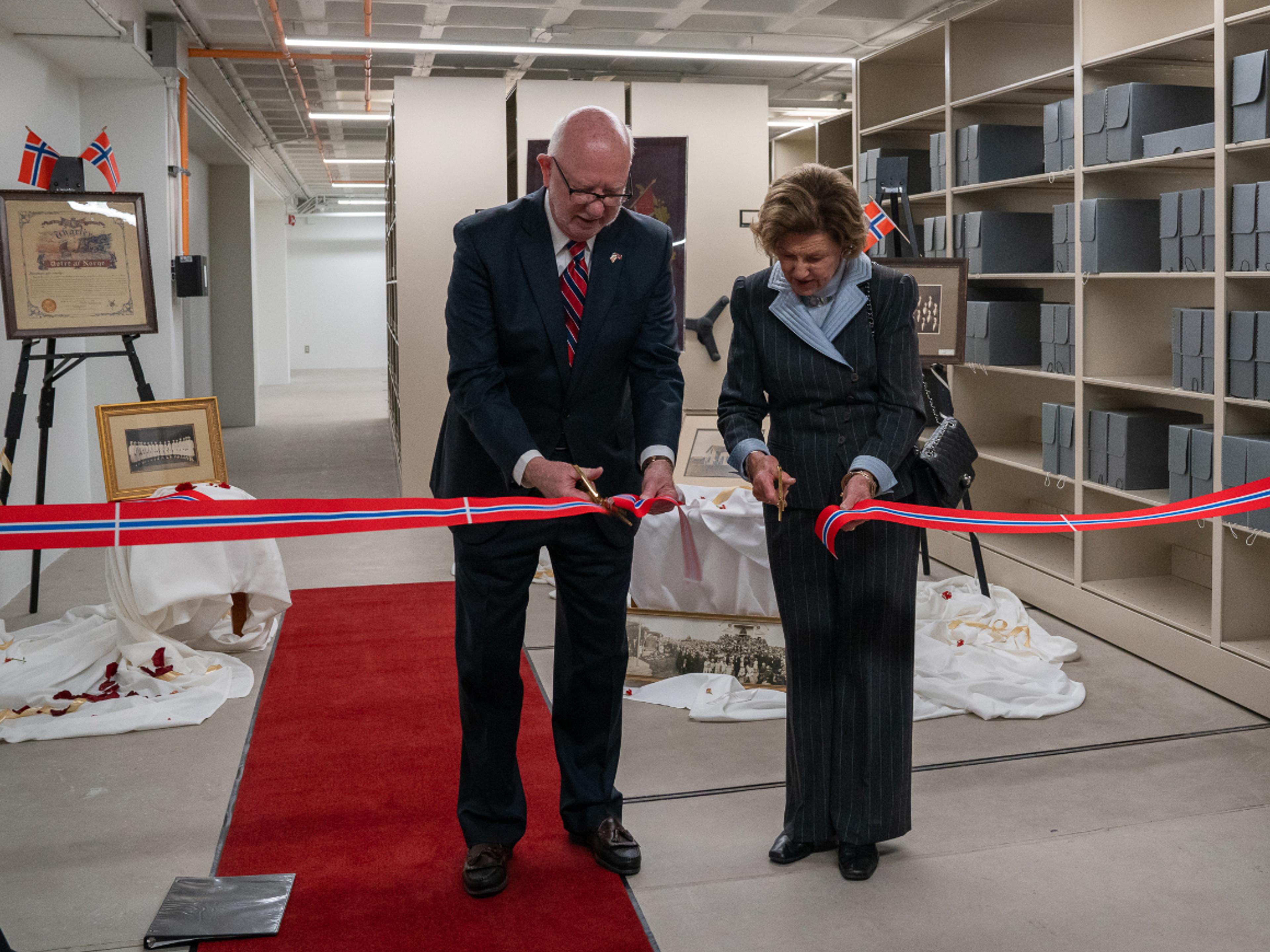 Hennes Majestet Dronning Sonja er på offisielt besøk i Minnesota. Fredag markerte hun åpningen av et nytt arkiv med materiale fra den norske immigrasjonen til USA.