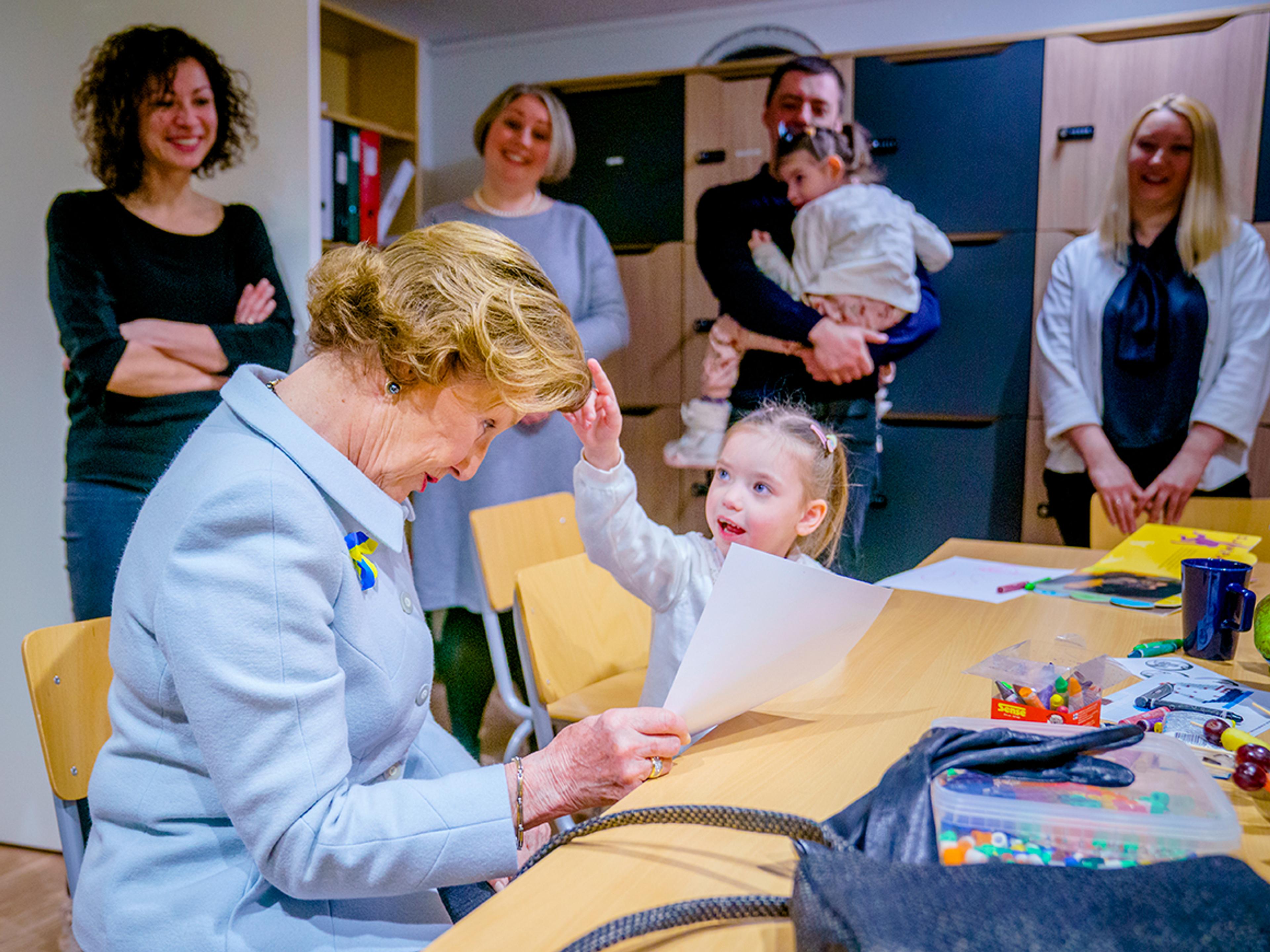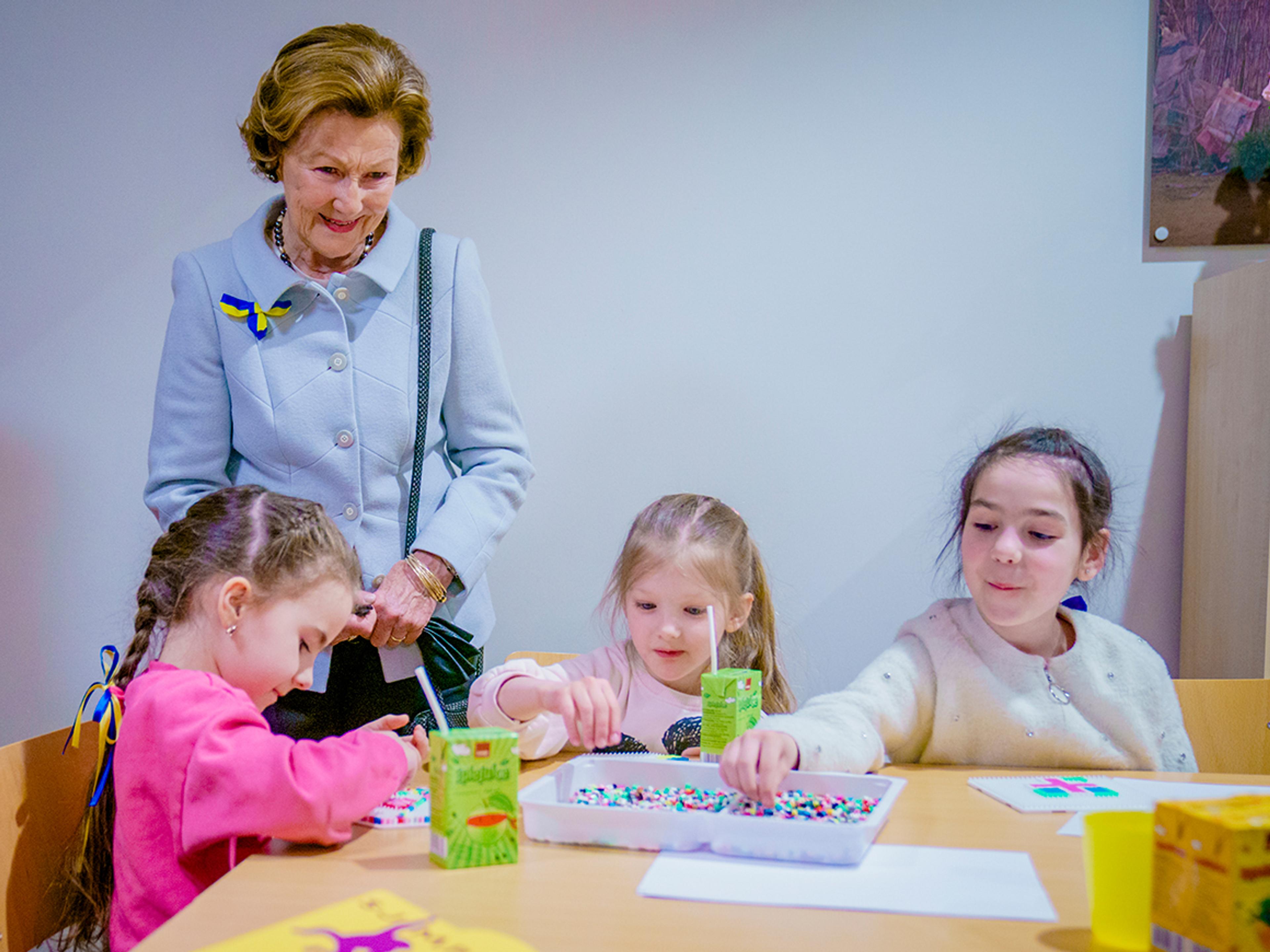 Hennes Majestet Dronning Sonja møtte flyktninger fra Ukraina hos hjelpeorganisasjonen Caritas i dag. – Det gjorde sterkt inntrykk.