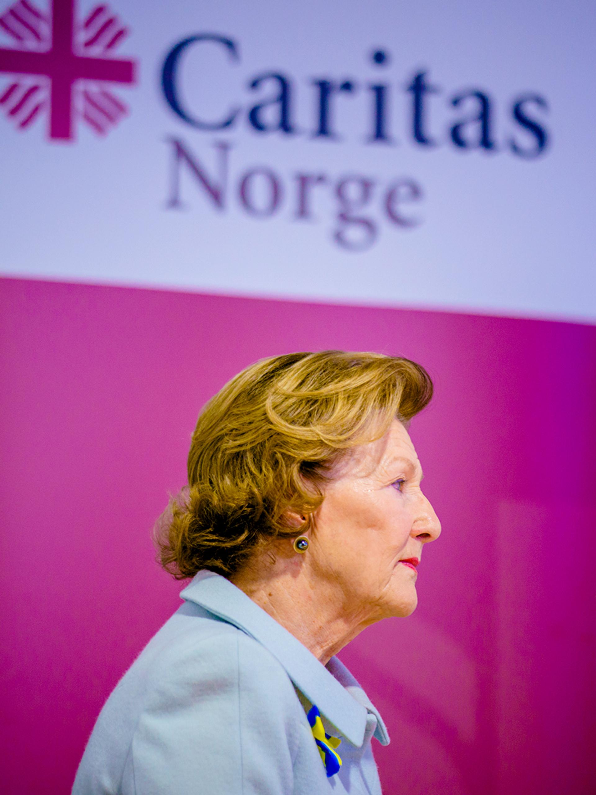 Dronningen fikk også en orientering om arbeidet Caritas gjør i Ukraina og for flyktninger som kommer til Norge.