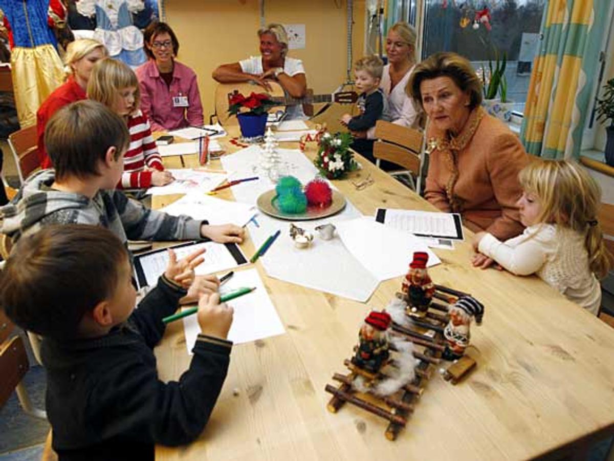 Dronning Sonja deltok i barnas sangstund i leketerapirommet.