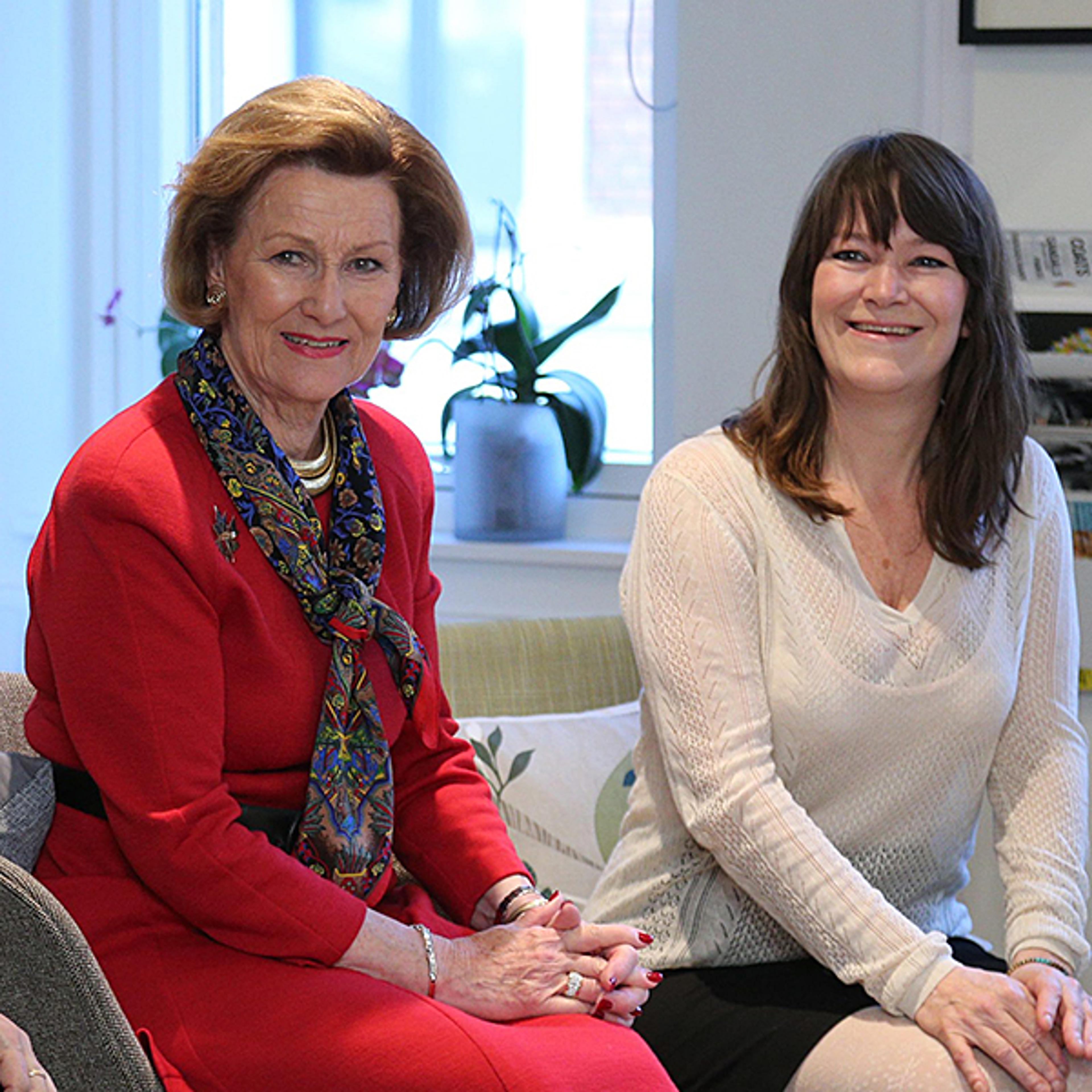 Dronningen ble tatt i mot av lederen for kvinnesenteret, Marianne Bockelie, og Hoda Mohammed Said. Said er en av de 160 frivillige som bidro med nesten 15 årsverk for Stella i 2014. Mange av Stellas frivillige startet som deltagere, for så å gå over i rollen som frivillig bidragsyter.