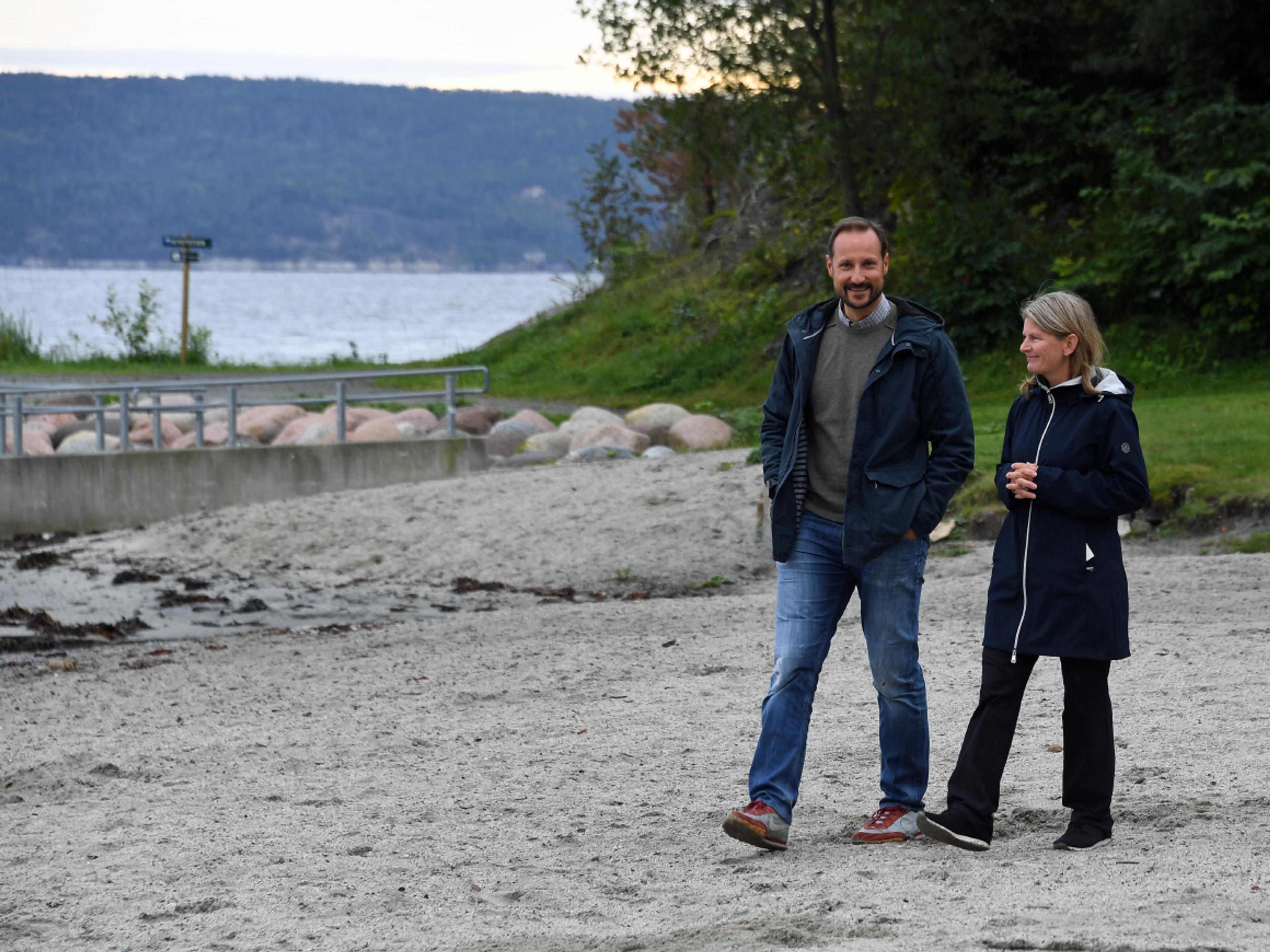 Askers ordfører Lene Conradi tok imot Kronprinsen da han kom til Sjøstrand i dag, og hun ga Kronprinsen en orientering om arbeidet kommunen gjør for å bedre klimaet og miljøet langs strandsonen.