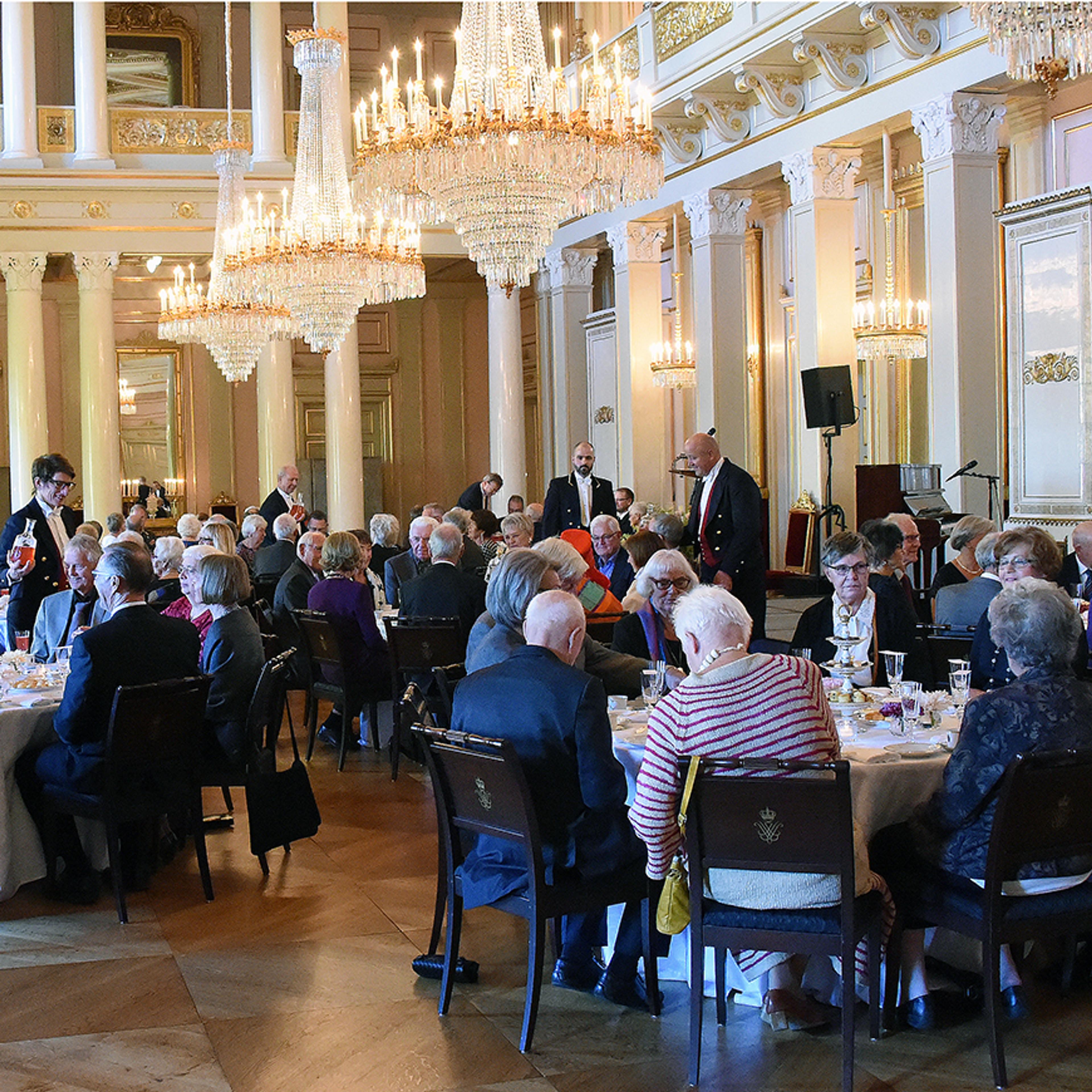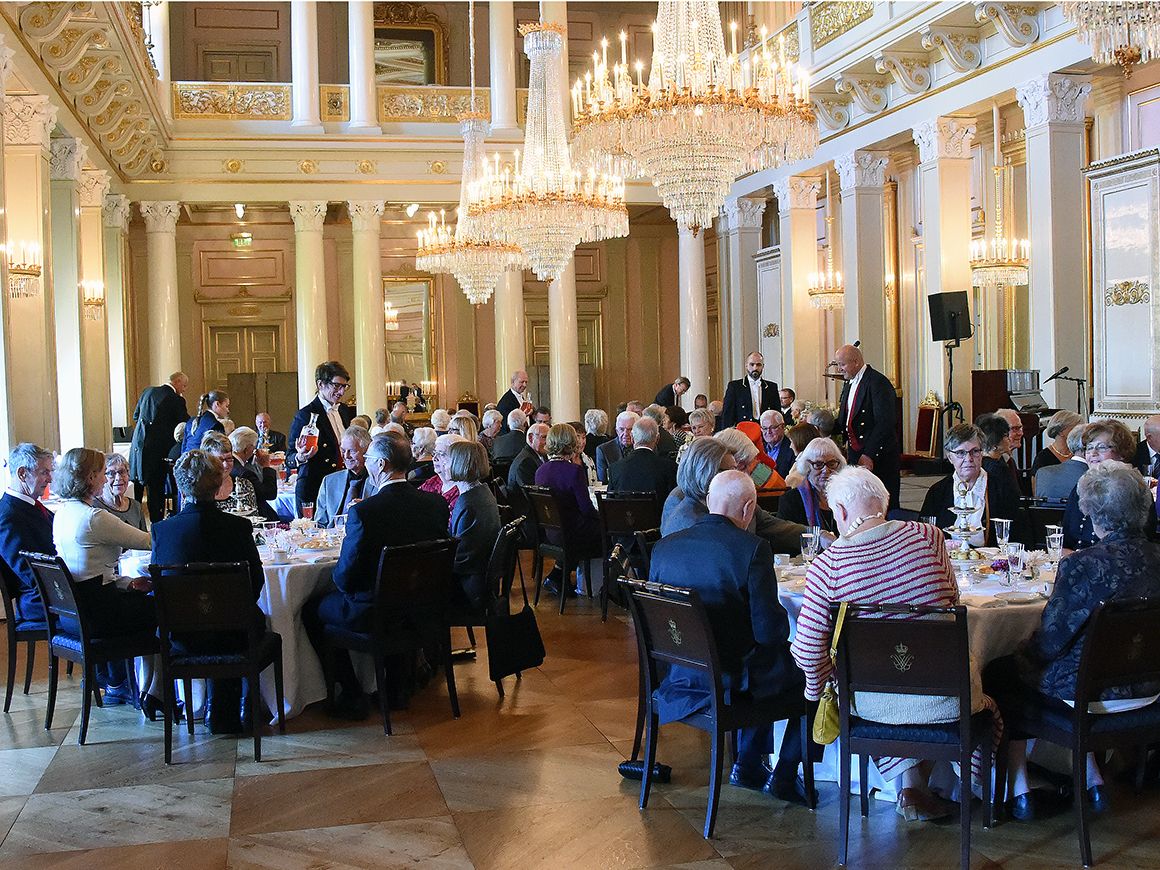 Arrangementet holdes omkring runde bord i Store festsal - slottets ballsal. Før selskapet går til bords, får gjestene dessuten en omvisning på Det kongelige slott, der de får se Slottets viktigste saler og rom.