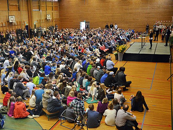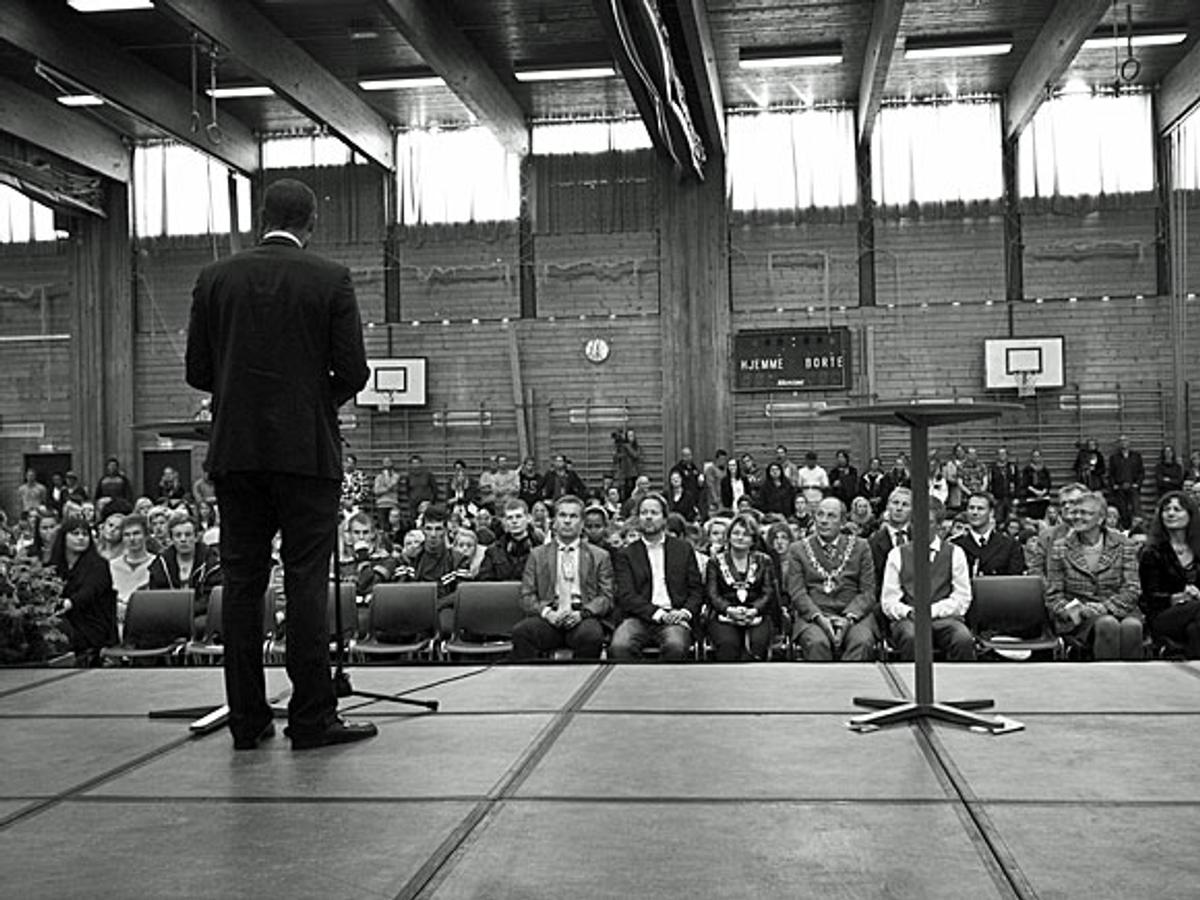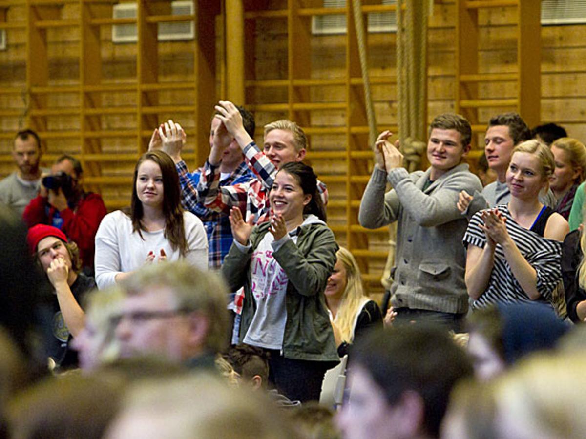 Besøket på Sogndal videregående skole var en del av oppkjøringen til årets Global Dignity Day 17. oktober. 30.000 ungdommer, 150 videregående skoler og 1.400 frivillige veiledere er med i år.