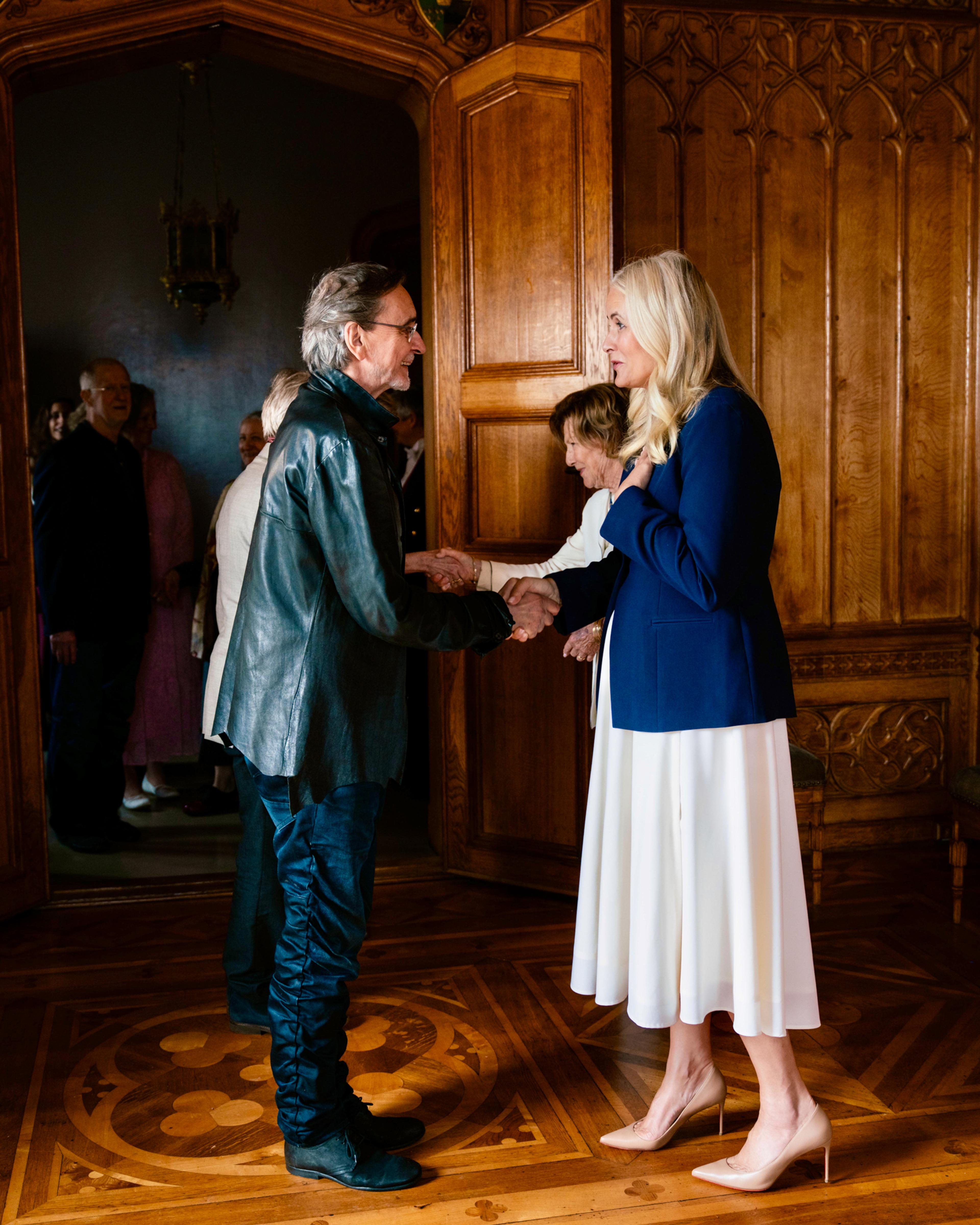 I andre etasje på lystslottet ble de ønsket velkommen av Dronning Sonja og Kronprinsesse Mette-Marit. Det var musikalske innslag av Rolf-Erik Nystrøm og Juliana Venter (saksofon og vokal) og Nils Petter Molvær på trompet før gjestene ble invitert inn i spisesalen.