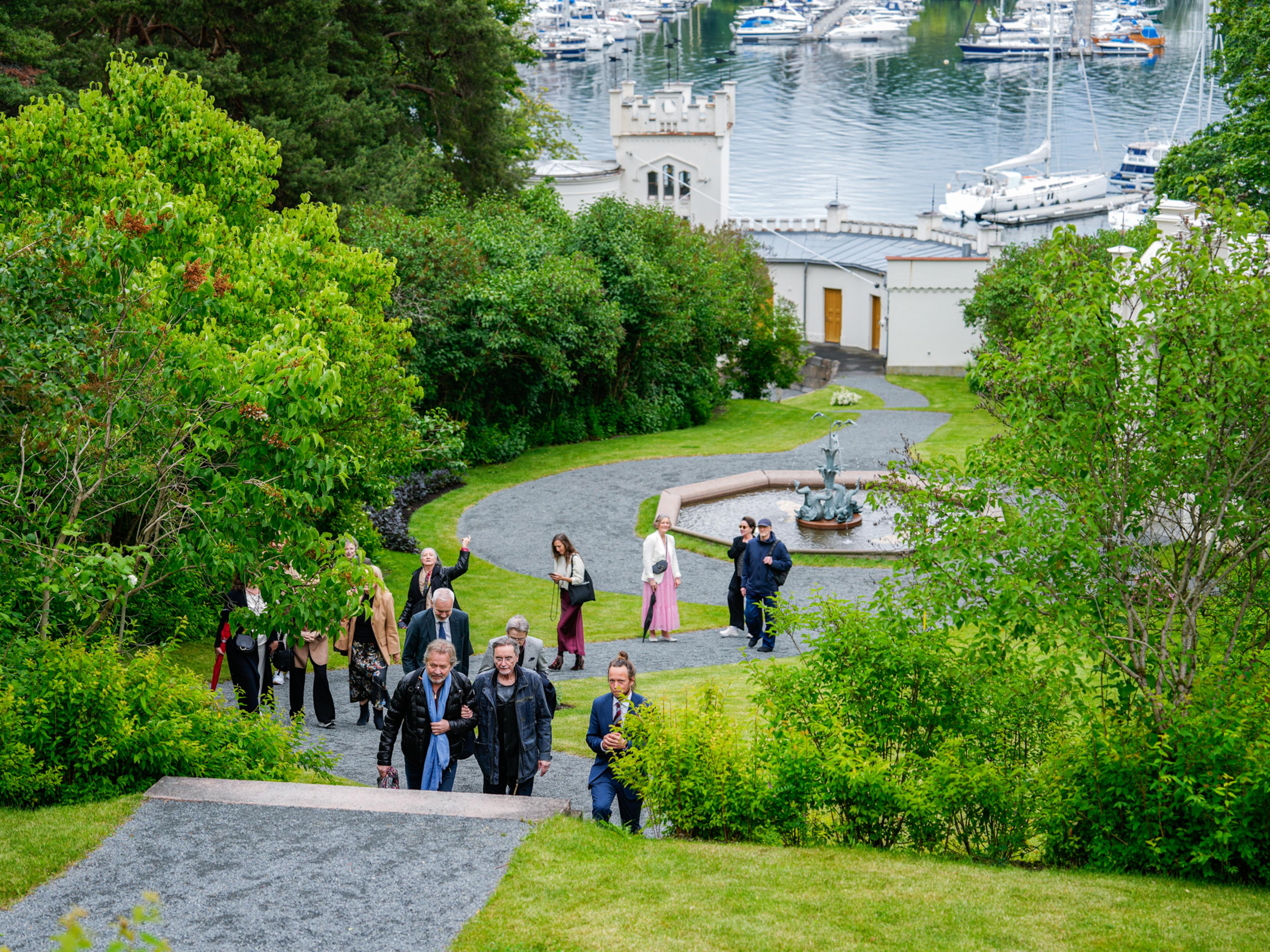 Gjestene ankom kaia på nedsiden av Oscarshall med Kongebåten “Stjernen” og vandret gjennom parken som går opp til hovedbygningen.