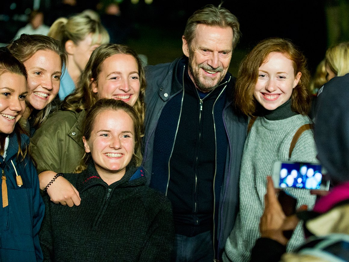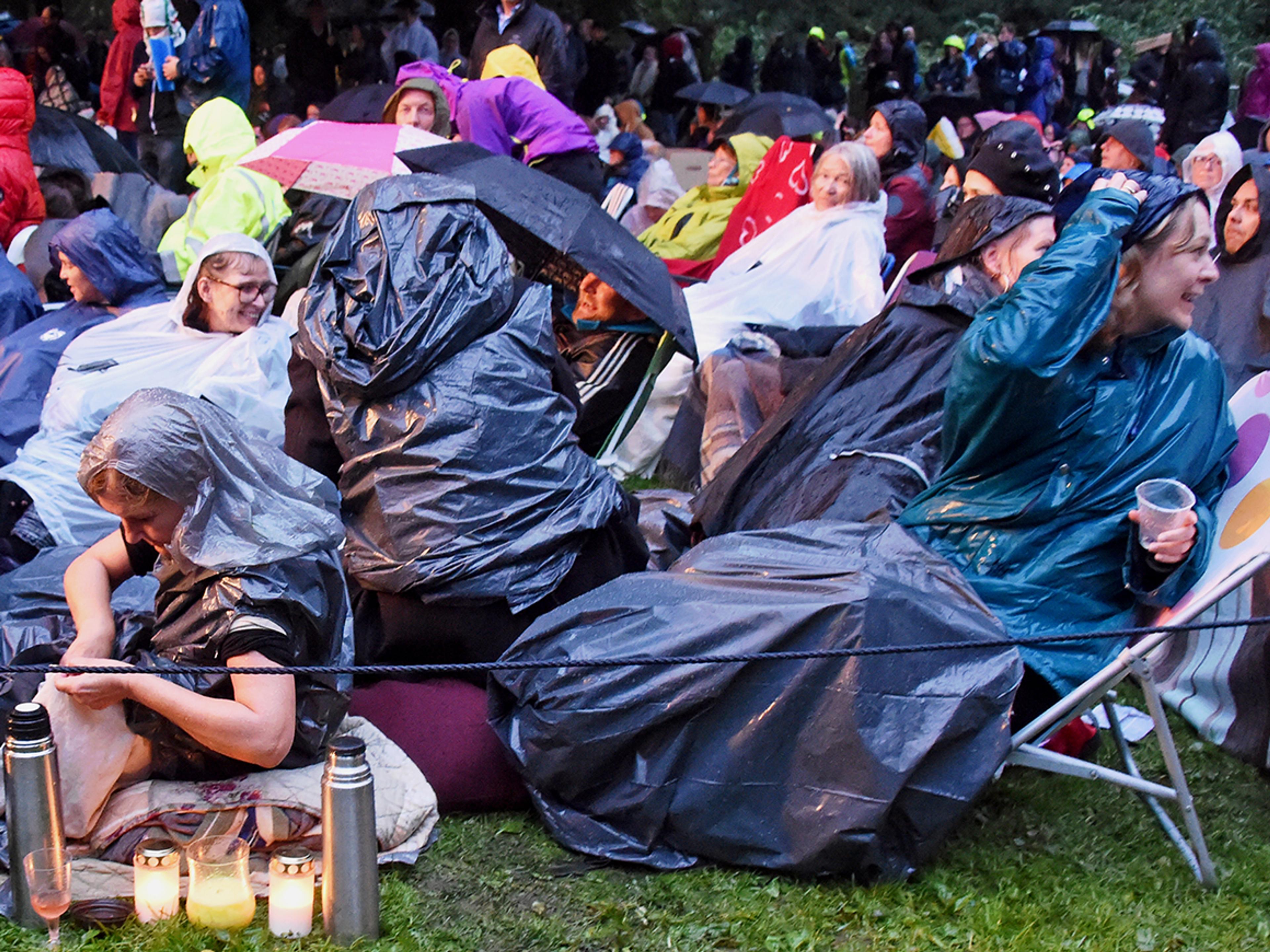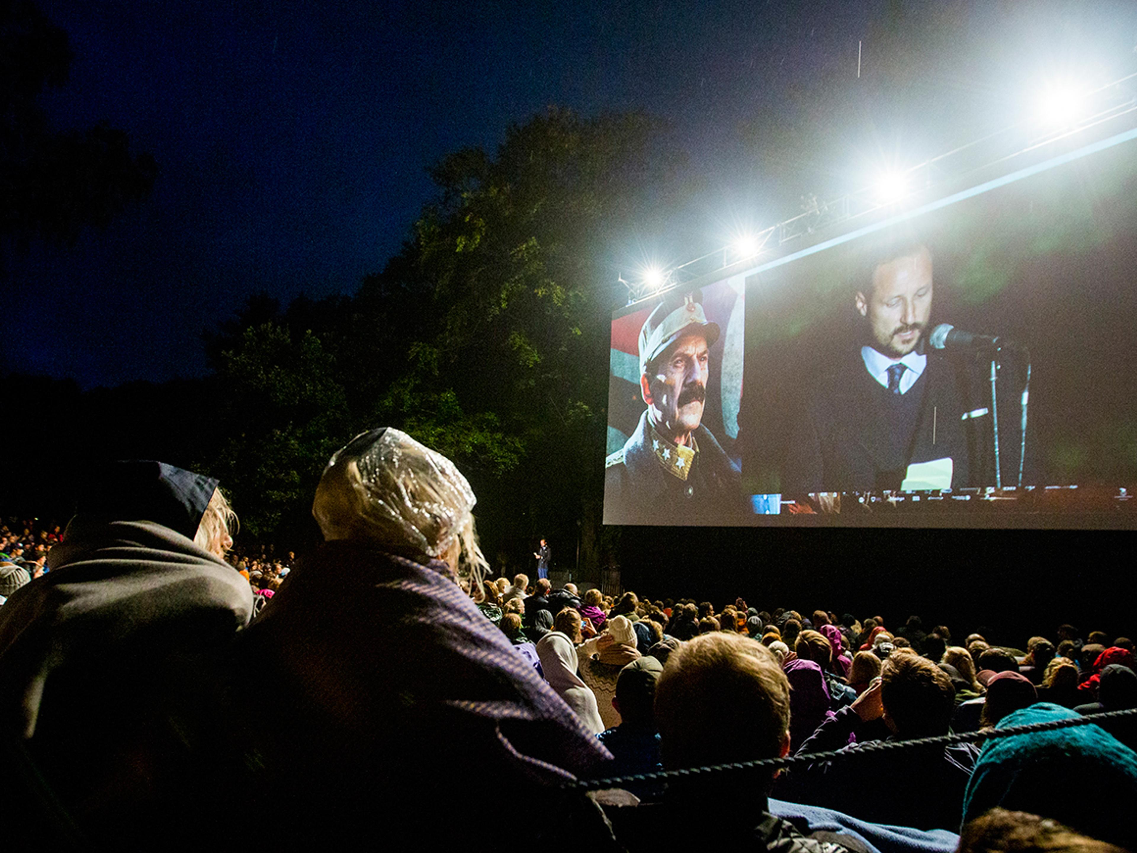 Filmen skulle starte klokken 20.00, men publikum begynte å strømme til allerede fra 17.00 og utover. En regnbyge passerte over parken, men var stort sett over da tiden var inne og Kongefamilien ankom.