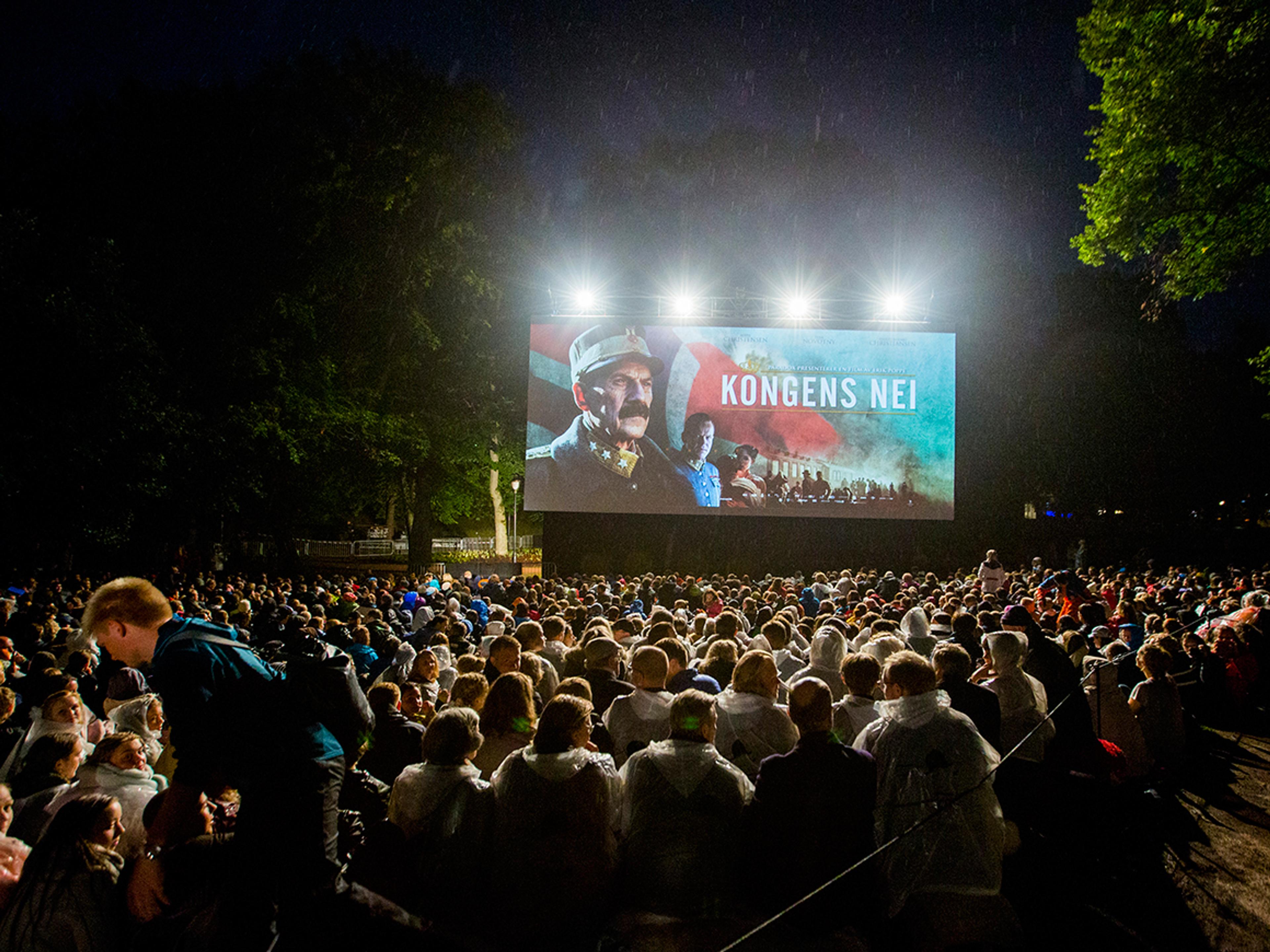 Deres Majesteter Kong Harald og Dronning Sonja ønsket å avslutte markeringen av jubileet Kongepar i 25 år slik den begynte: Med et arrangement som er åpent for alle. Valget falt på utekino i Jubileumsparken, og da det viste seg at filmen var premièreklar falt valget av film på Erik Poppes "Kongens Nei".