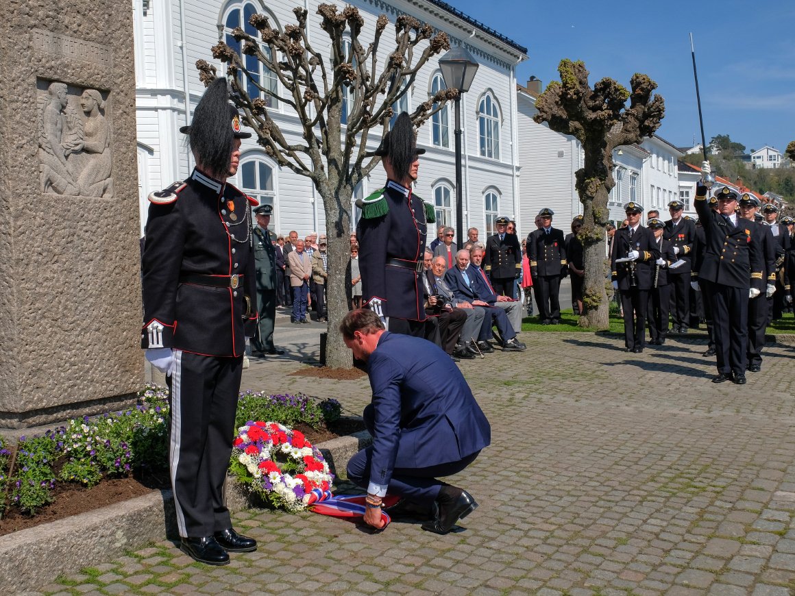 Ved minnestøtten på Solsiden i Risør ble Frigjørings- og veterandagen markert på tradisjonelt vis. Ordfører Per Kristian Lunden talte, og fire veteraner fra norske utenlandsoperasjoner ble hedret av Forsvaret.