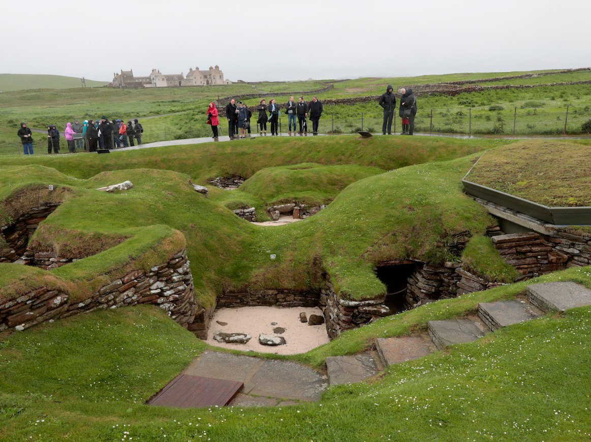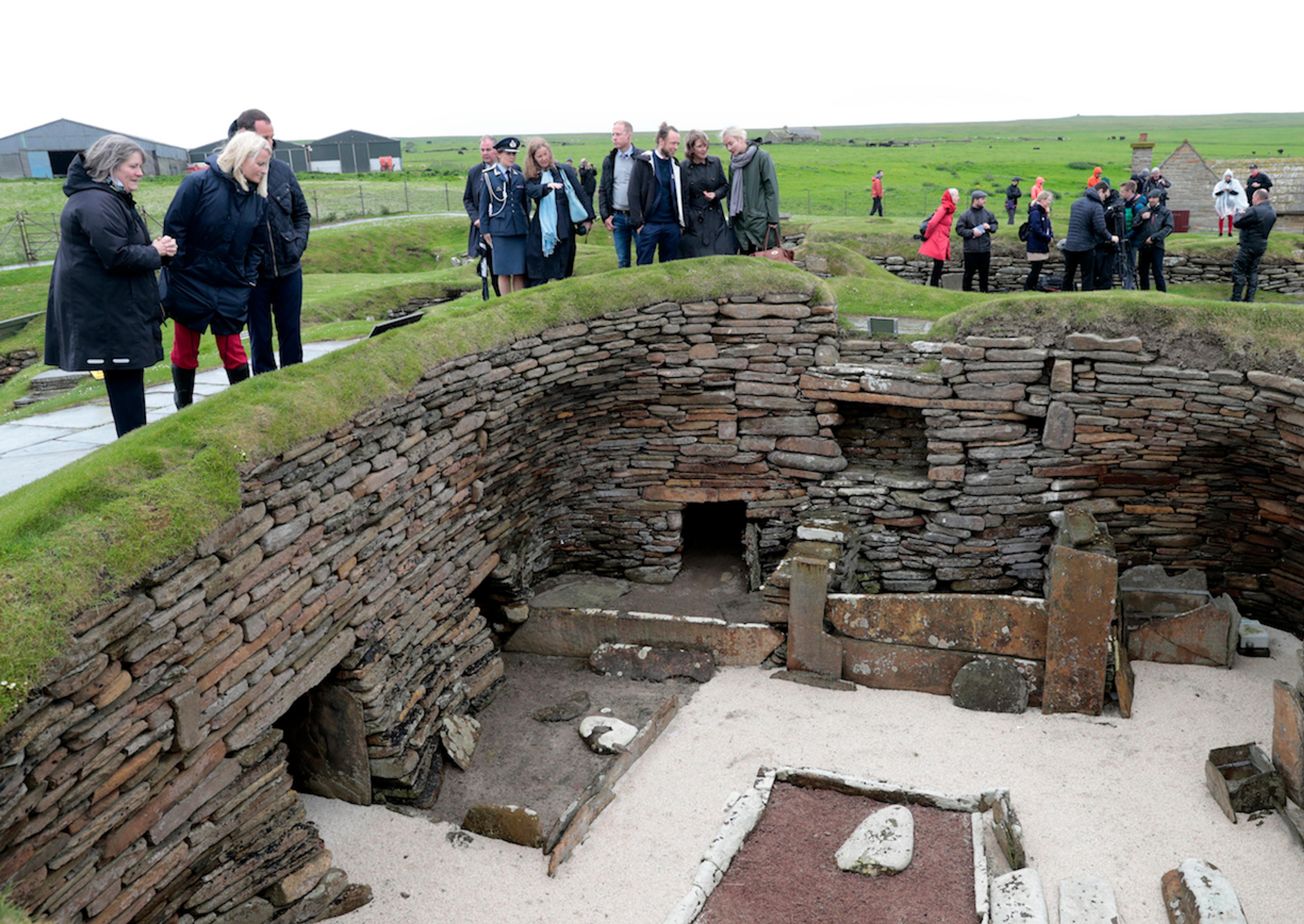 Kronprinsparet besøkte Skara Brae på sin andre dag på Orknøyene - en forhistorisk bosetning som av mange regnes som det viktigste førhistoriske funnstedet i Europa.