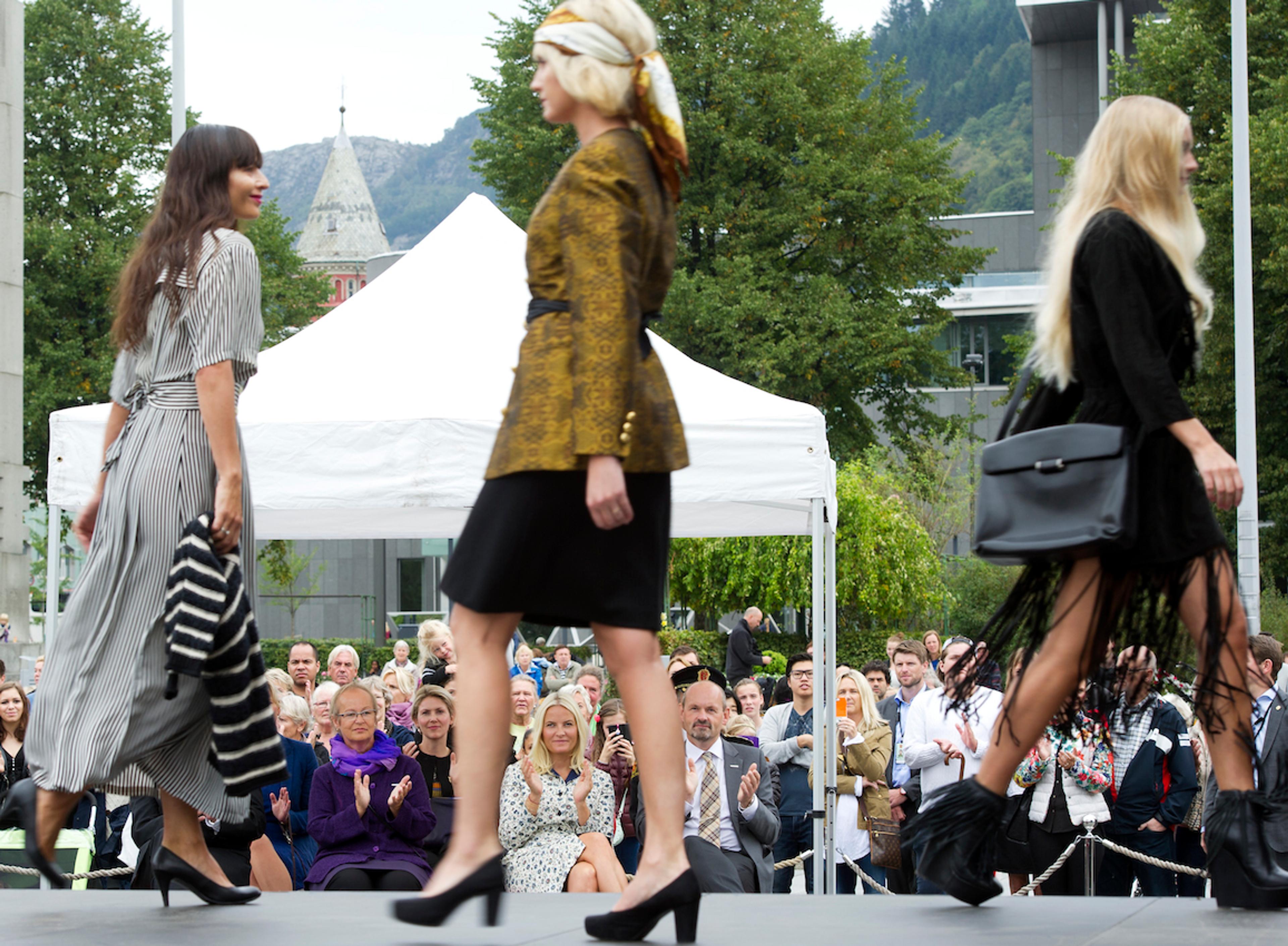 H.K.H. Kronprinsessa deltok på Gjenbruksdagen i Bergen i dag. Saman med Fretex og konferansier Jenny Skavland ønskte Kronprinsessa å vise moglegheitene i redesign og kor viktig gjenbruk er.