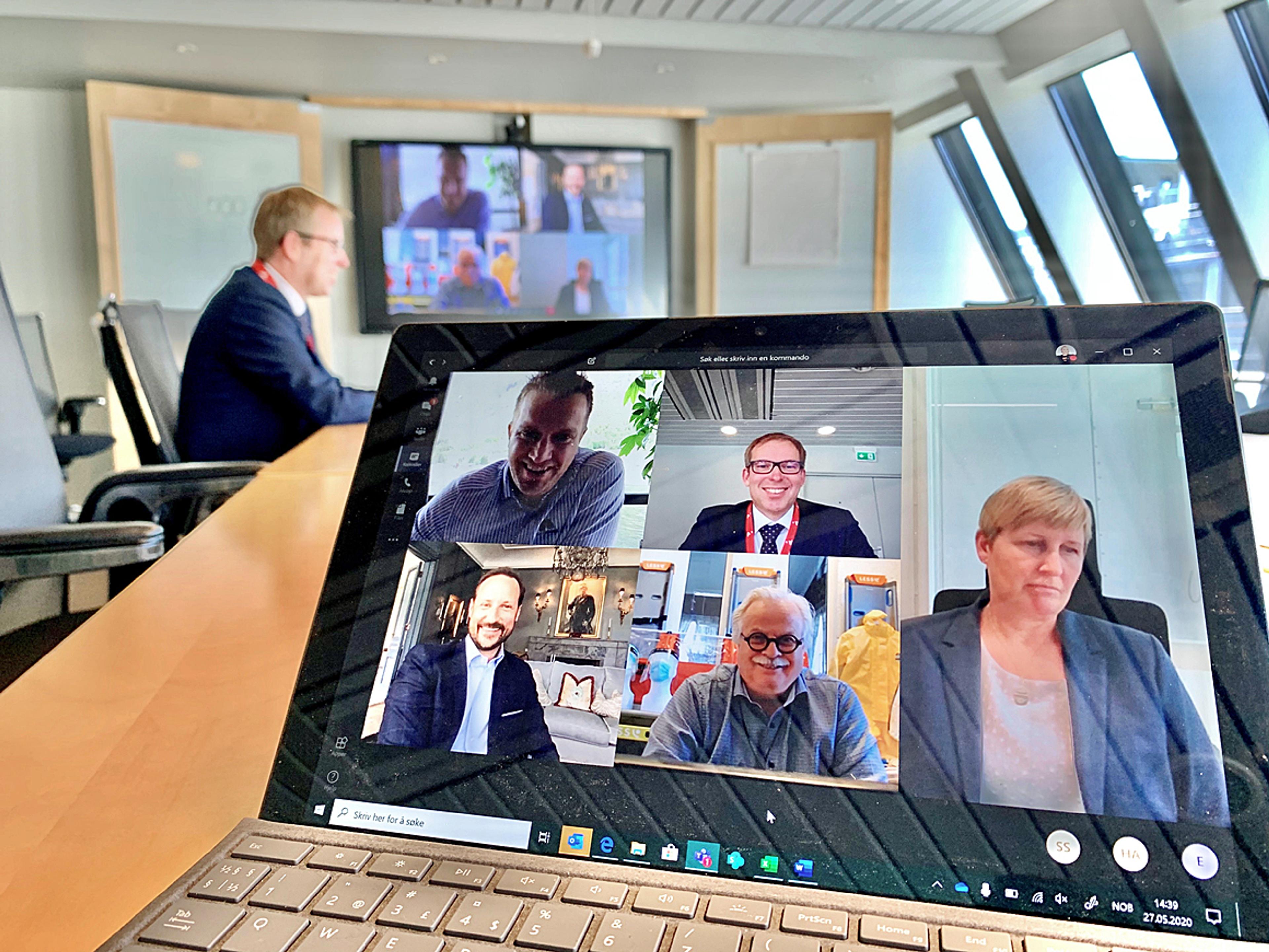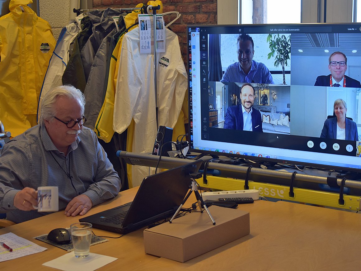 I dag fikk Hans Kongelige Høyhet Kronprins Haakon høre om hvordan koronapandemien gir muligheter for bedriftene Less, Epiguard og Rocketfarm. – Det er imponerende og inspirerende, det dere har fått til, sa Kronprins Haakon.