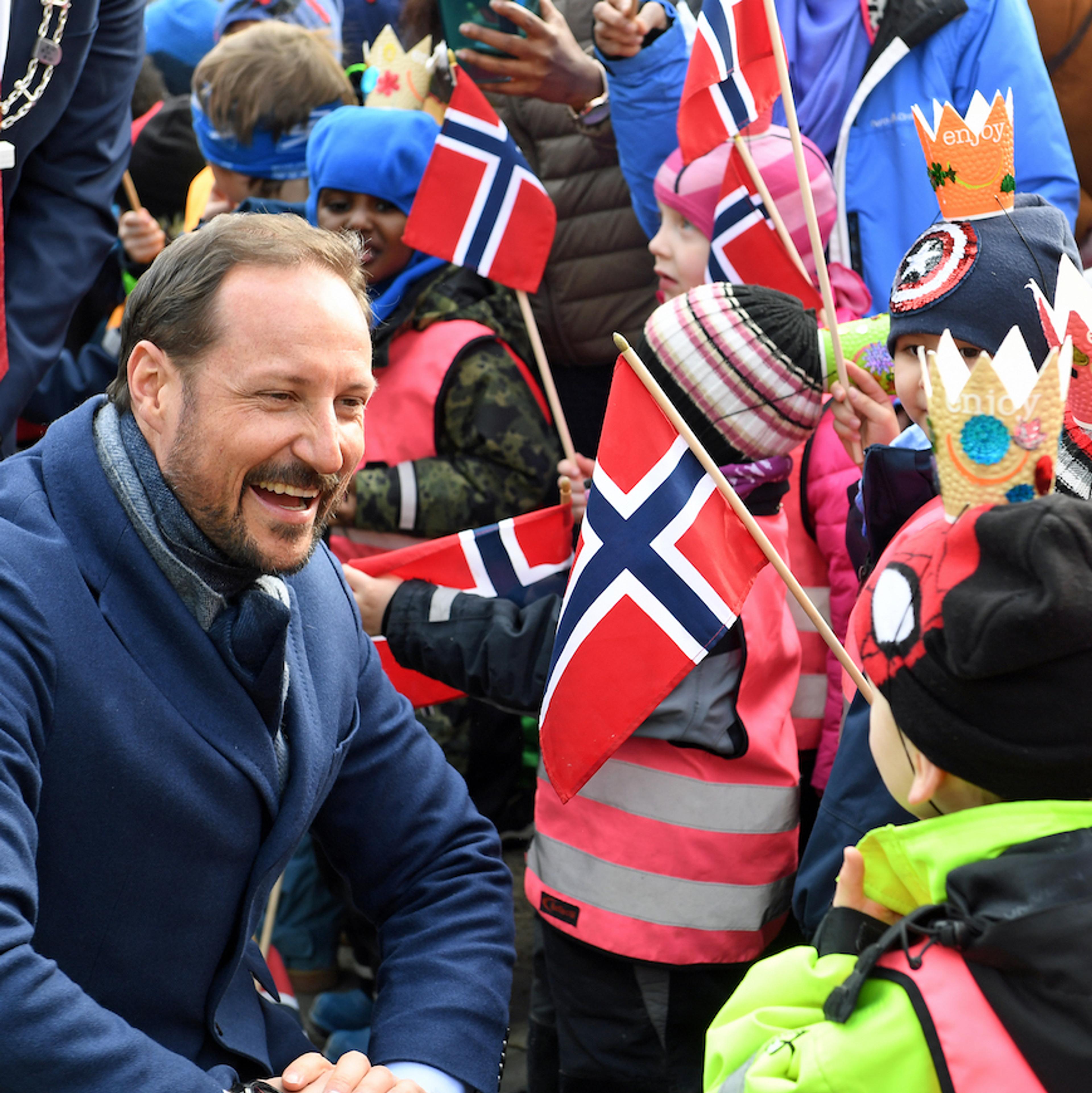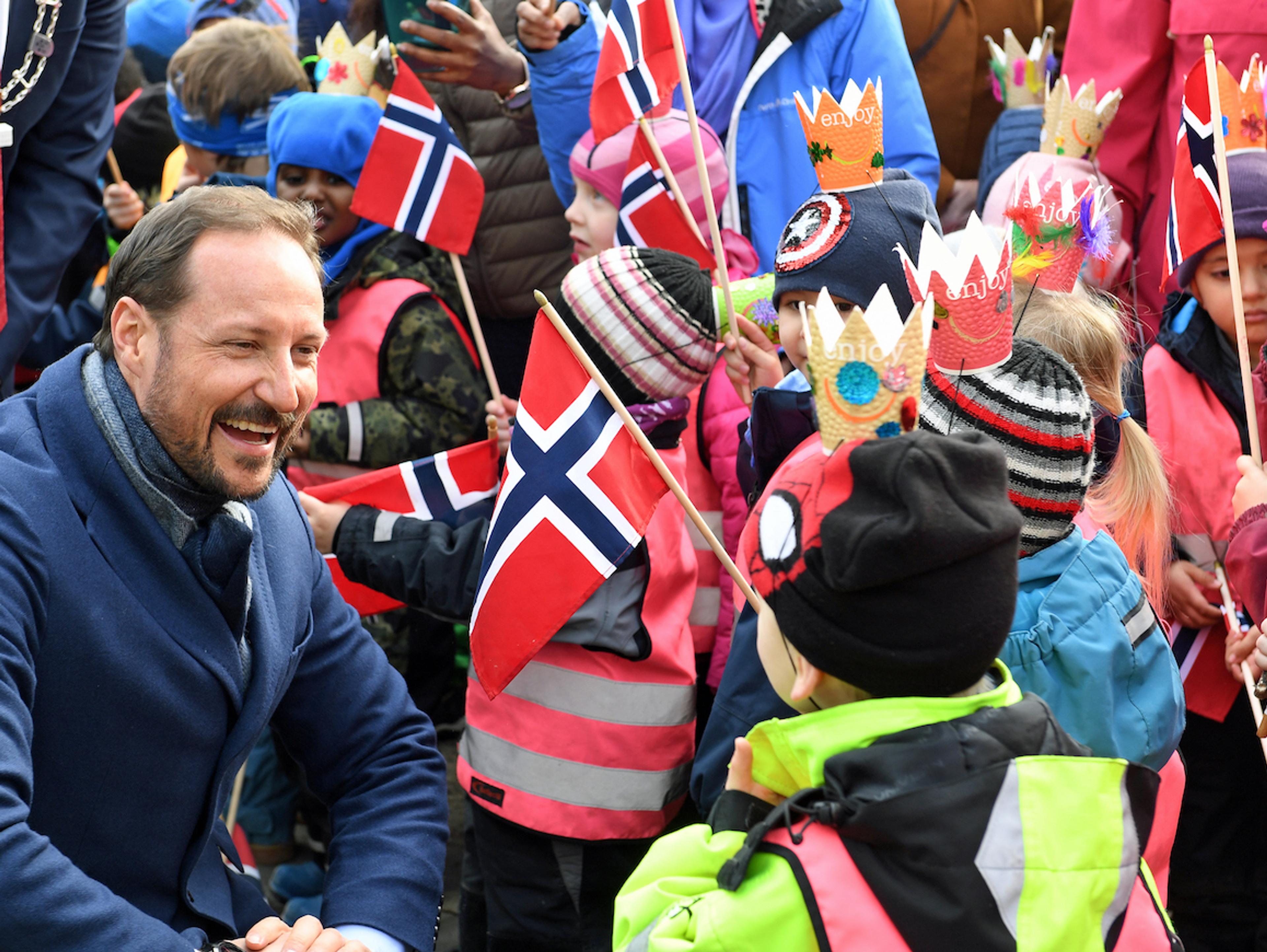 Barn og unge sto i sentrum for Hans Kongelige Høyhet Kronprinsregentens besøk til Porsgrunn i dag. Han ble da også møtt av barnehagebarn med sang og flagg utenfor Frikslivssenteret på Kjølnes.