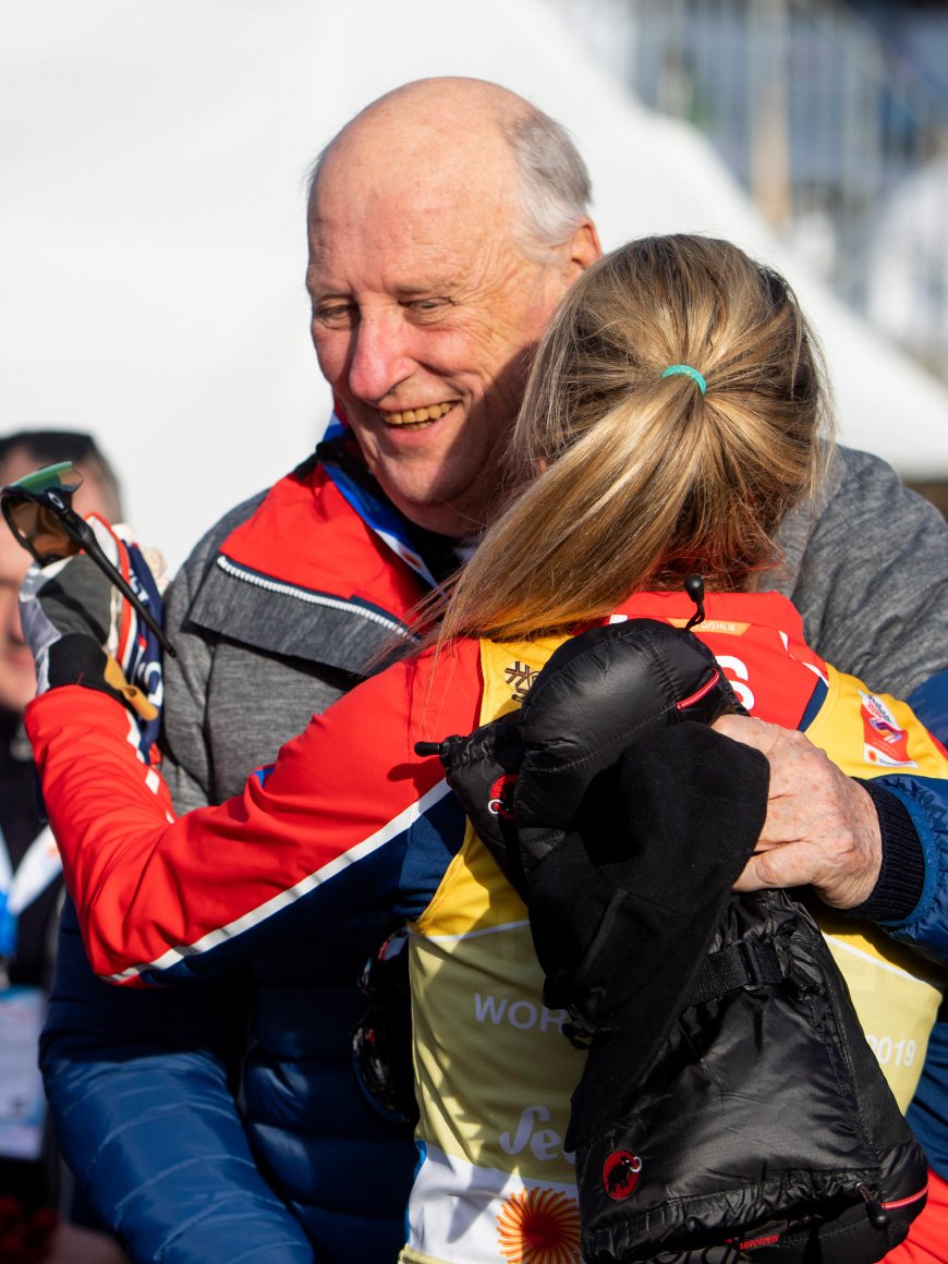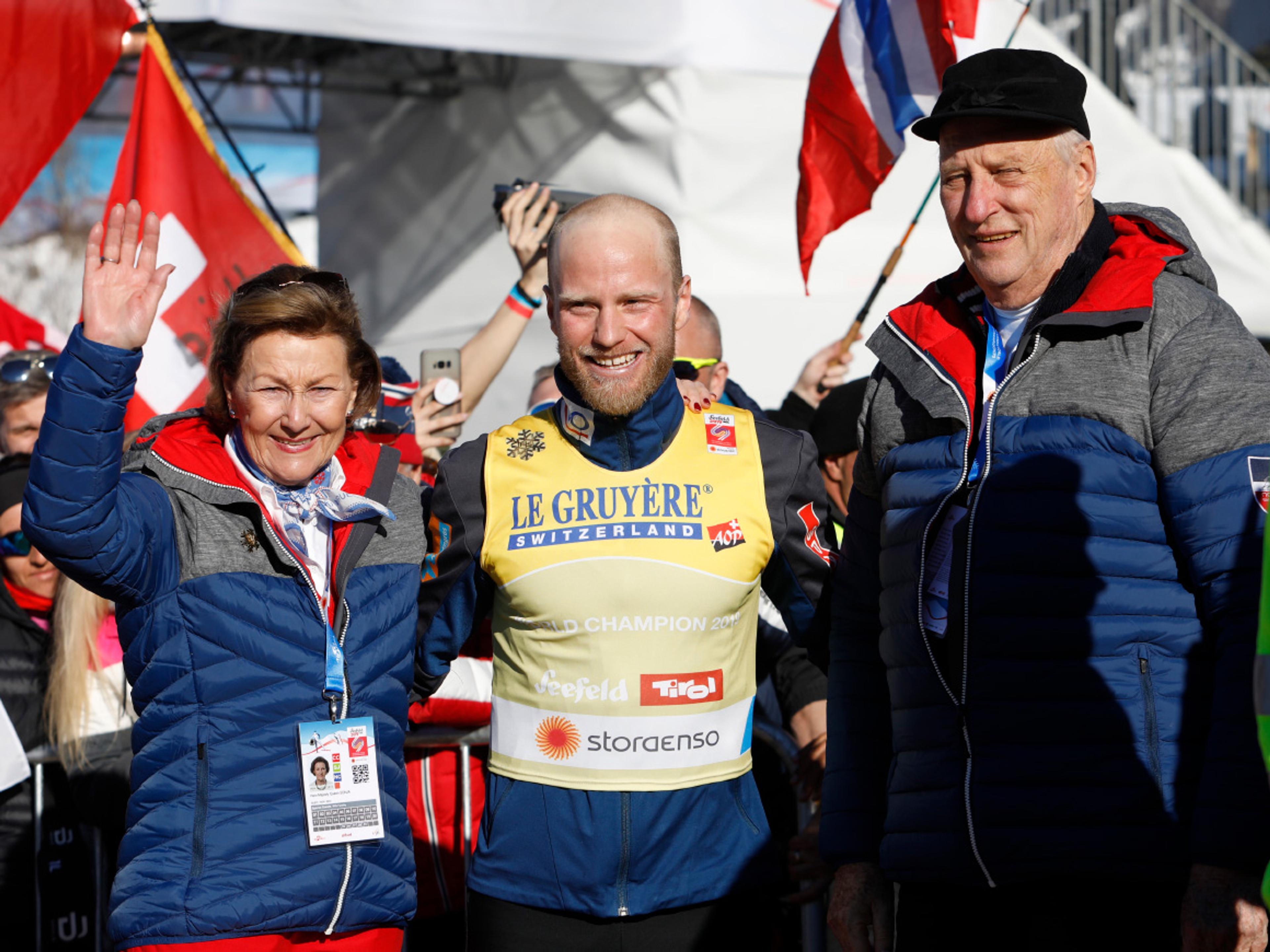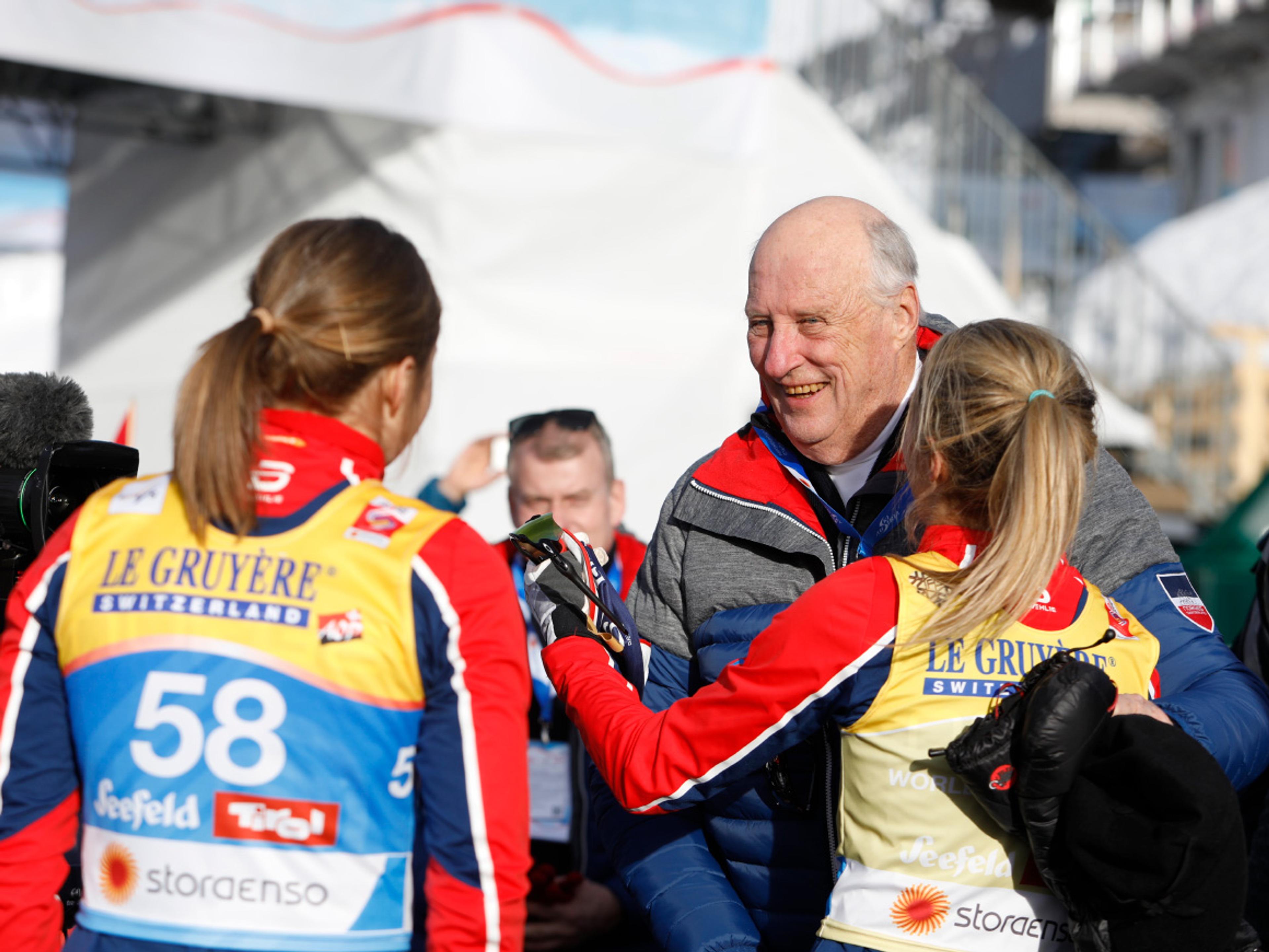 Hans Majestet Kong Harald og Hennar Majestet Dronning Sonja kunne glede seg over jamt medaljedryss over norske utøvarar i meisterskapet i Austerrike.