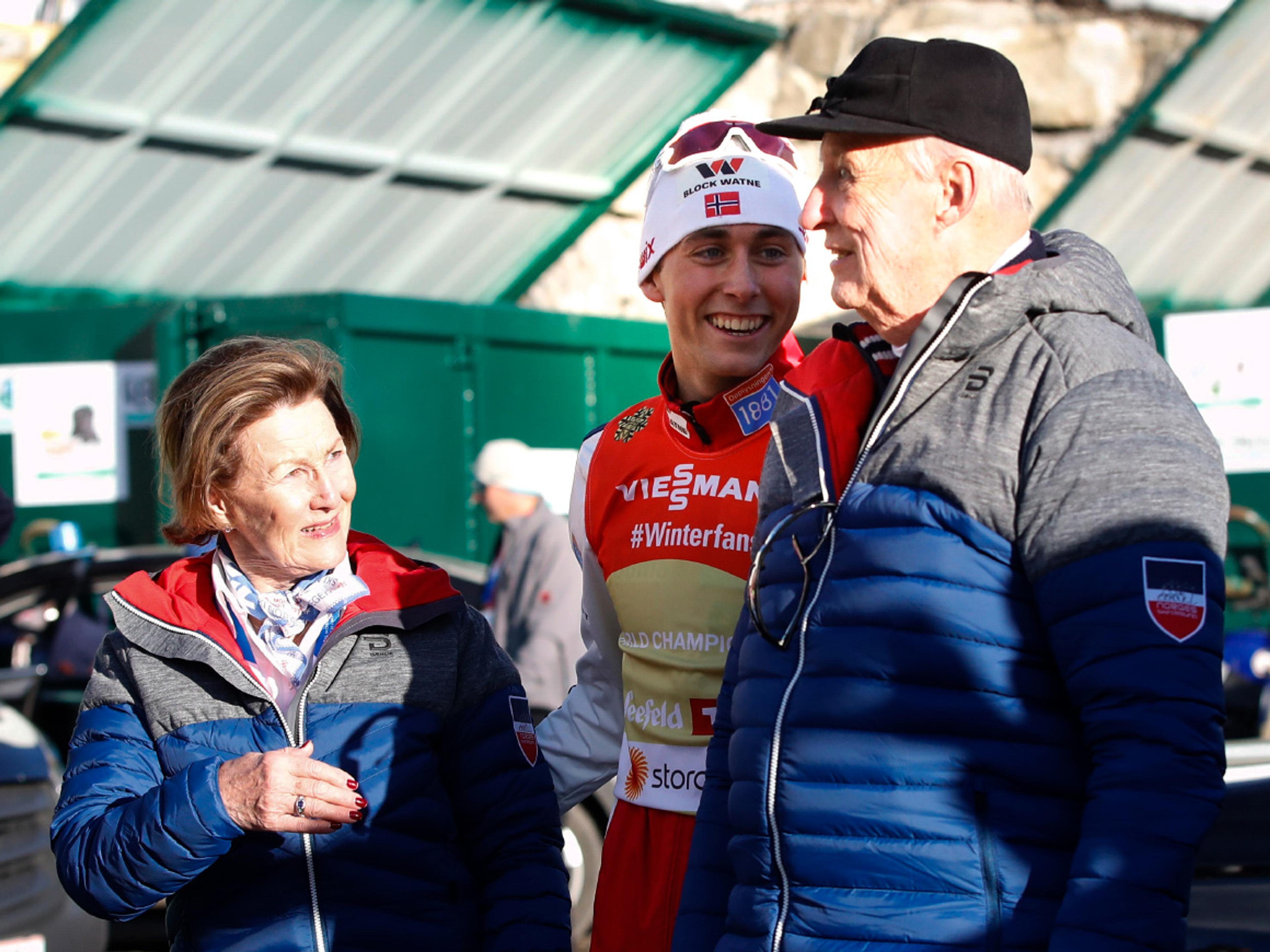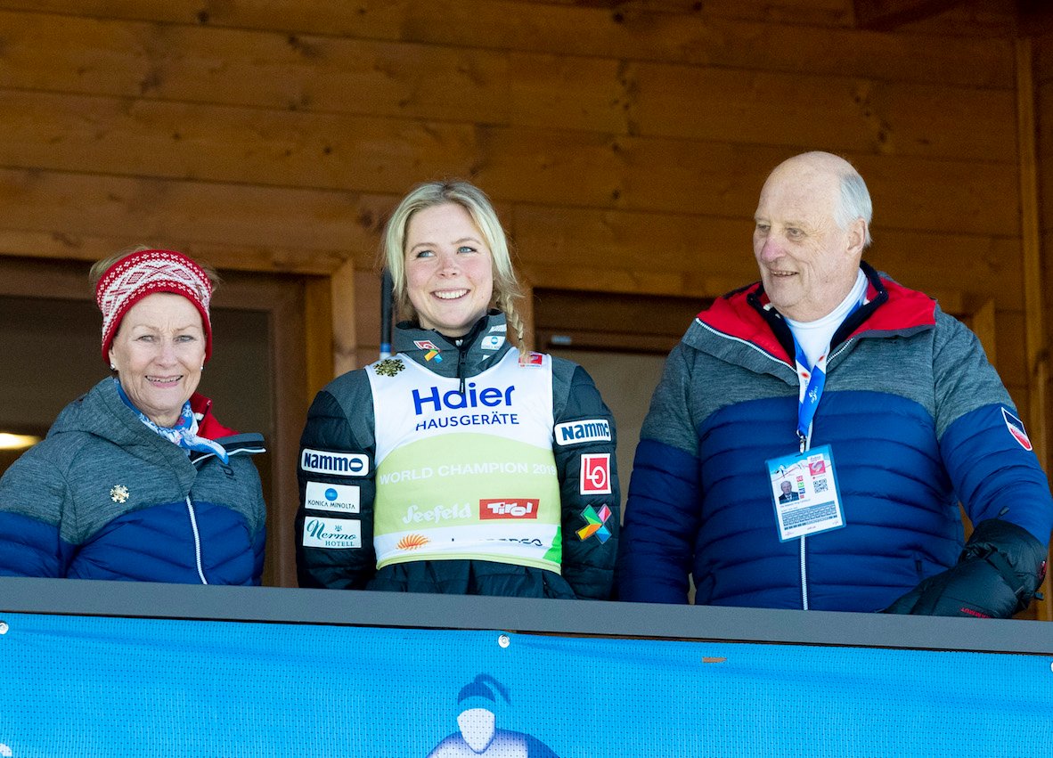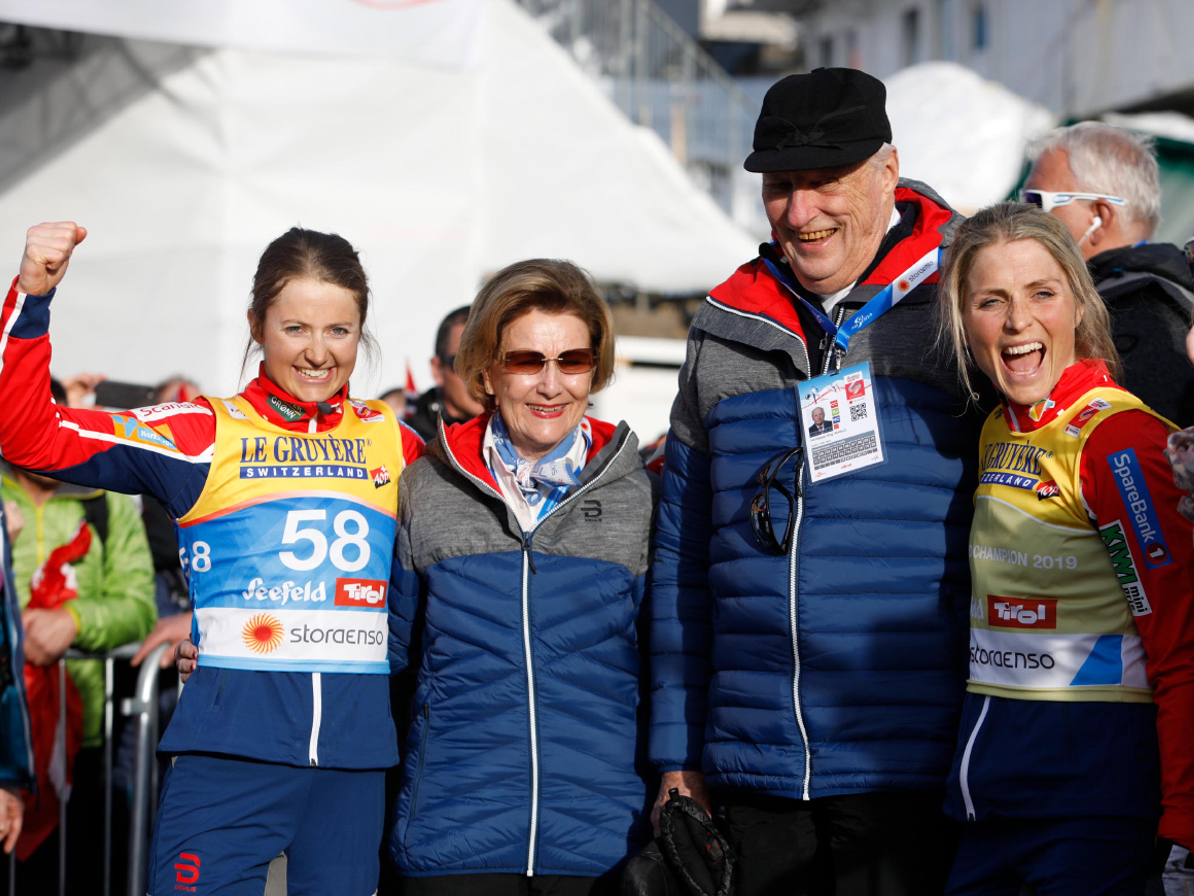Hans Majestet Kong Harald og Hennar Majestet Dronning Sonja kunne glede seg over jamt medaljedryss over norske utøvarar i meisterskapet i Austerrike.