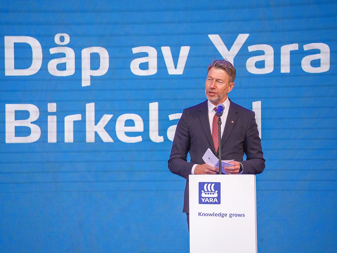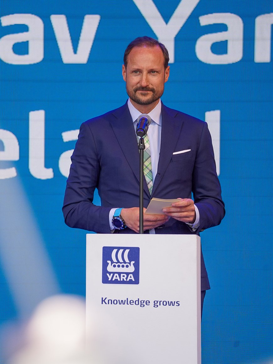 – I dag står vi overfor nye, felles utfordringer. Det er urolig i Europa, vi har krig i Ukraina. Det har fått store konsekvenser på mange måter, også for dere i Yara. Det er en alvorlig trussel mot verdens matproduksjon, og Yaras misjon – å skaffe nok mat til verdens folk på en klimavennlig måte – har blitt både viktigere og kanskje også vanskeligere, sa Kronprins Haakon.