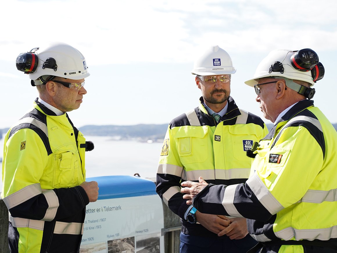 Kronprinsen startet besøket i Porsgrunn med å besøke Yaras anlegg på Herøya Industripark. Fabrikkanlegget eksporterer til 90 land, og gjødsel fra Yara Porsgrunn sørger for mat til rundt 40 millioner mennesker hver dag. Yara Porsgrunn leverer også en rekke industrielle produkter: CO2 til industrielle formål samt kalksalpeter til for eksempel betongproduksjon, luktfjerning og lateksproduksjon.