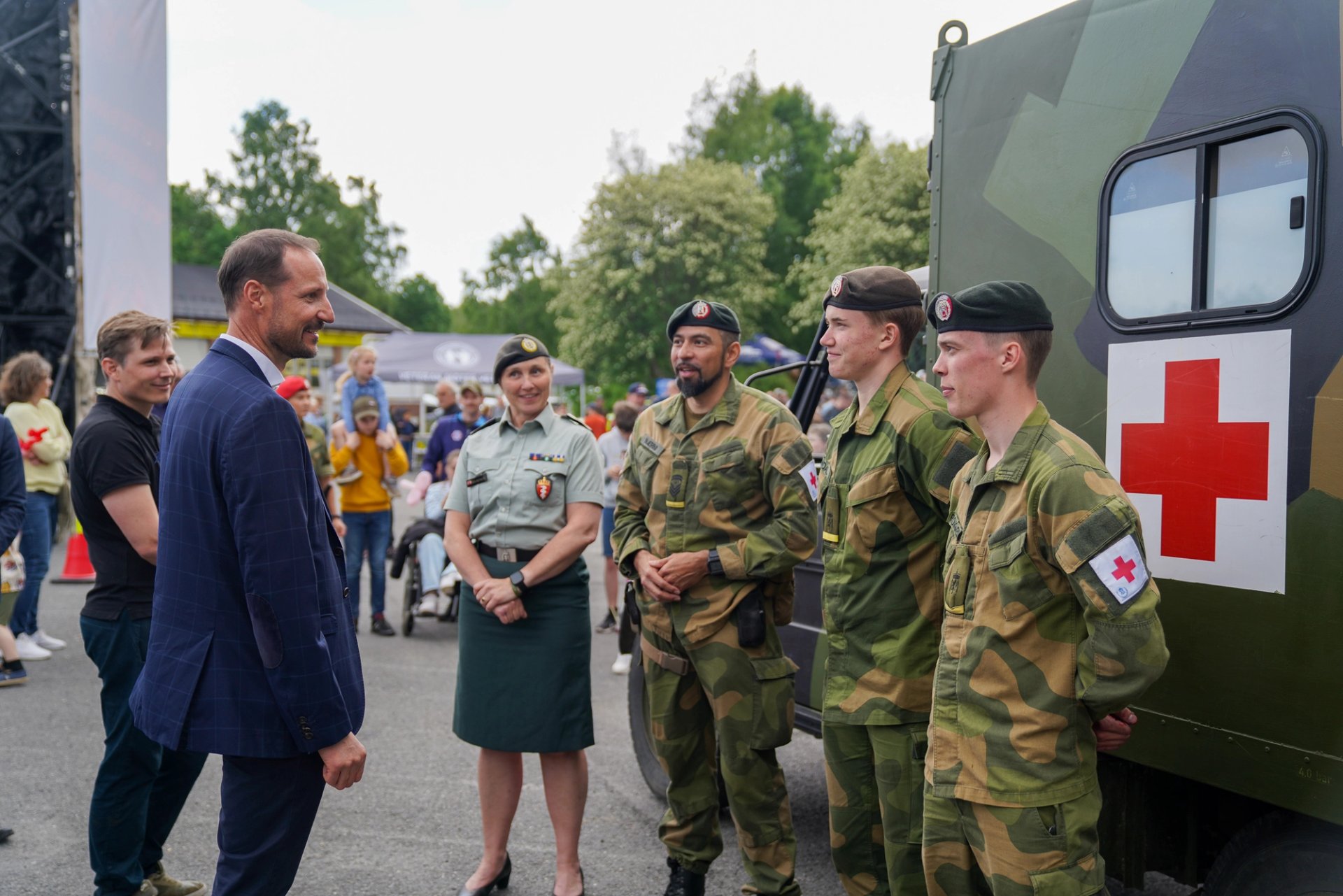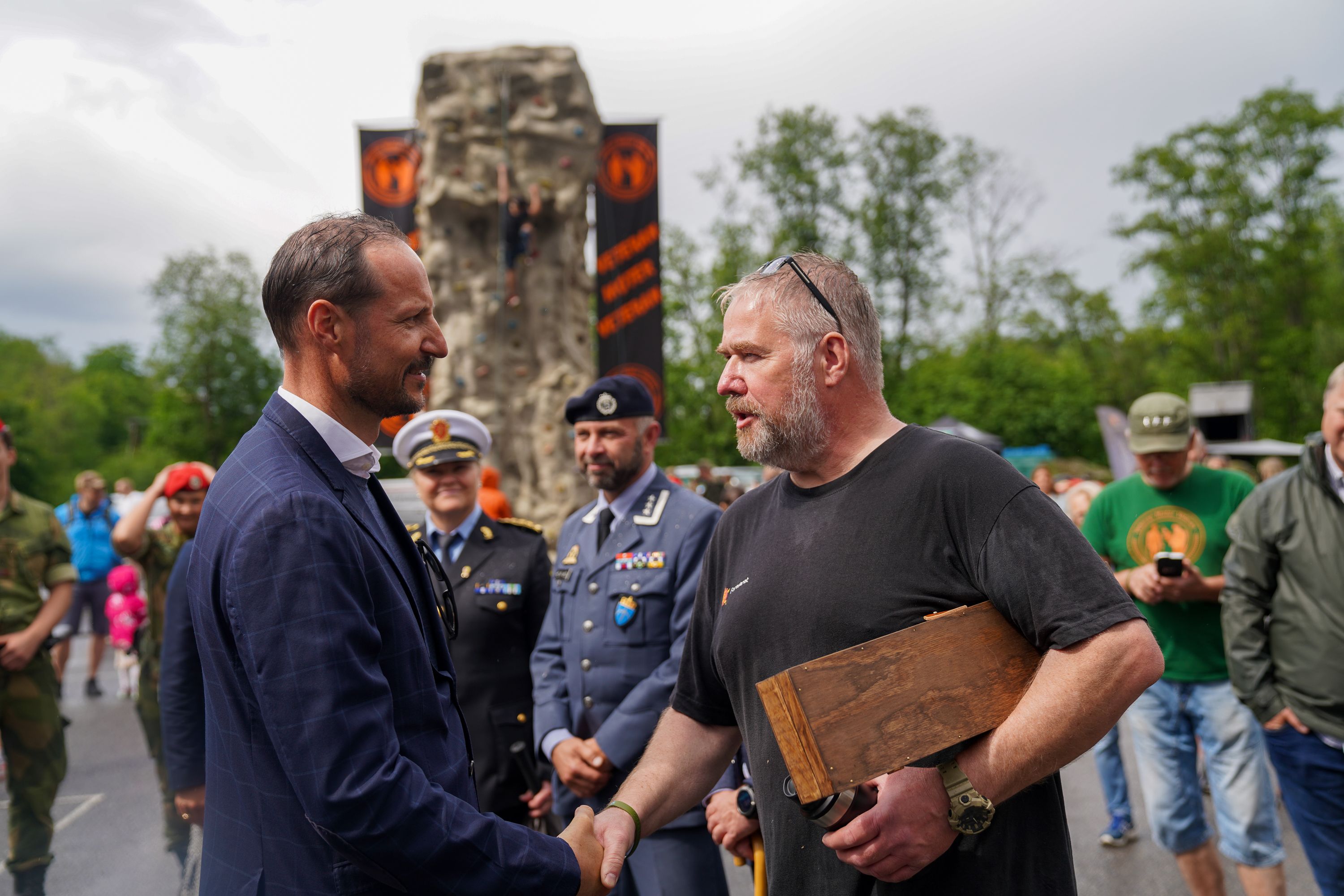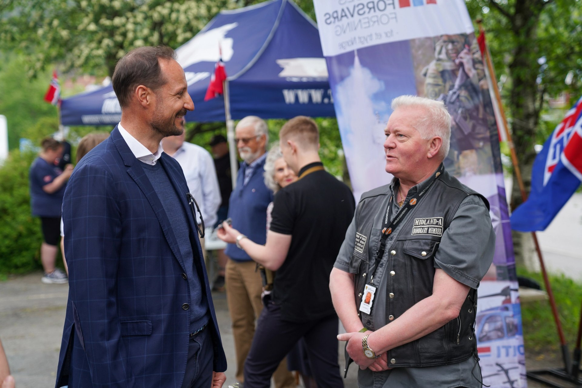 Hans Kongelige Høyhet Kronprins Haakon var også med på sommerfesten og ble vist rundt av leder Kenneth Lysell. Kronprinsen fikk hilse på både aktivt personell og mange veteraner og deres familier.