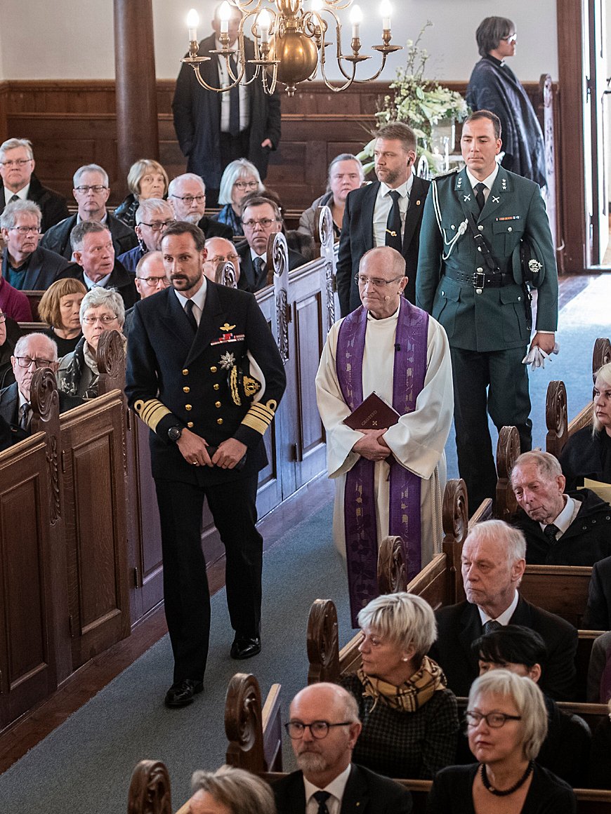 Hans Kongelige Høyhet Kronprins Haakon var til stede da Joachim Rønneberg ble stedt til hvile fra Borgund kirke i Ålesund i dag.