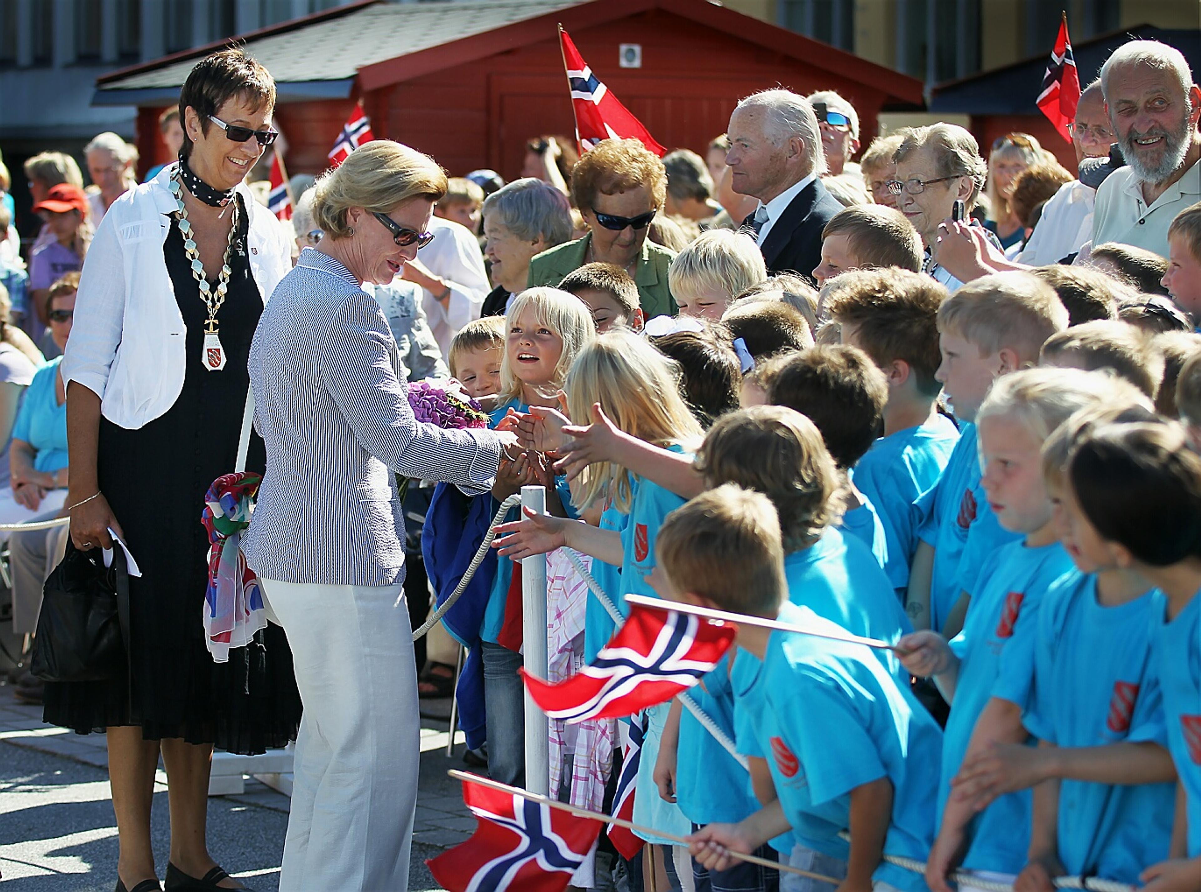 "Det er således en livskraftig by jeg har gleden av å hilse i dag. Og byen som en gang besto av 50 sjeler har nå passert 11 500 innbyggere.", sa Dronning Sonja i helsingstalen sin til byen. Talen vart halden under barnekulturprogram og folkefest på torget i føremiddag, men Dronninga hadde tett program denne dagen.