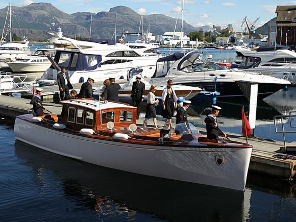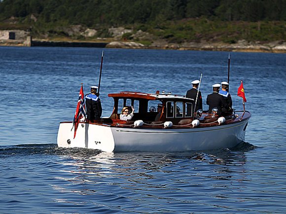 Dronninga kom til Florø hamn i sjalupp frå Kongeskipet Norge i dag tidleg, og der gjekk ho om bord i båten Sea Service for ein guida rundtur i Florabassenget. Kjentmann Trond Strømgren kunne fortelje om sjåverdigheitene på turen, som blant anna gjekk forbi Stabben fyr.