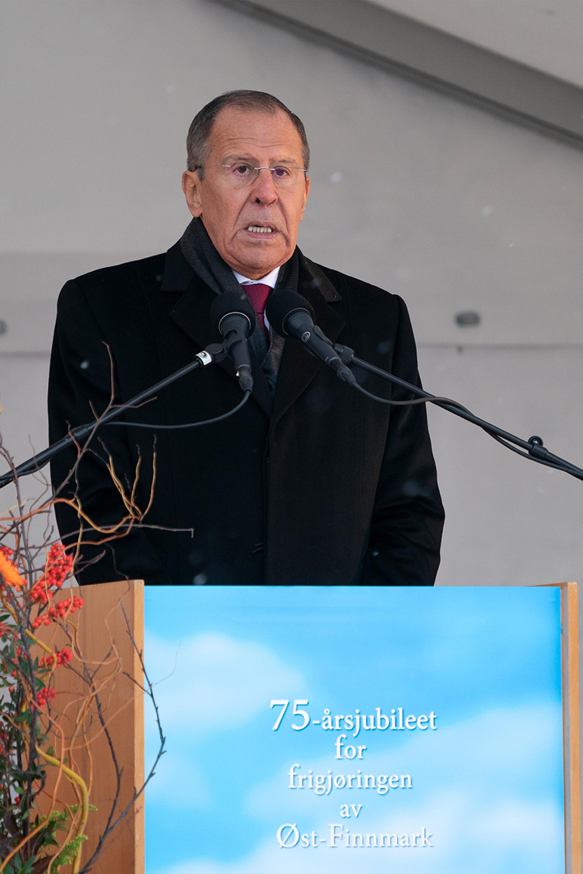 Kong Harald og Russlands utenriksminister Sergej Lavrov talte begge på torget i Kirkenes i dag, der det var kransenedleggelse ved Krigsmødremonumentet. Det var medlemmer av Garnisonen i Sør-Varanger som bar kransen fram. Nordflåtens kor og Hærens musikkorps framførte både den norske og den russiske nasjonalsangen.