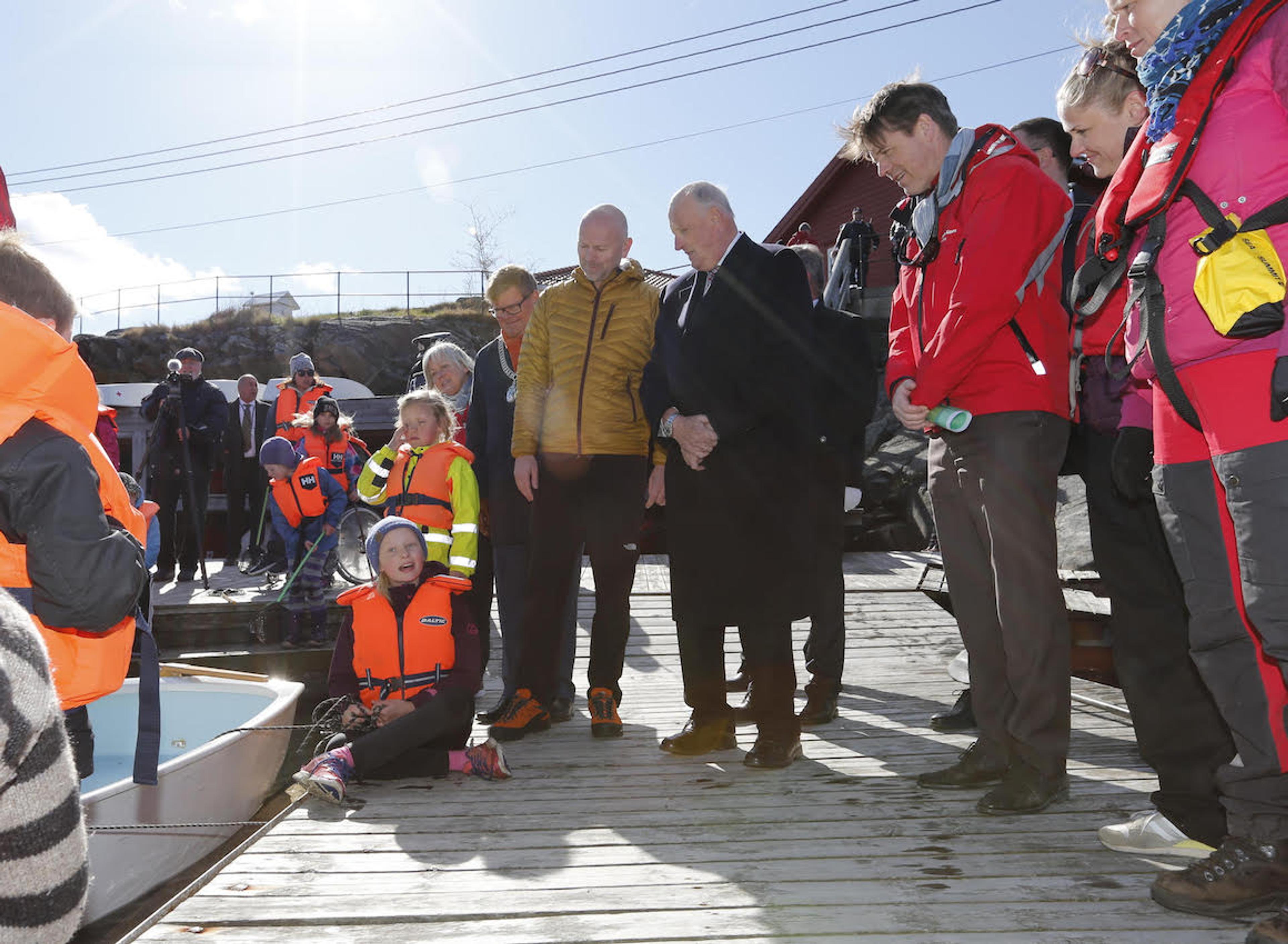Hans Majestet Kong Harald var til stede ved markeringen av 50-årsjubileet til Røde Kors' leirskole og feriesenter Haraldvigen i skjærgården utenfor Kristiansand i ettermiddag.