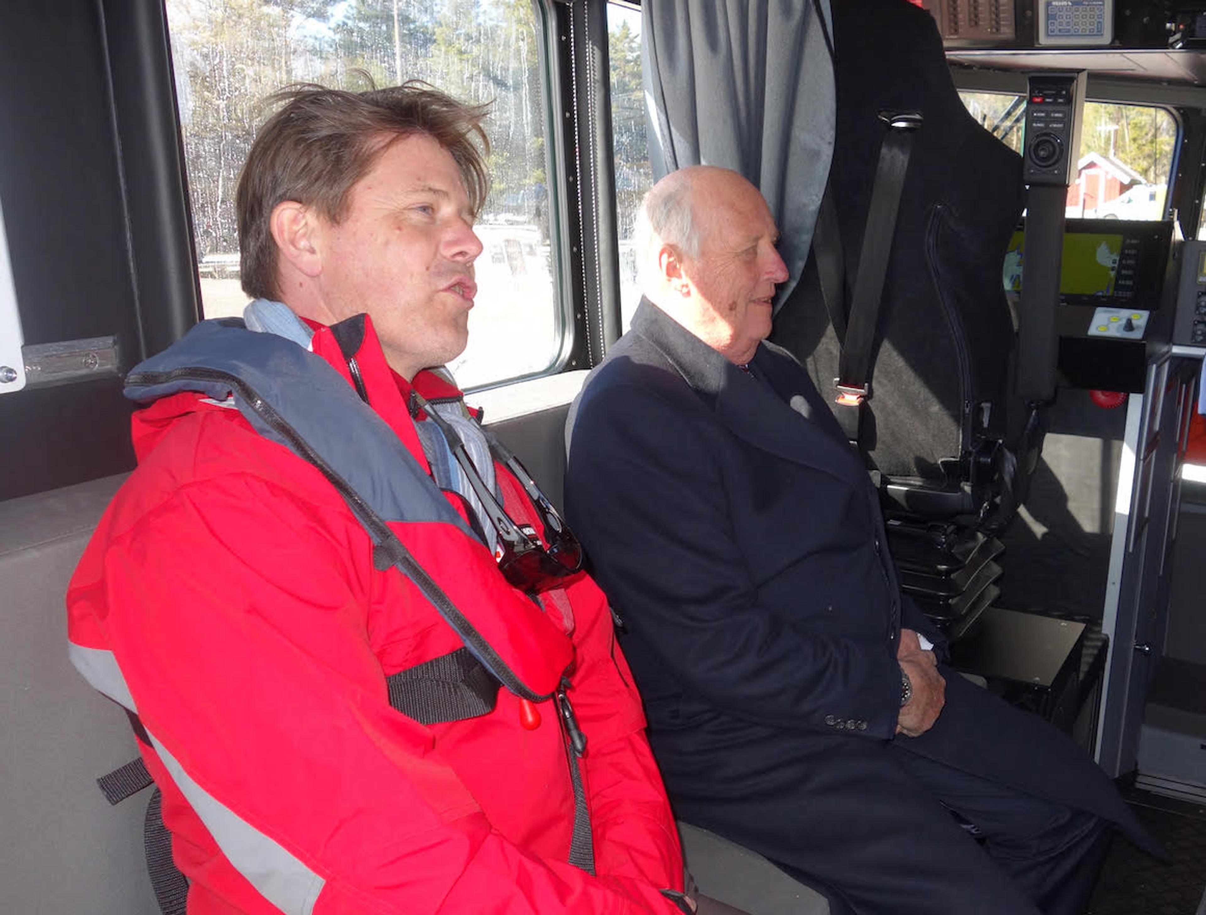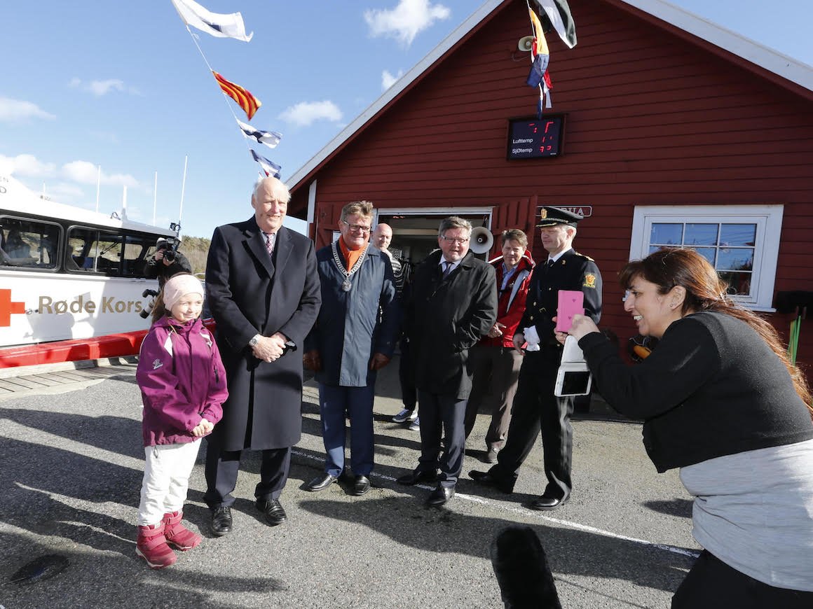 Kongen ble bragt til Haraldvigen i den nye beredskapsbåten til Lillesand Røde Kors.