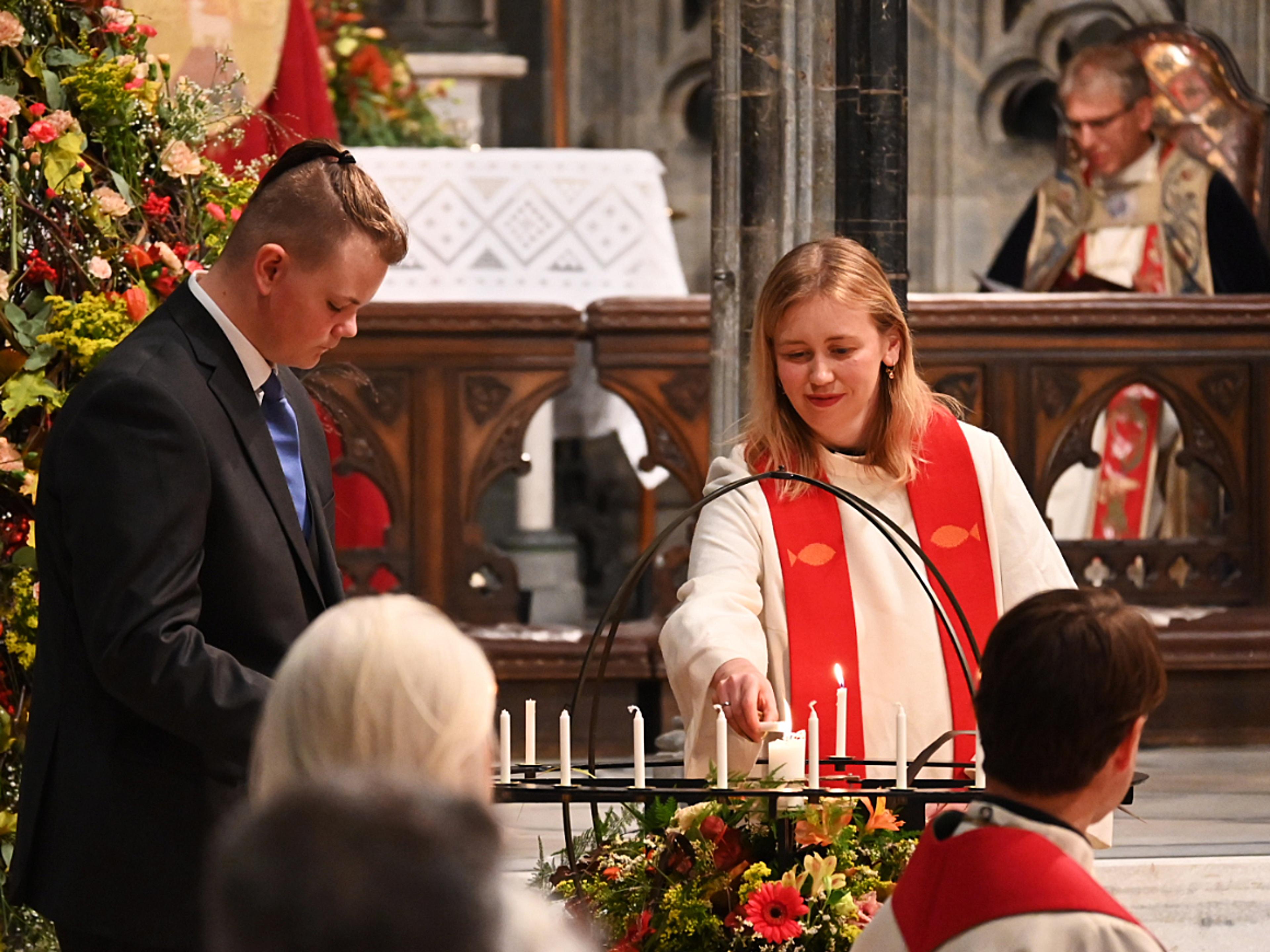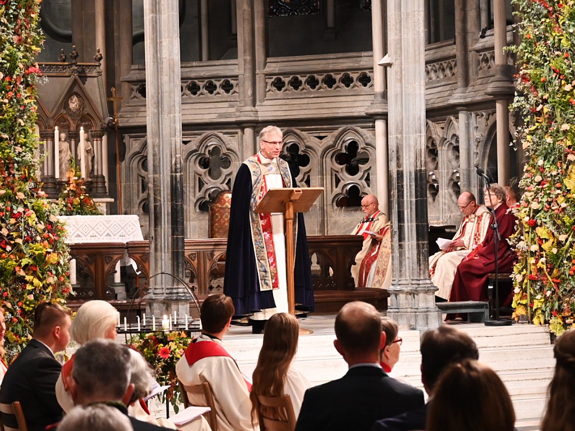 Den norske kirkes nye preses, biskop Olav Fykse Tveit ble vigslet og innsatt under en gudstjeneste i Nidaros domkirke 10. mai i år. På grunn av smittevernrestriksjonene ble vigslingsgudstjenesten holdt i begrensede former og utenfor det planlagte kirkemøtet. Markeringen ble derfor flyttet til dagens festgudstjeneste.