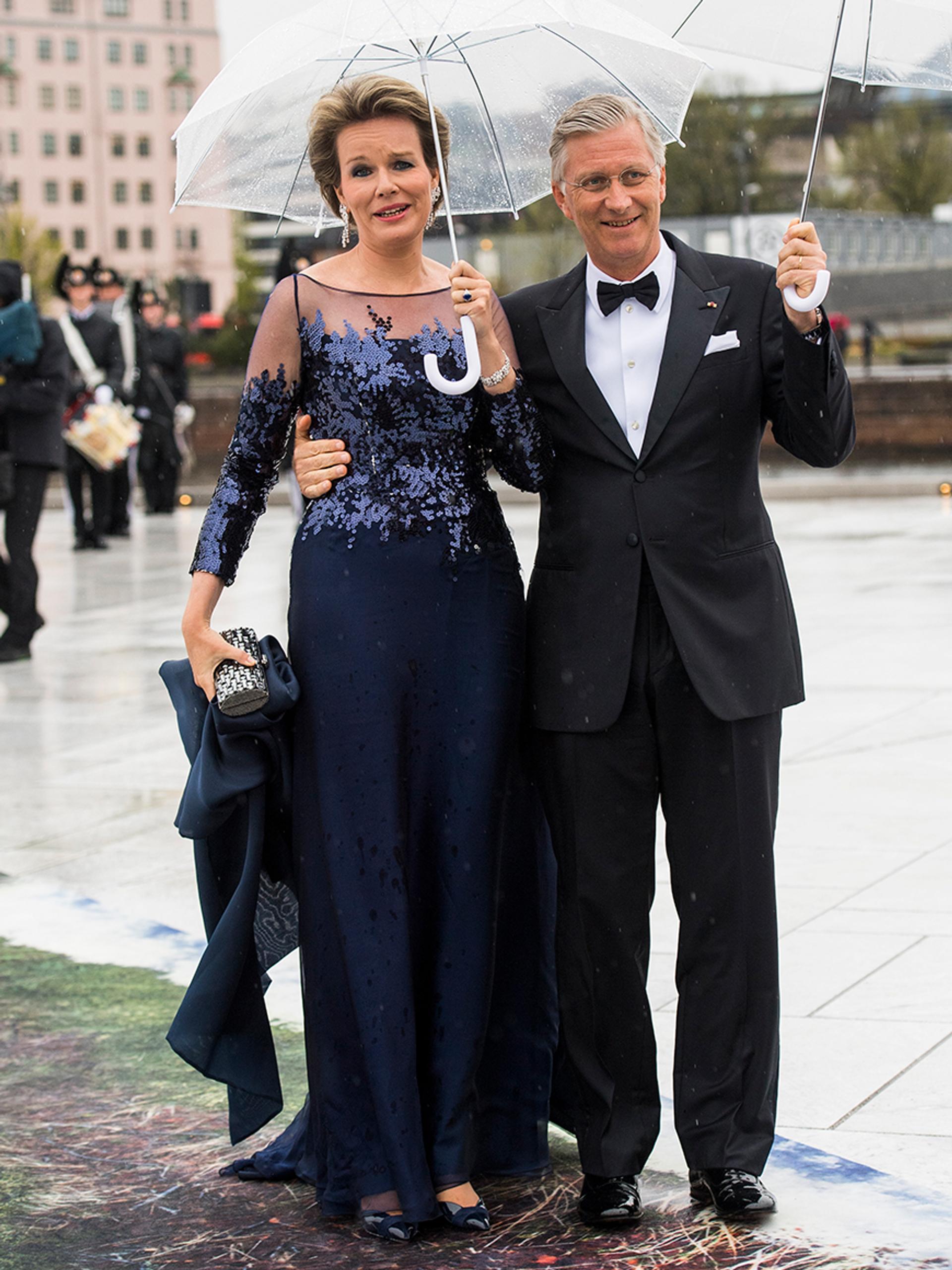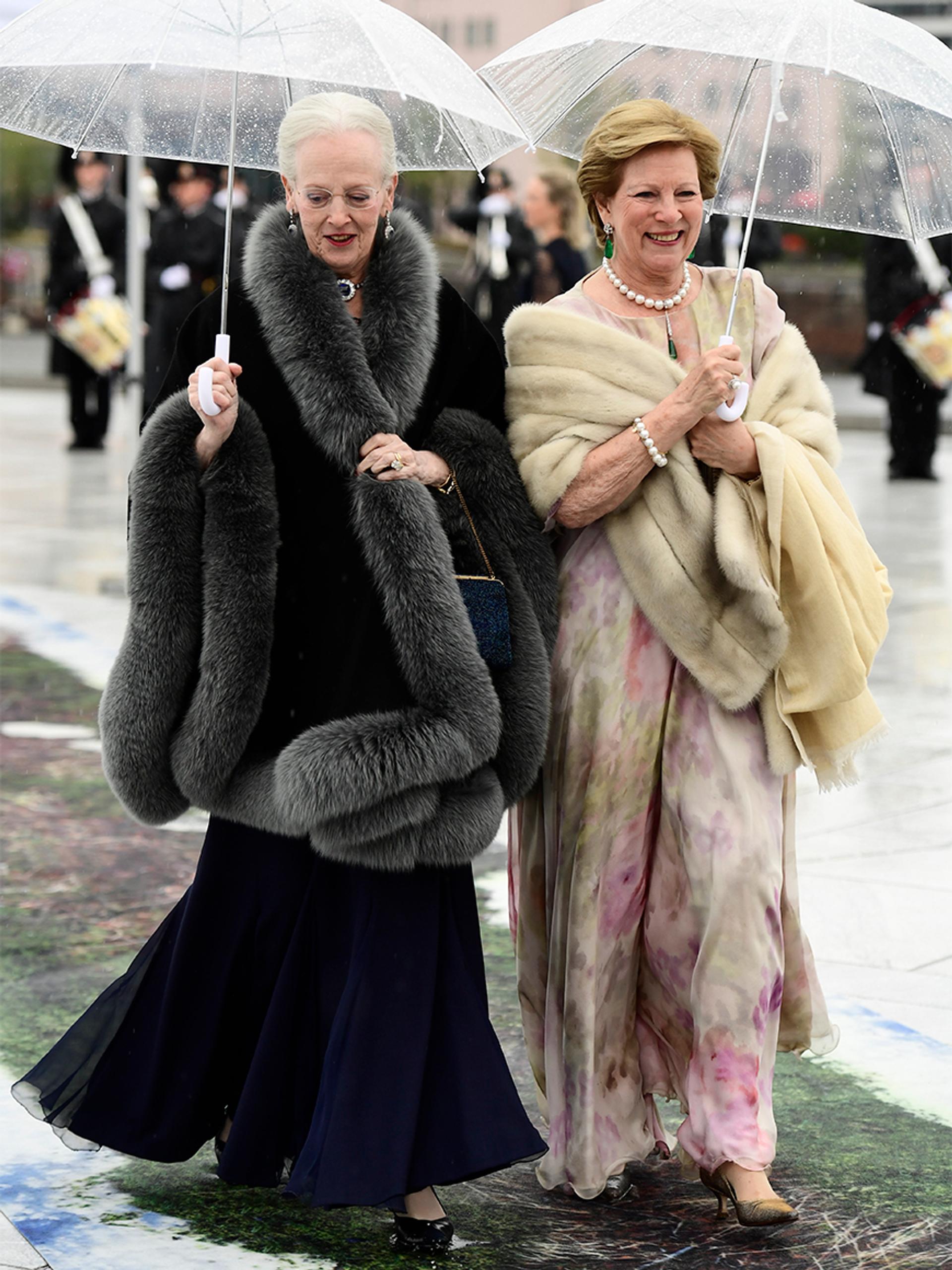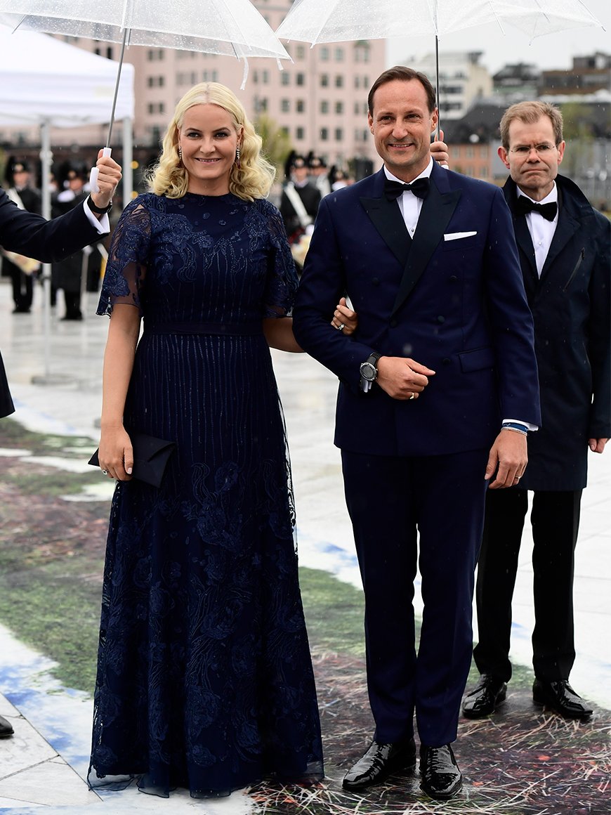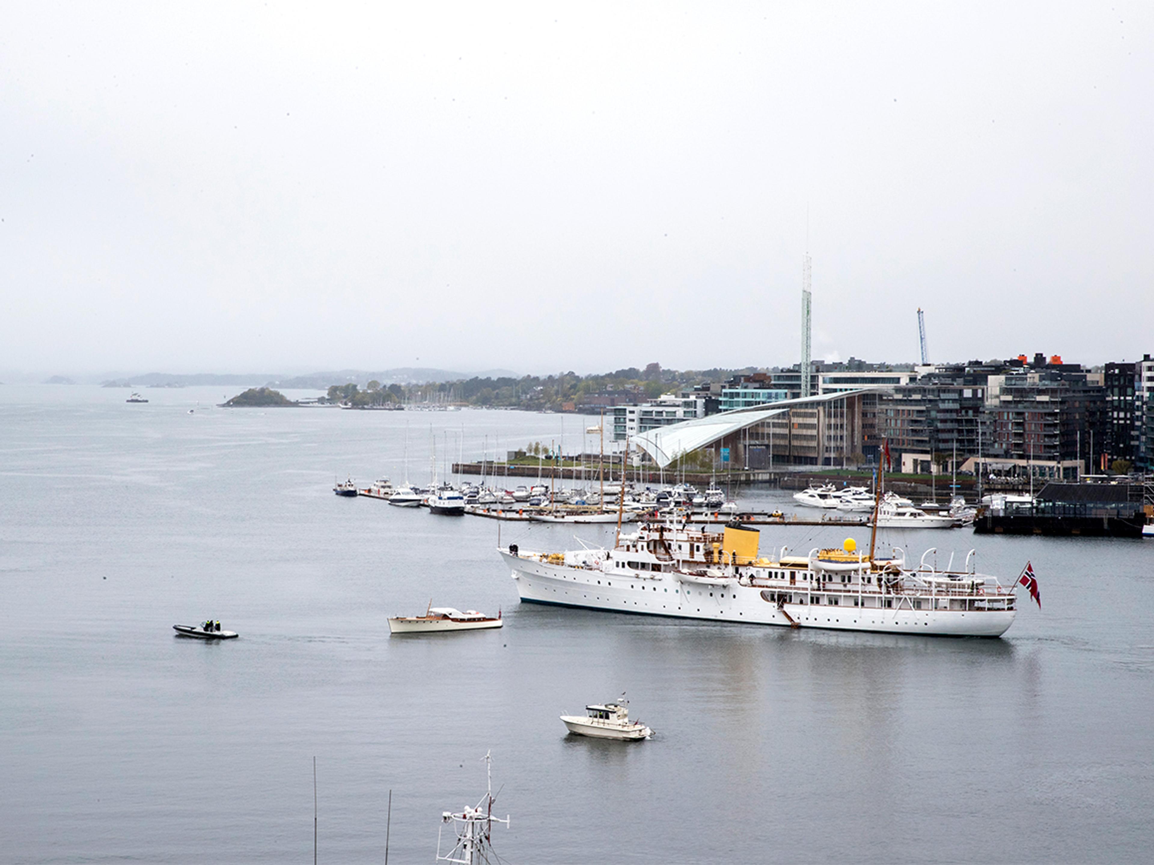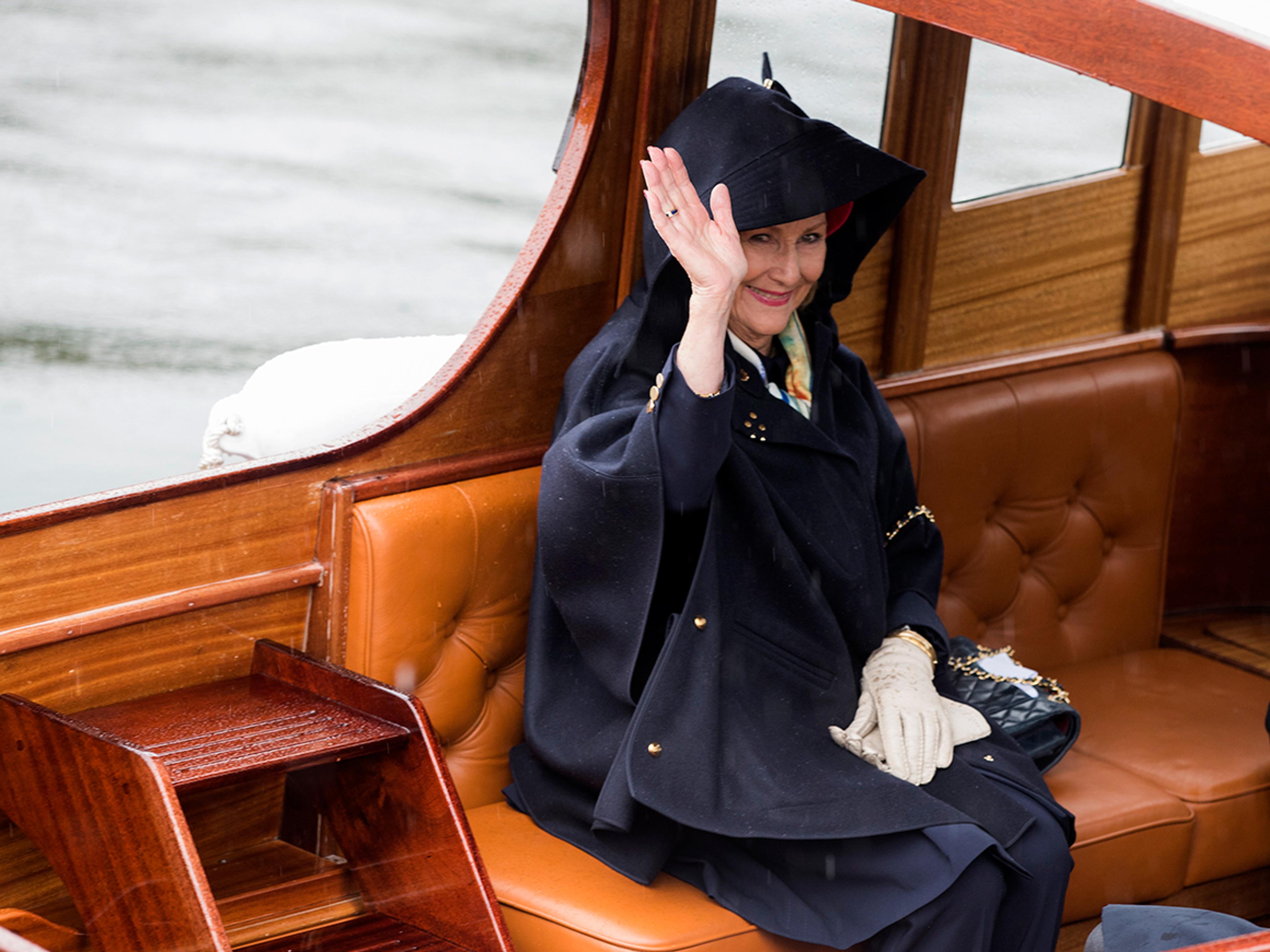 Været var ikke det beste, men både vertskap og gjester var kledd etter forholdene. De møtte klokken 11.00 på Honnørbryggen nedenfor Oslo Rådhus hvorfra de ble fraktet ut til Kongeskipet.
