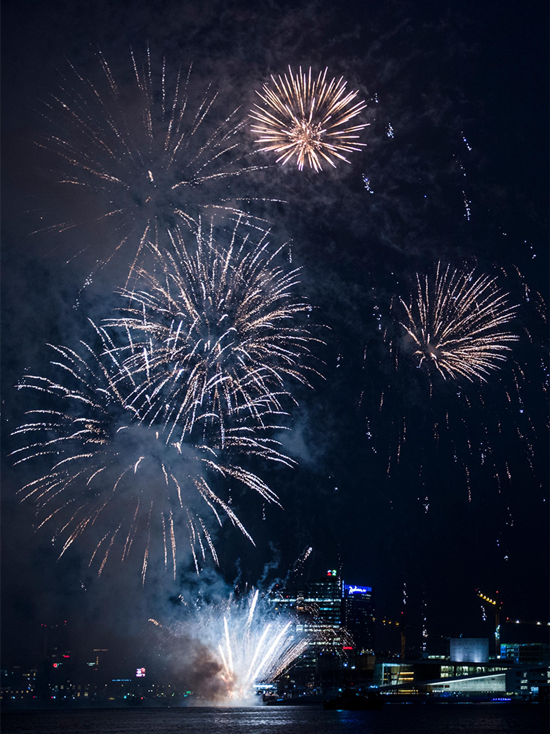 I kveld ble feiringen av Deres Majesteter Kongen og Dronningens 80-årsdager rundet av med fyrverkeri etter festmiddag i Operaen.