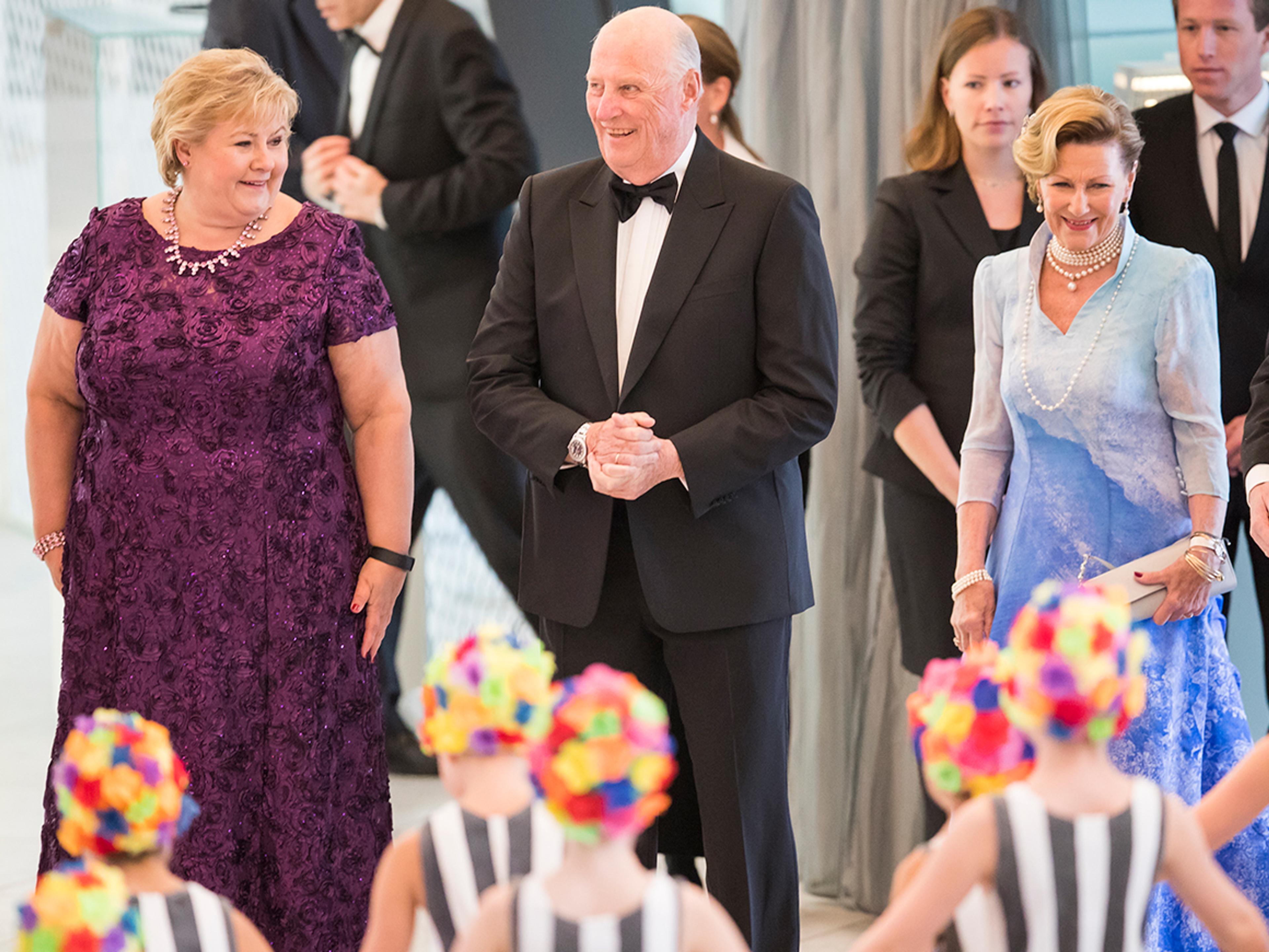 Som en som jobber for at folk skal stå lenger i arbeid, er Kongeparet et forbilde på en rekke måter, mente statsministeren... før hun pekte på Kongen og Dronningens roller som ambassadører: "for naturen og kulturen. For bedriftene vi skal leve av. For menneskene som bor her."