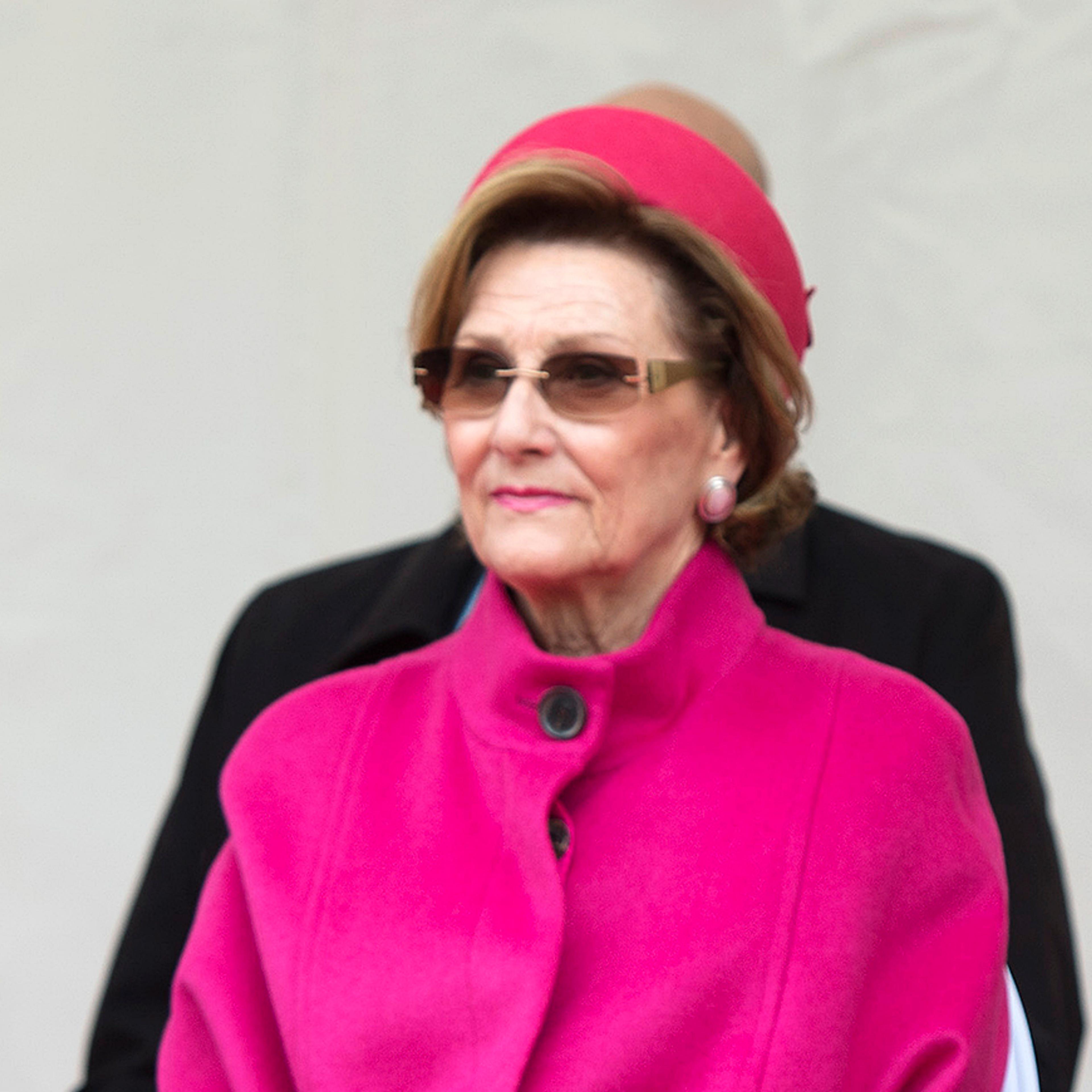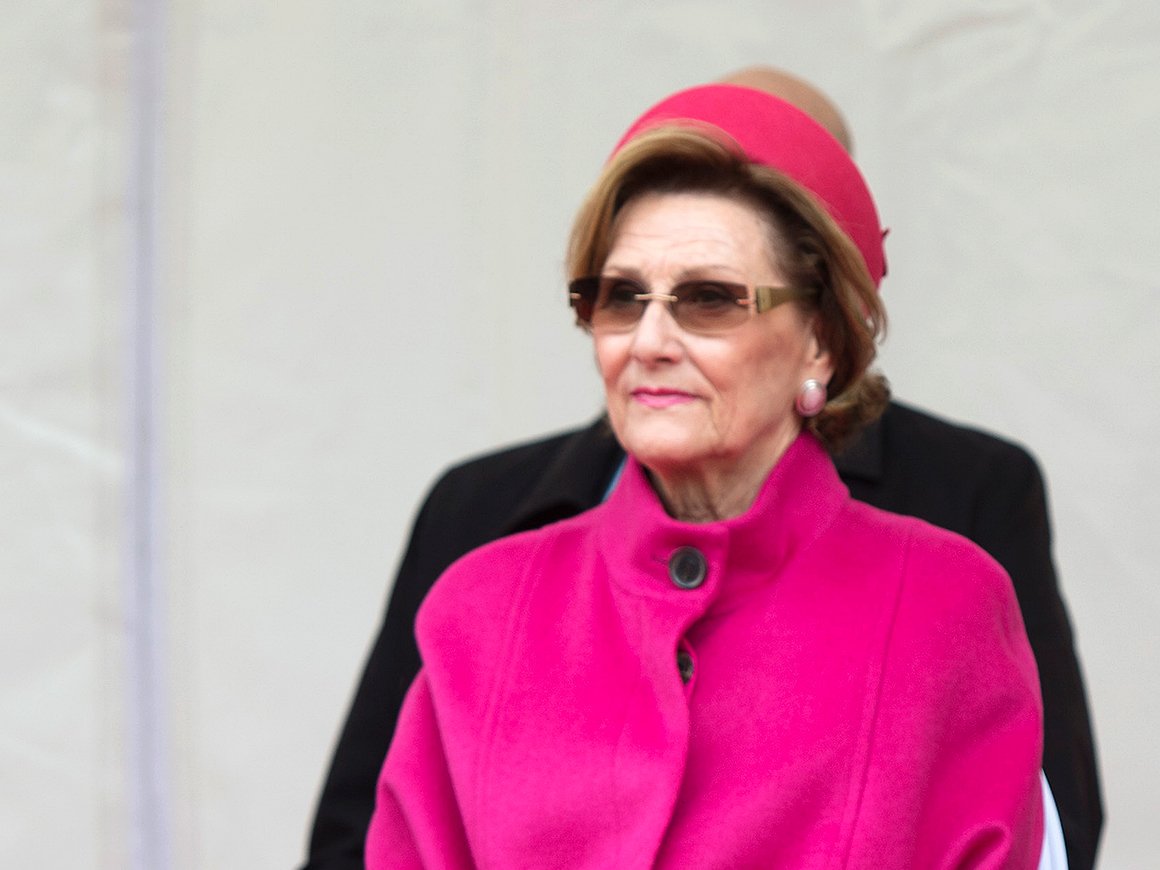 Dronning Sonja ankom Kong Olav V’s plass i formiddag til tonene av "Norge i Rødt, hvitt og blått". Statsminister Erna Solberg tok i mot Dronningen, sammen med fylkesmann Lars Sponheim og ordfører Trude Drevland. Dronningen fikk også vakre blomster av elleve år gamle Ask fra Hellen Skoles musikkorps.