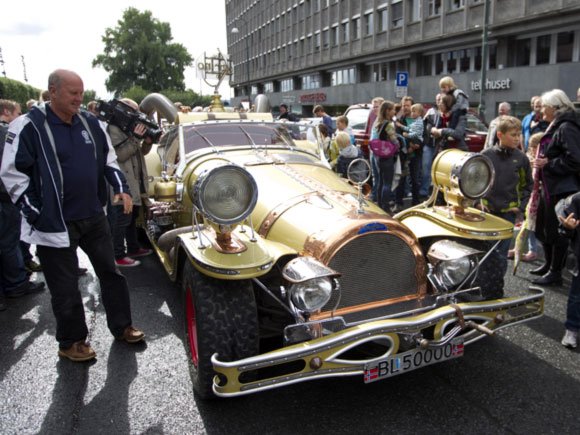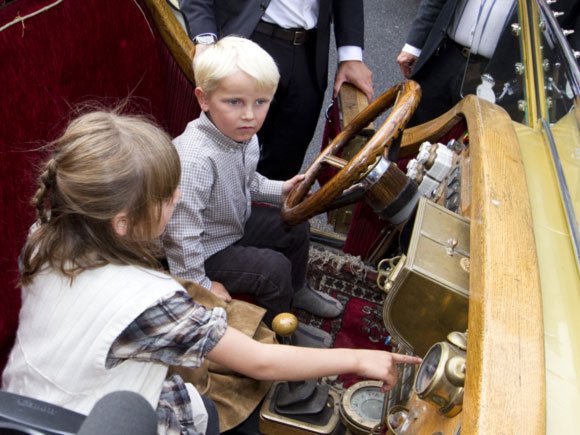 En av de sentrale "karakterene" i filmen, bilen Il Tempo Gigante, var på plass utenfor Klingenberg i dag, og barna fikk prøvesitte Norges mest kjente racerbil.