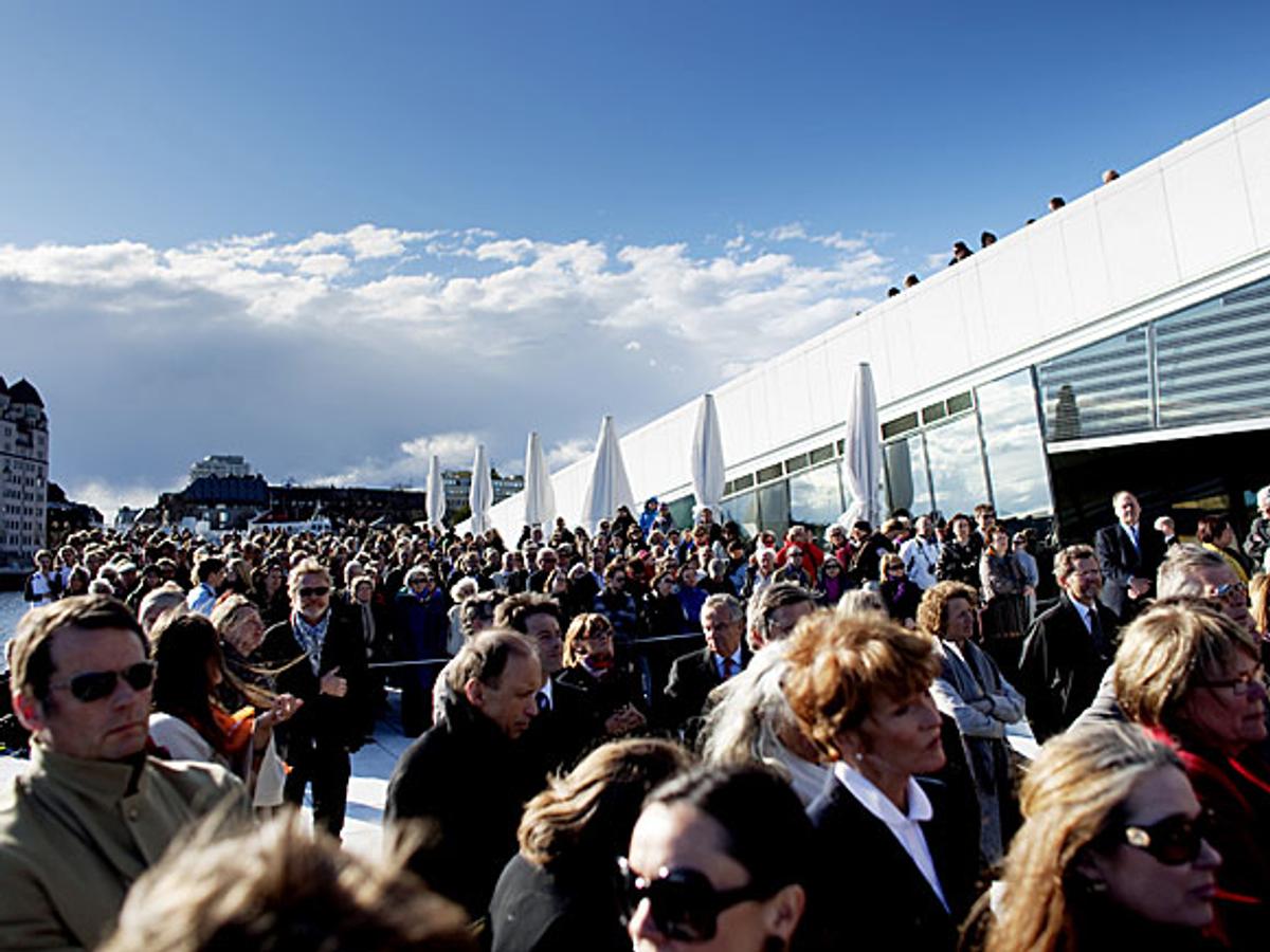 200 inviterte gjester og flere hundre tilskuere var til stede under den offisielle markeringen av verket – to år etter åpningen av det nye operahuset i Bjørvika.