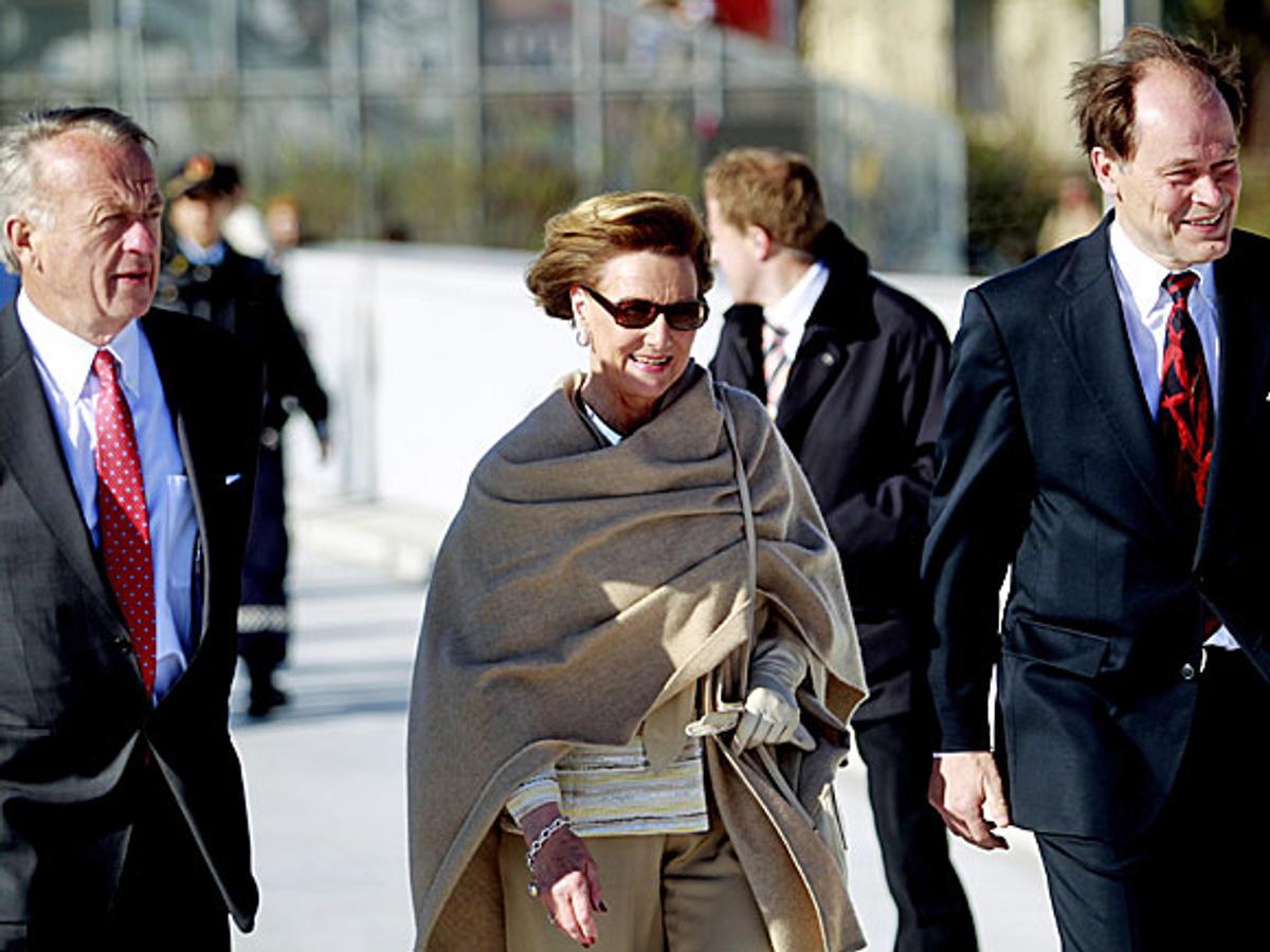 Hennes Majestet Dronningen var tirsdag kveld til stede på den offisielle markeringen av skulpturen ”She lies”. Skulpturen flyter i havnebassenget utenfor Operaen i Oslo.