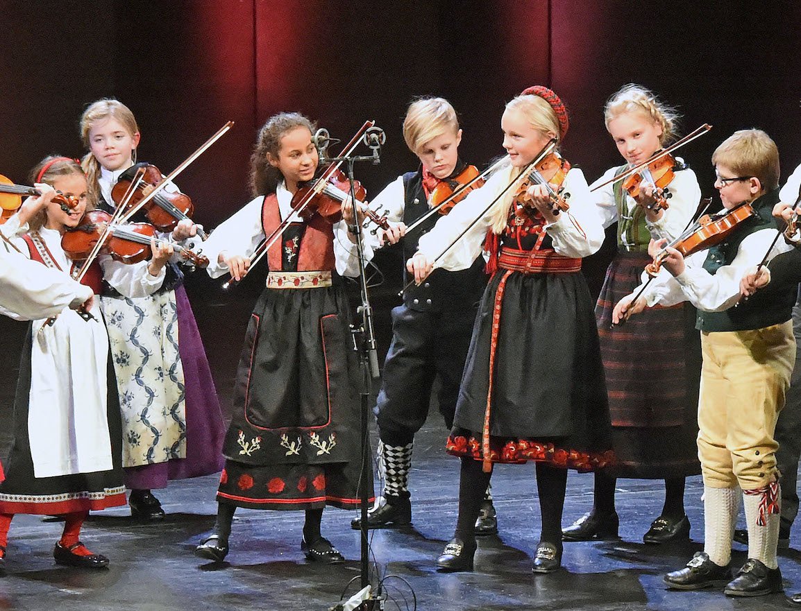 Hennar Majestet Dronninga var til stades da norske meistrar i folkemusikk og -dans var samla til festframsyning i Operaen i kveld.