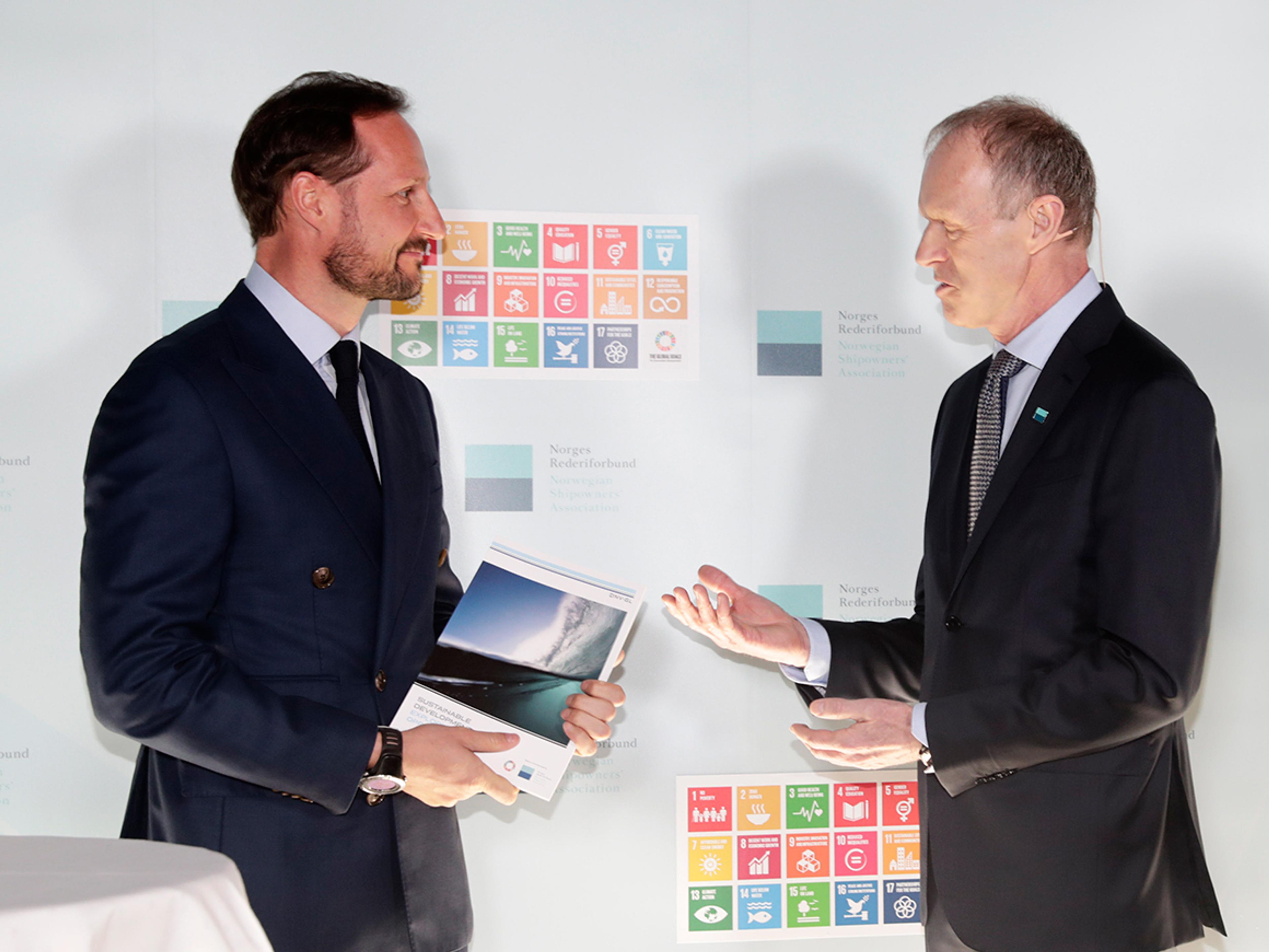 Kronprins Haakon var til stede ved Norges Rederiforbunds årskonferanse der bærkraft og miljø var tema. Sammen med Lisa Kingo fra UN Global Compact imot DNV-GLs rapport "Sustainable Development Goals: Exploring Maritime Opportunities".