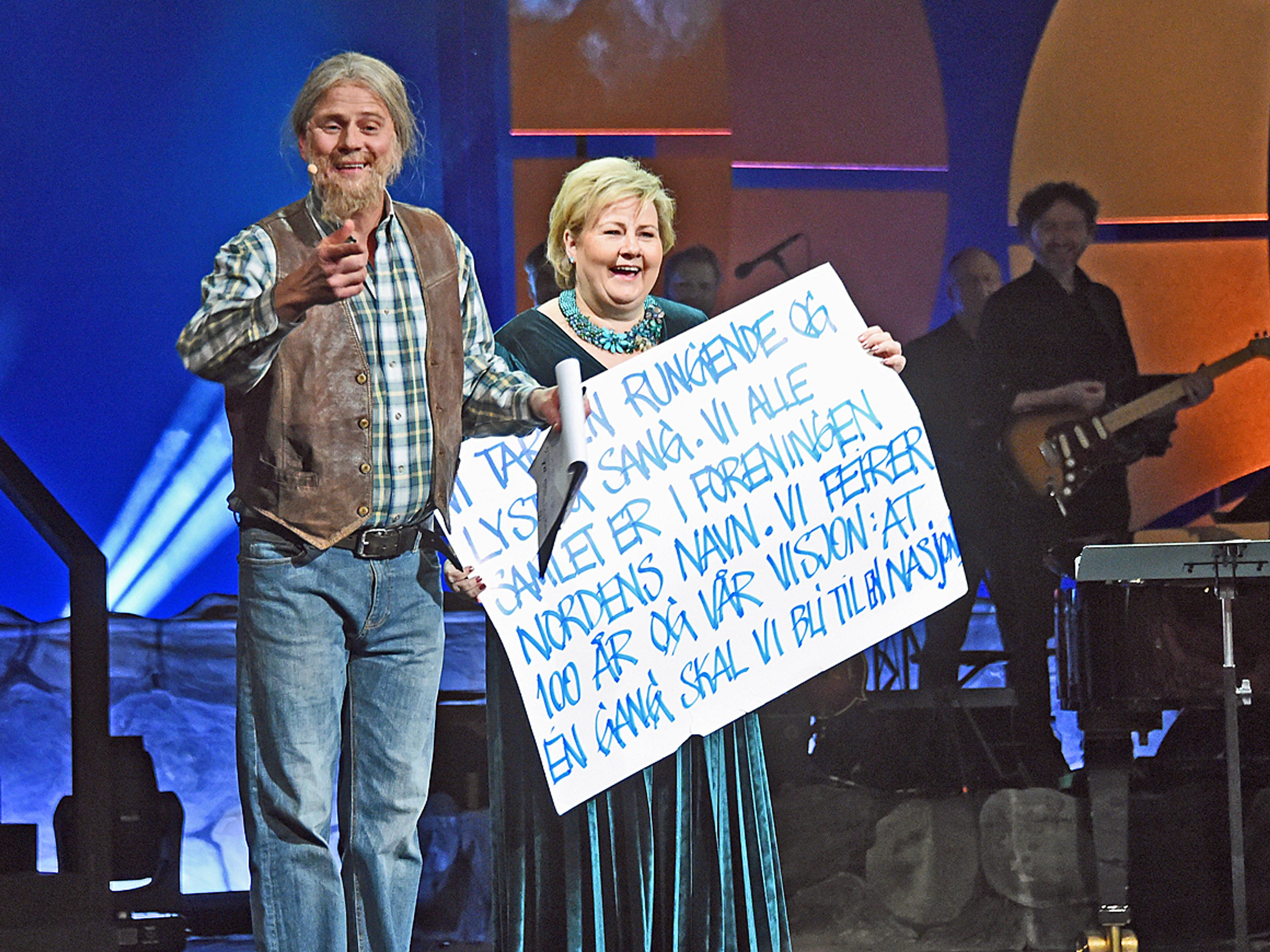 Statsministeren holdt jubileumstalen til Foreningen Norden som i 100 år har arbeidet for å styrke samarbeidet mellom folk i Norden. Stortingspresident Tone Wilhelmsen Trøen var også til stede i salen.